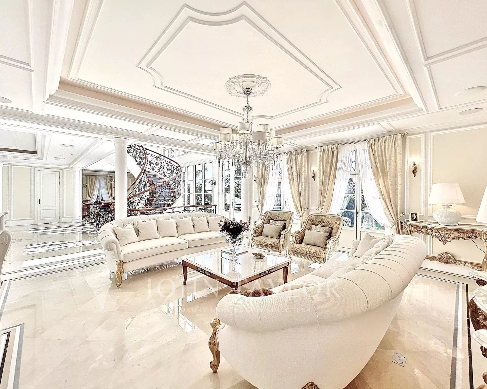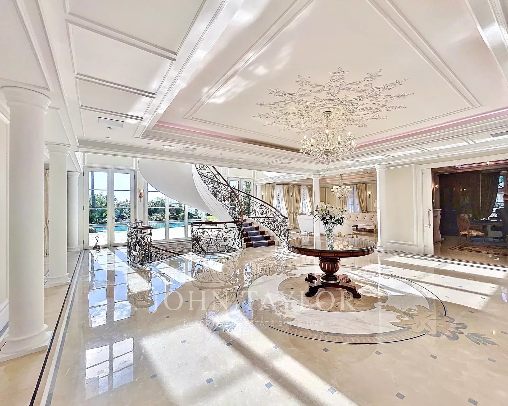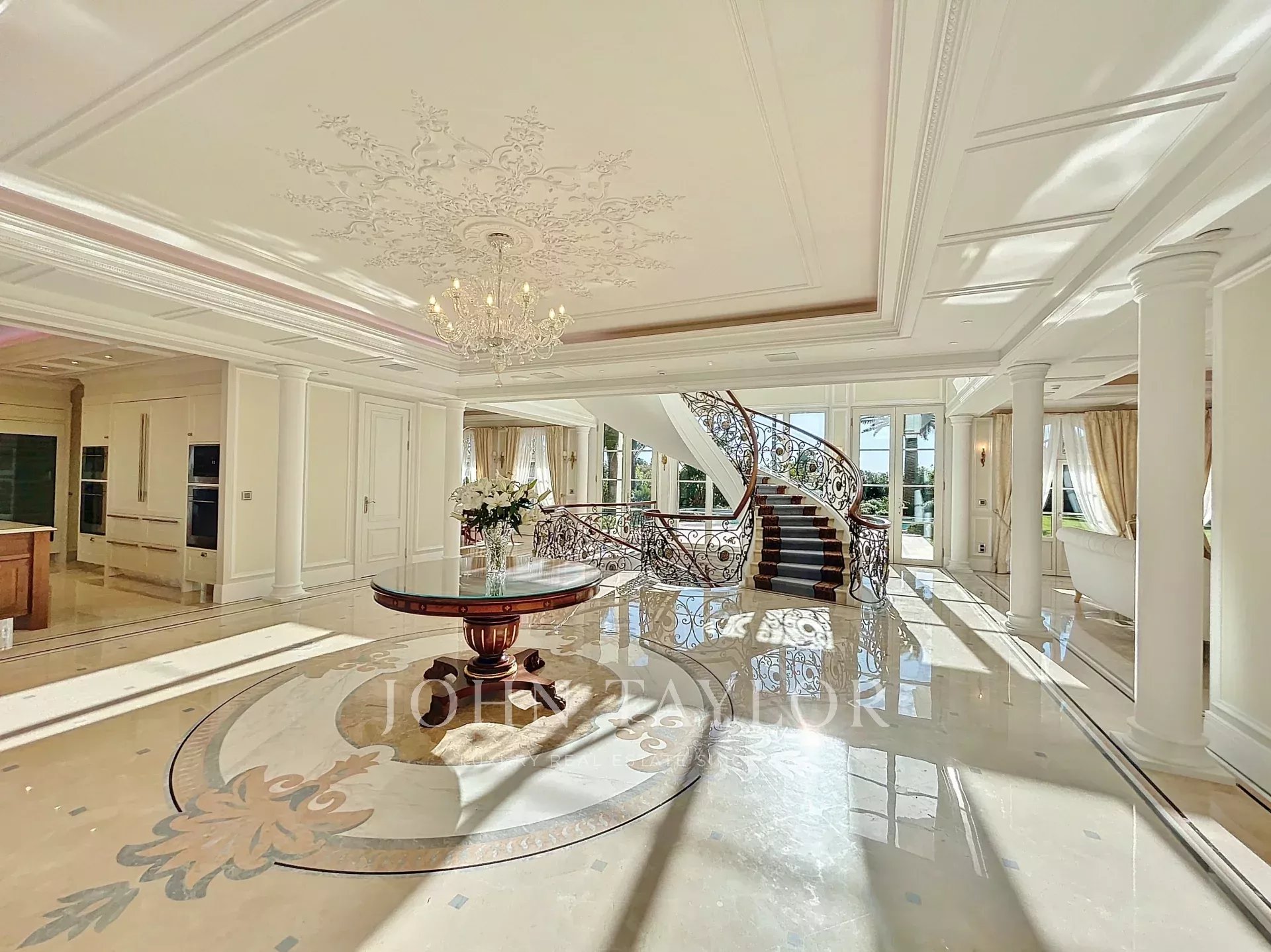 A majestic central staircase leads to the UPPER FLOOR: