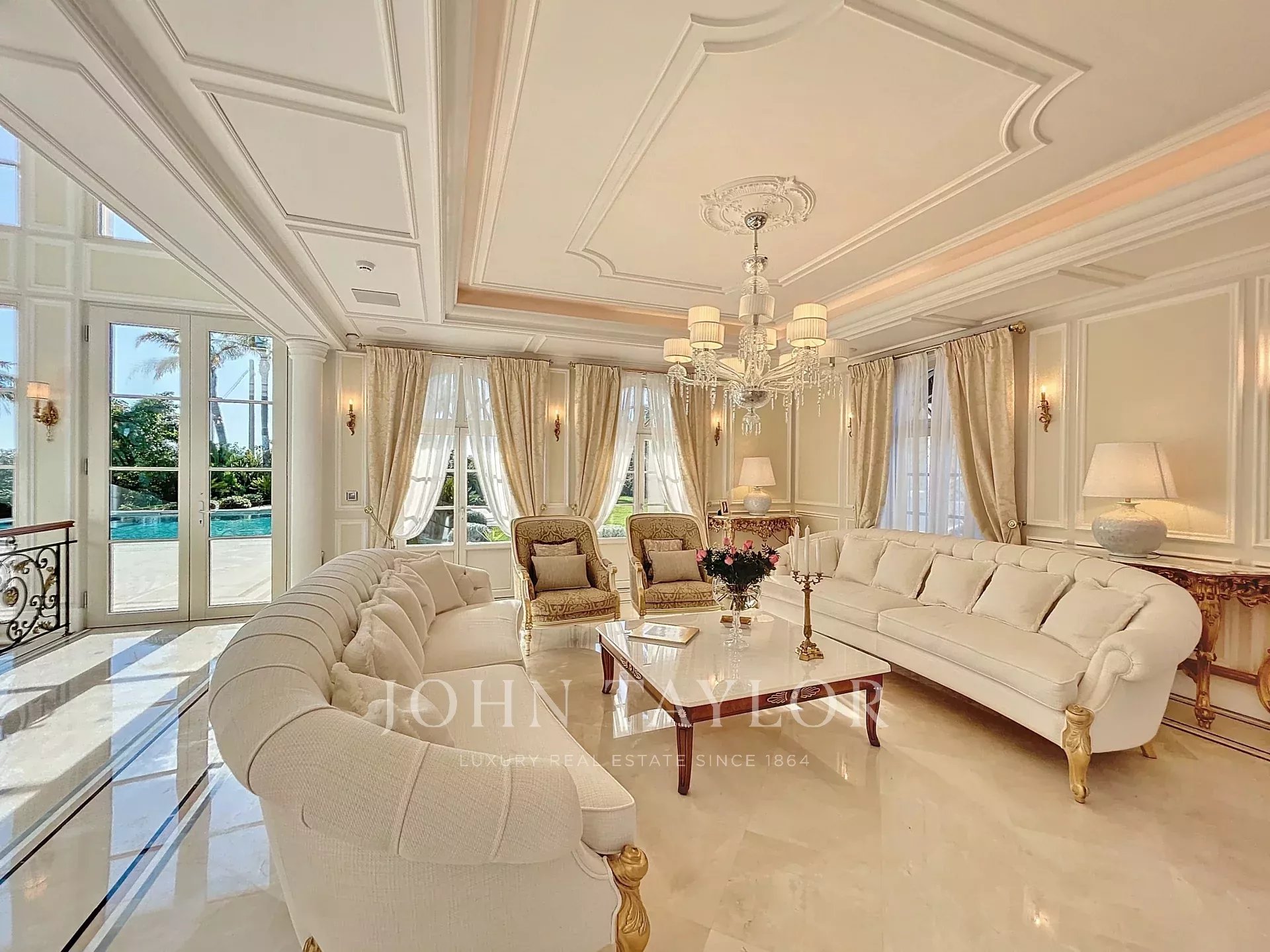 Living room providing breathtaking views of the pool.
