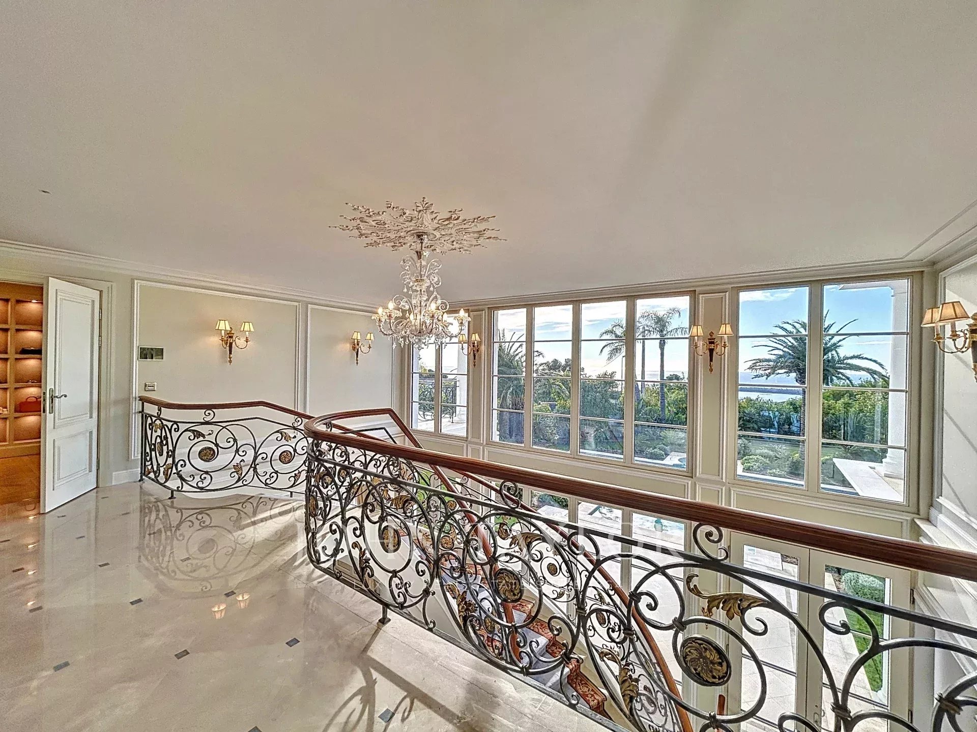 Master bedroom opening onto a terrace with a partial sea view of the Lérins Islands, complete with a dressing room and en-suite shower room.