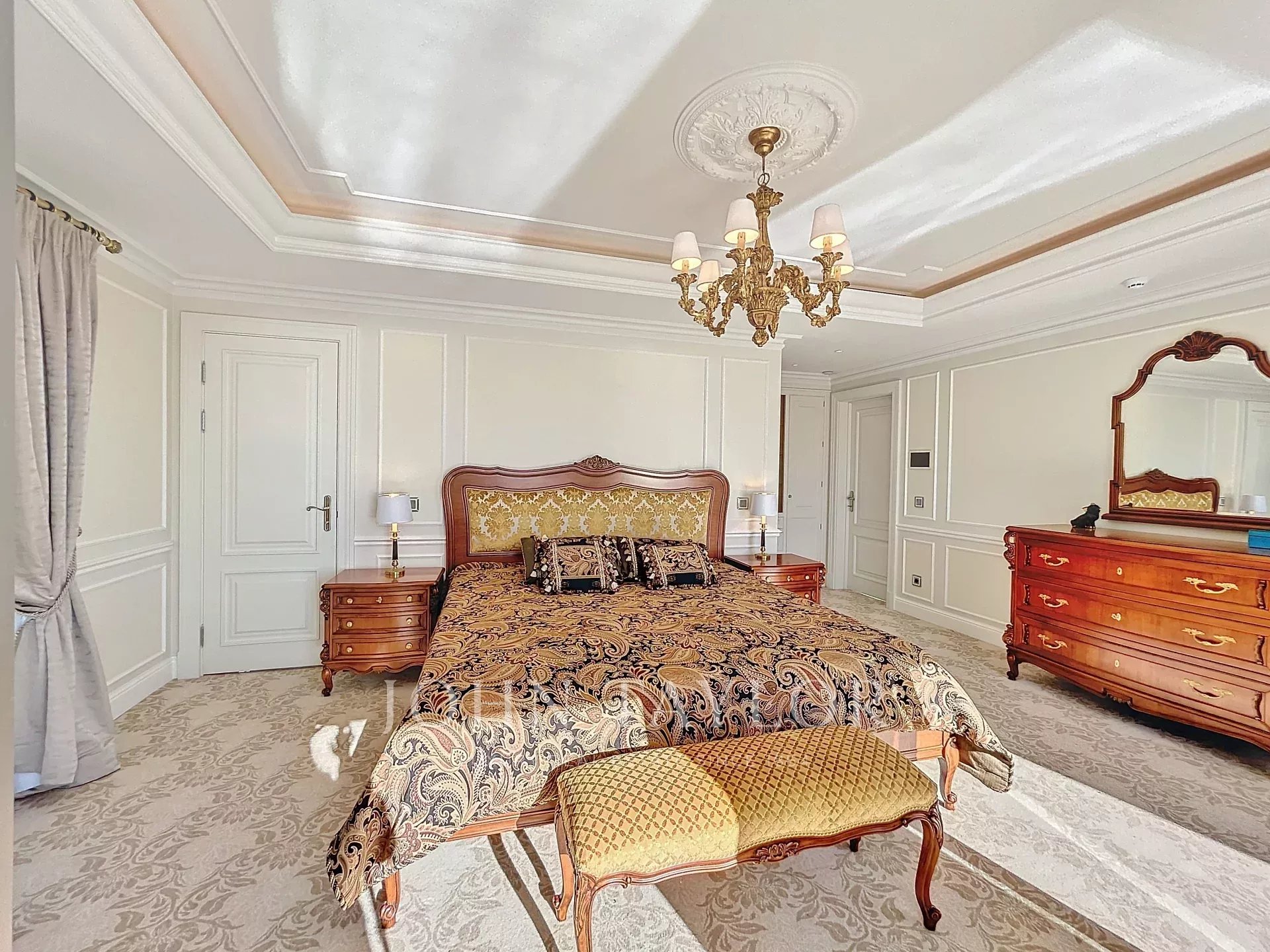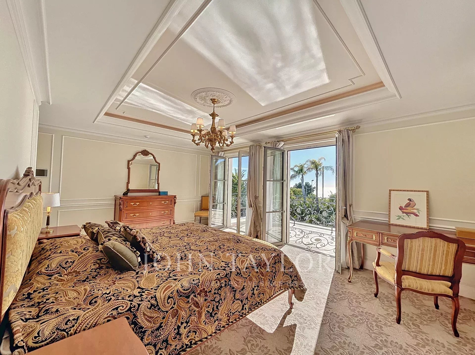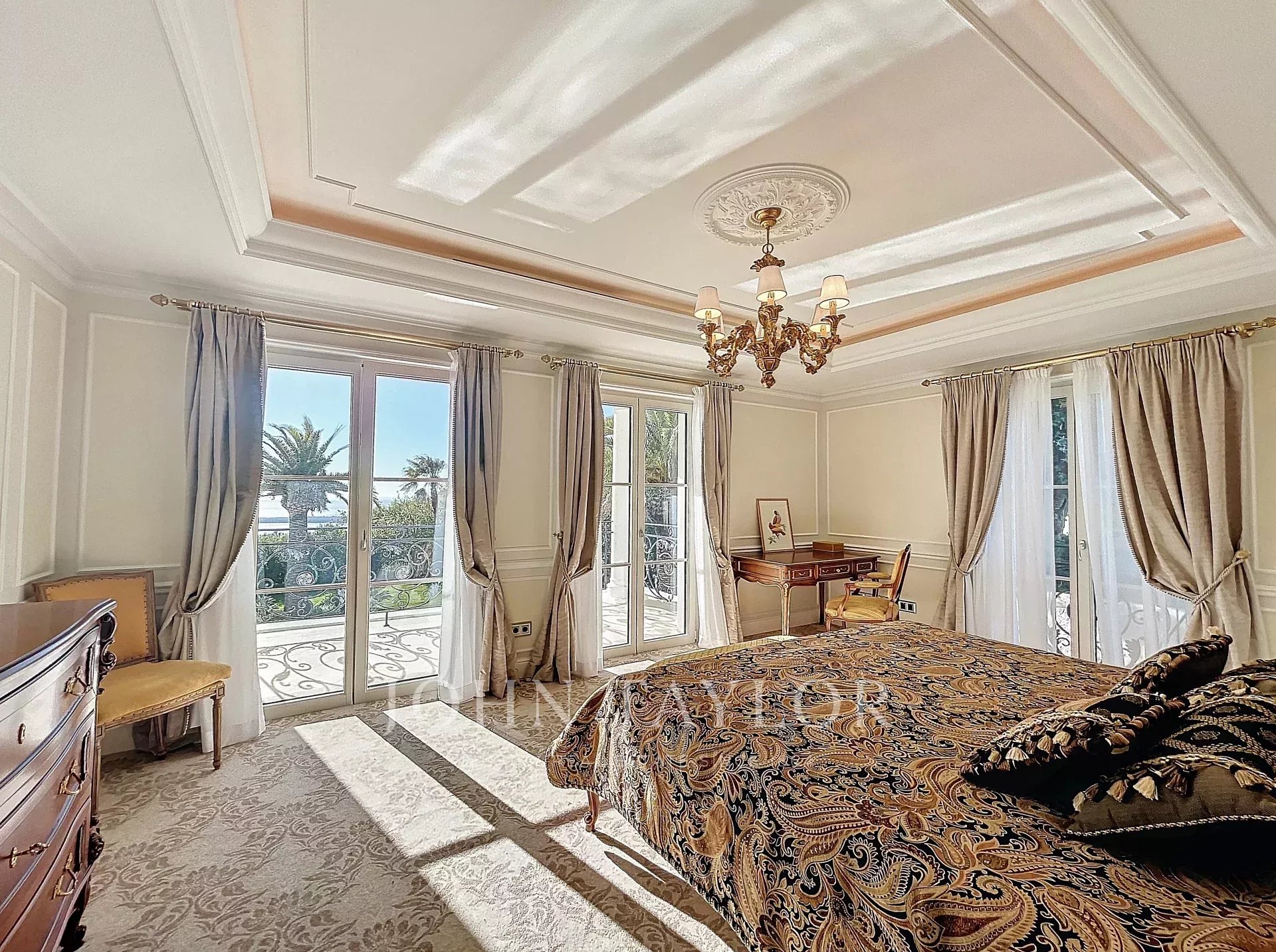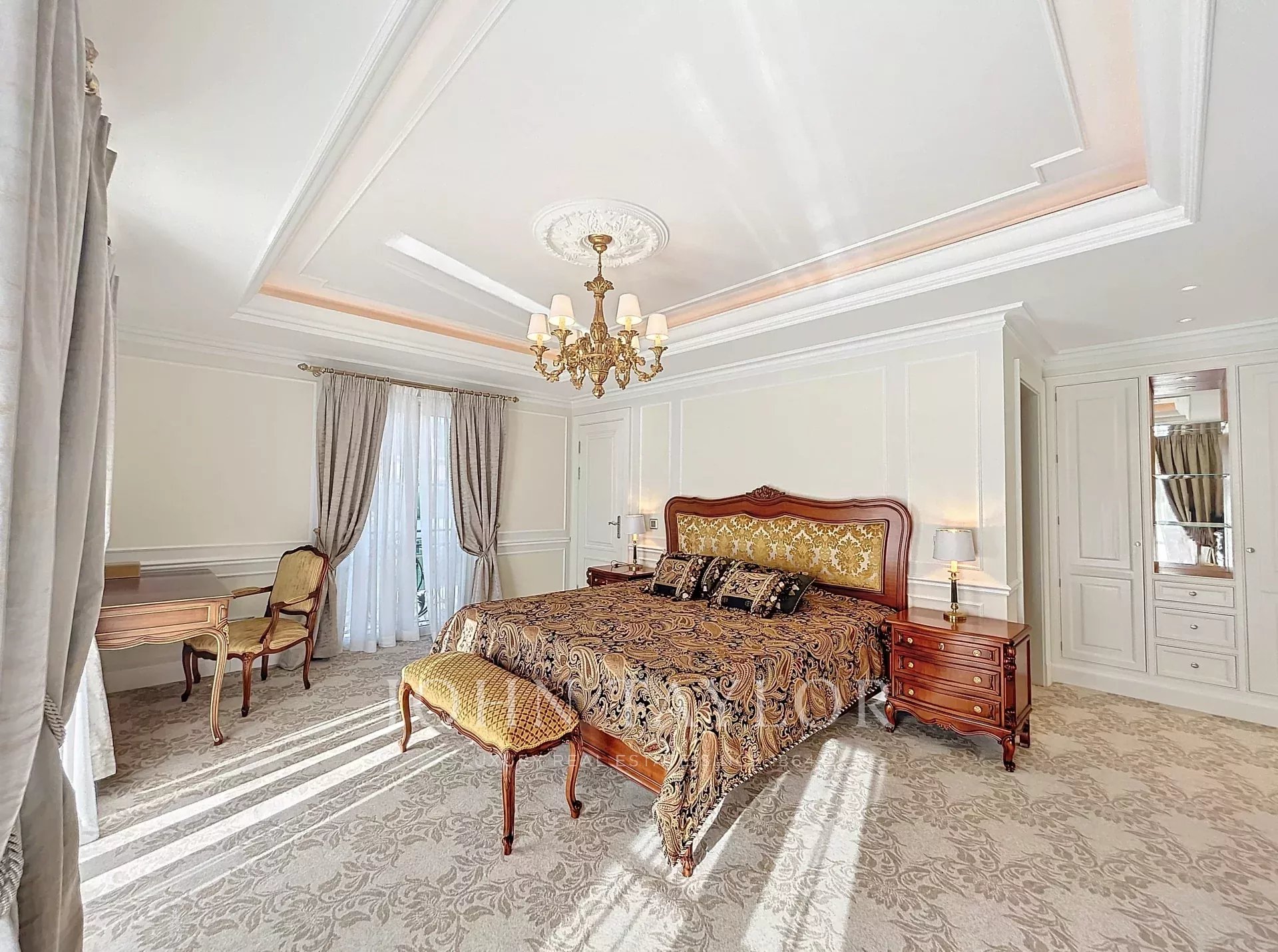 Another Master bedroom with terrace access and sea view of the Lérins Islands, featuring a dressing room and an en-suite shower/WC.