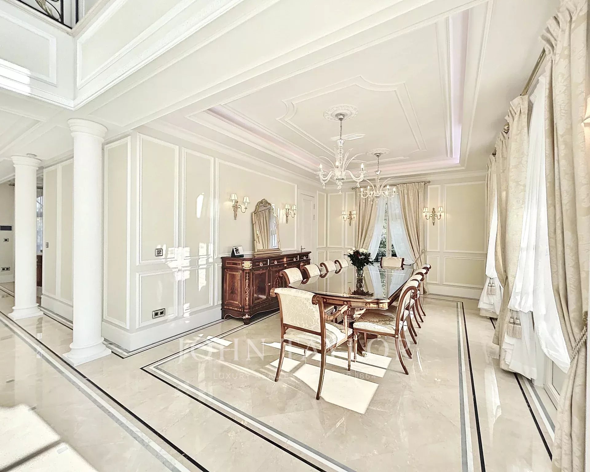 Nestled in the highly coveted residential neighborhood of Super Cannes, this sumptuous property offers a luxurious experience perfect for vacations or professional events. The estate comprises a majestic main house and an elegant guest house, surrounded by meticulously maintained grounds spanning 3,200 sq.m.