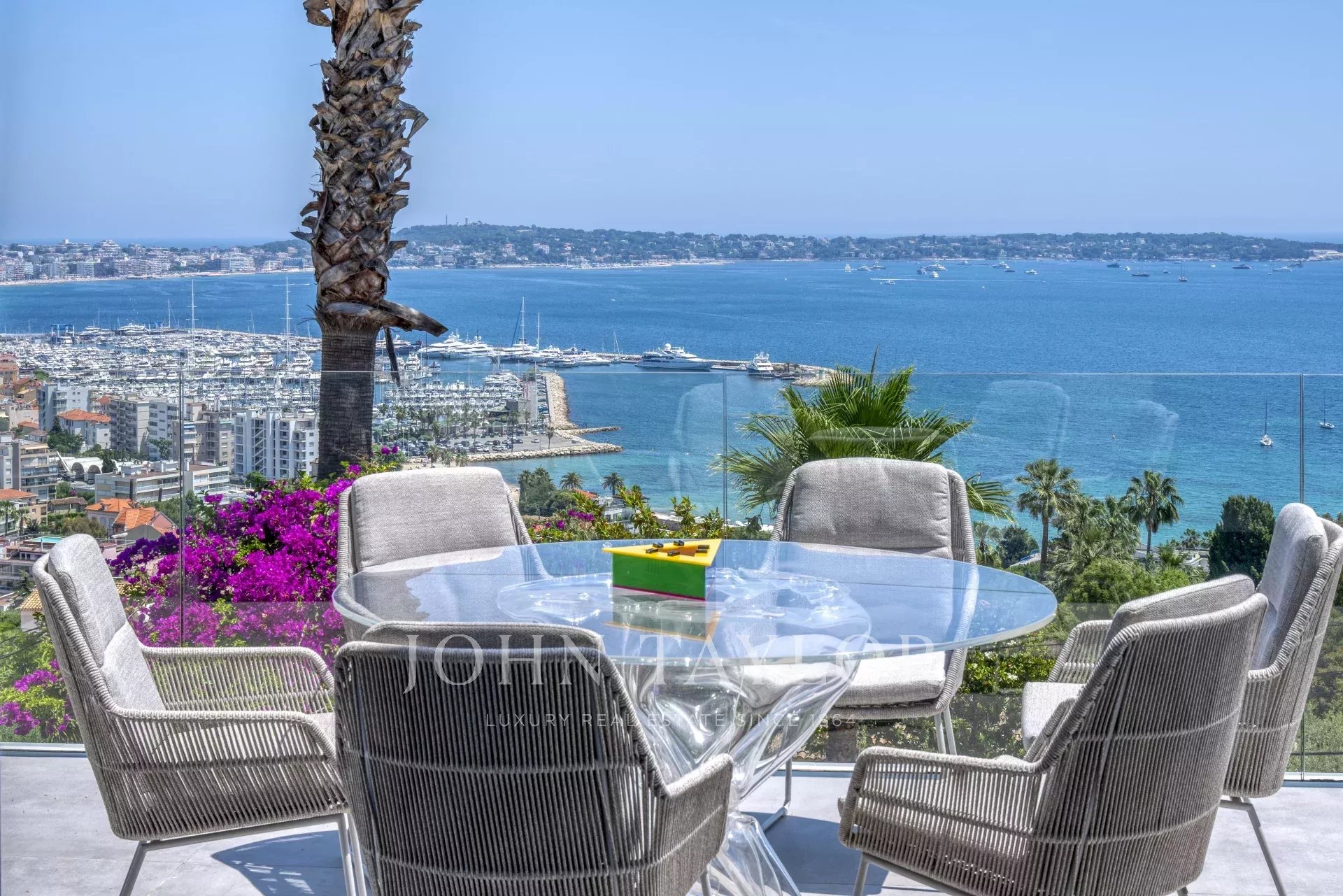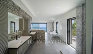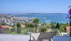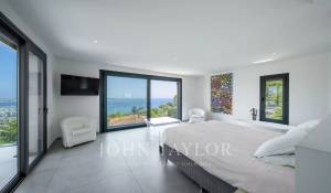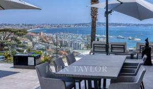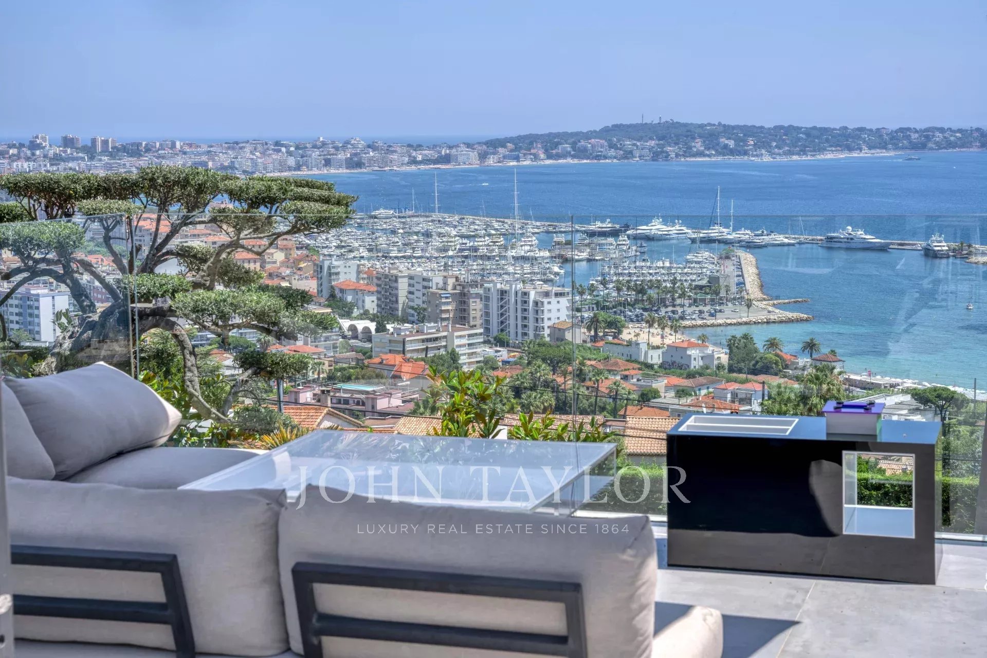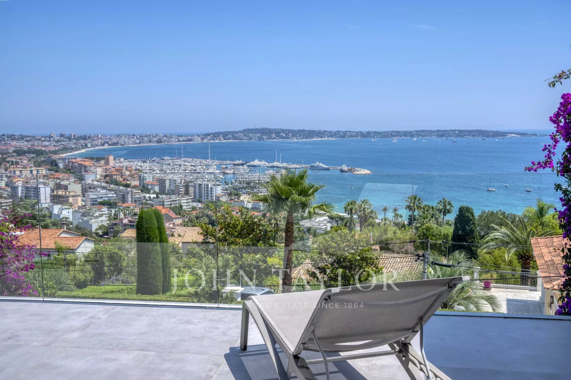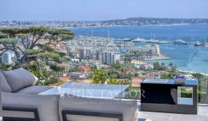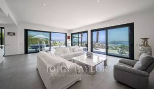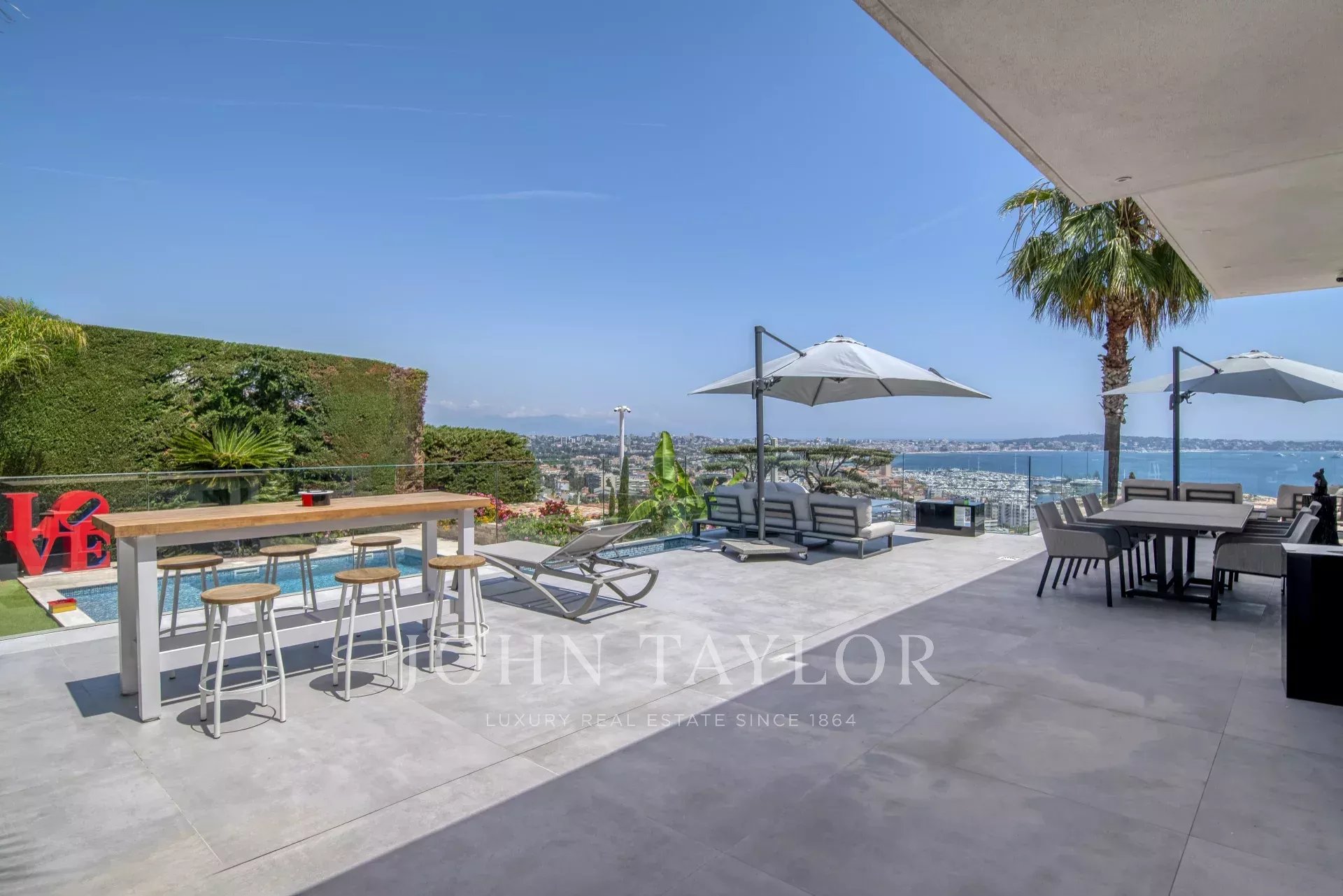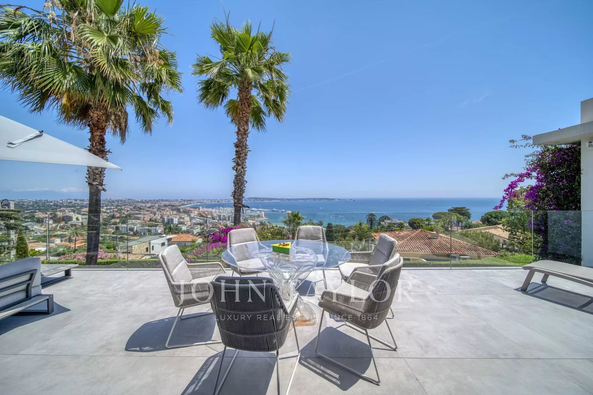 Overlooking the hills of Golfe Juan, just minutes from Cannes, this contemporary villa offers a stunning vacation setting with spectacular views of the Mediterranean and the legendary Cap d’Antibes.
