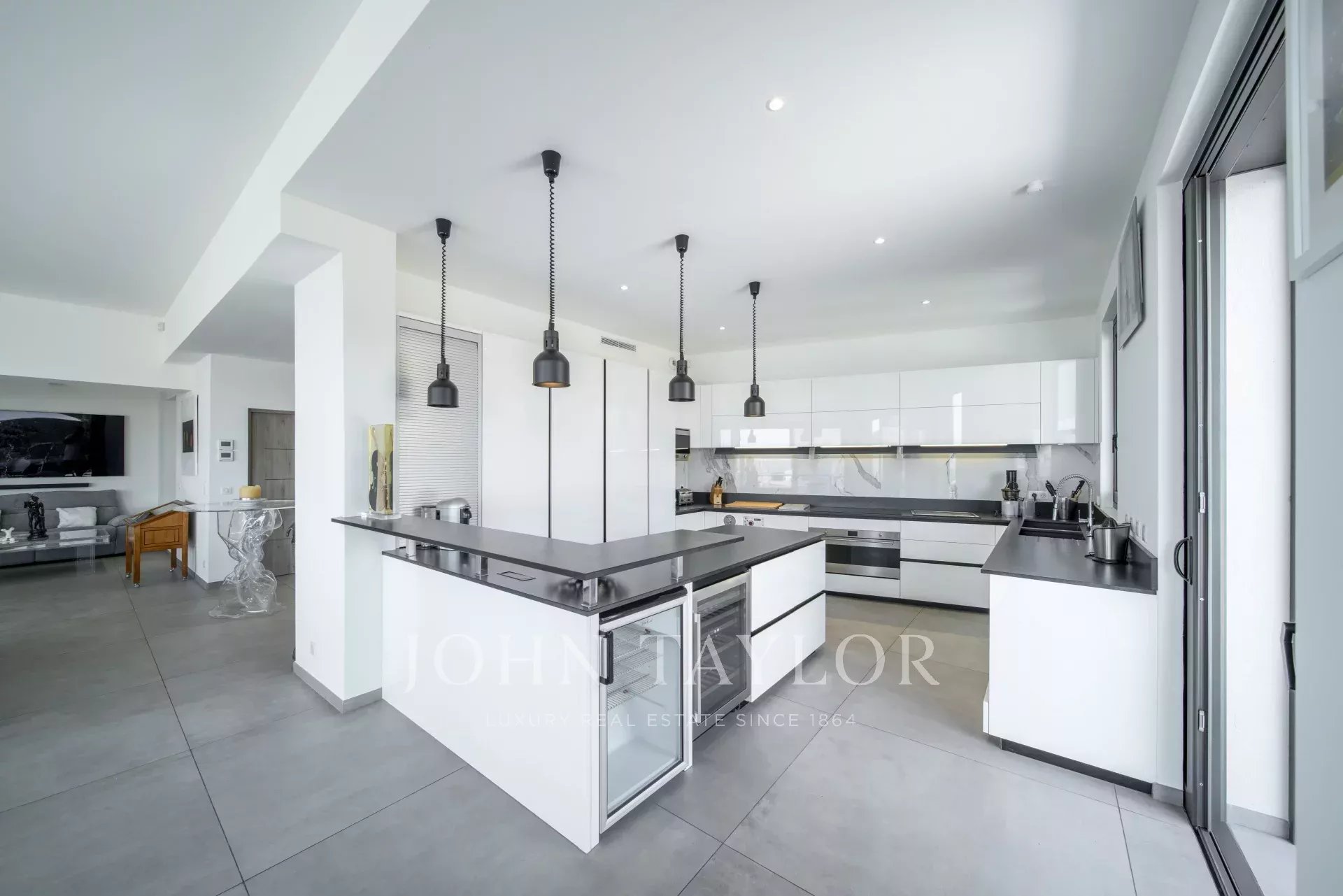 Designed to blend elegance and comfort, the property is centered around spacious, light-filled interiors: a warm living room with a dining area, a sleek, fully equipped open-plan kitchen leading onto a large terrace, and six bedrooms ensuites, including an independent apartment.