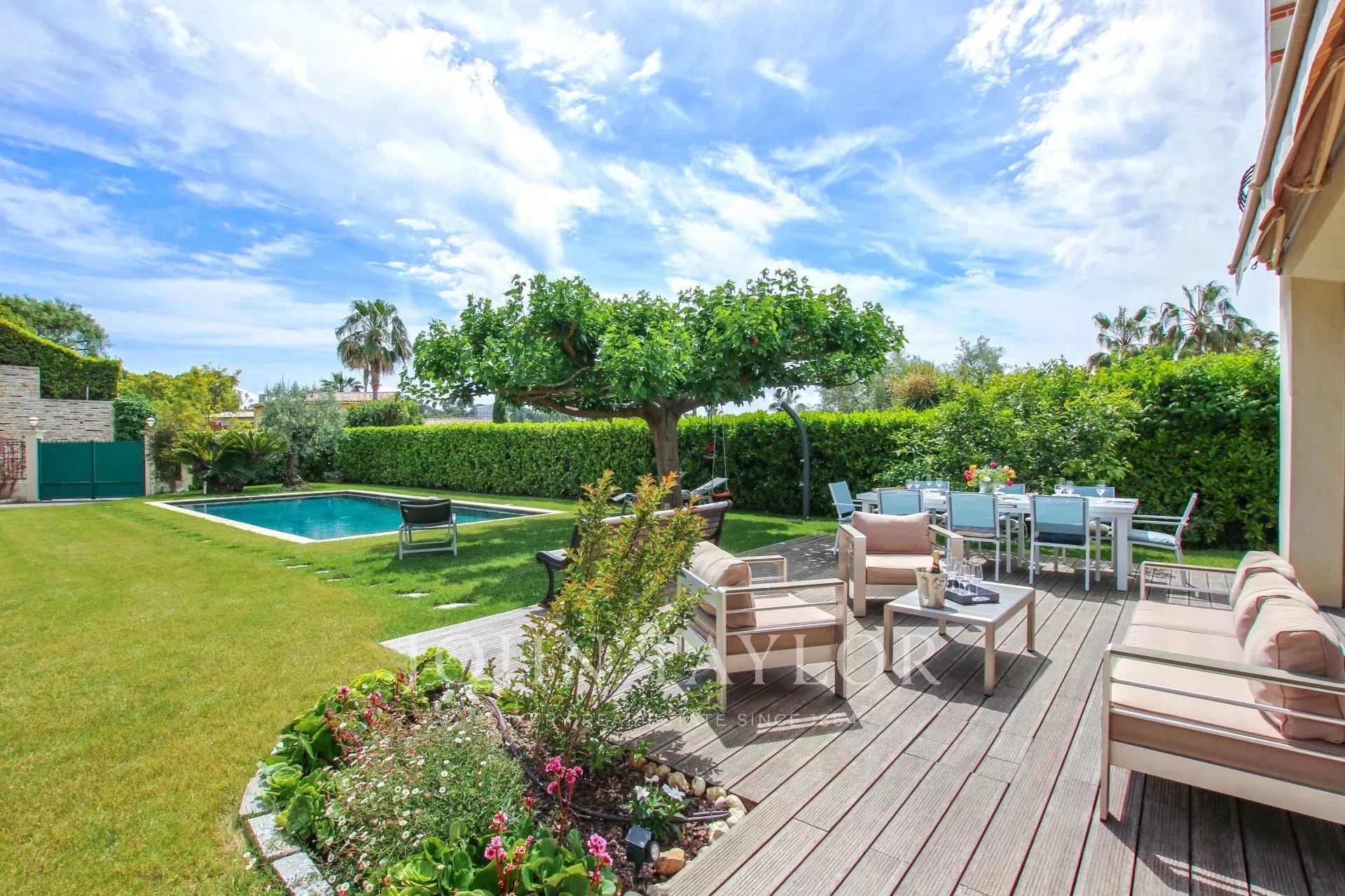 Made up of an entrance hall, living room and dining room opening onto garden with swimming pool and a shaded terrace, large fitted kitchen opening onto a shaded terrace and petanque. One en-suite bedroom.