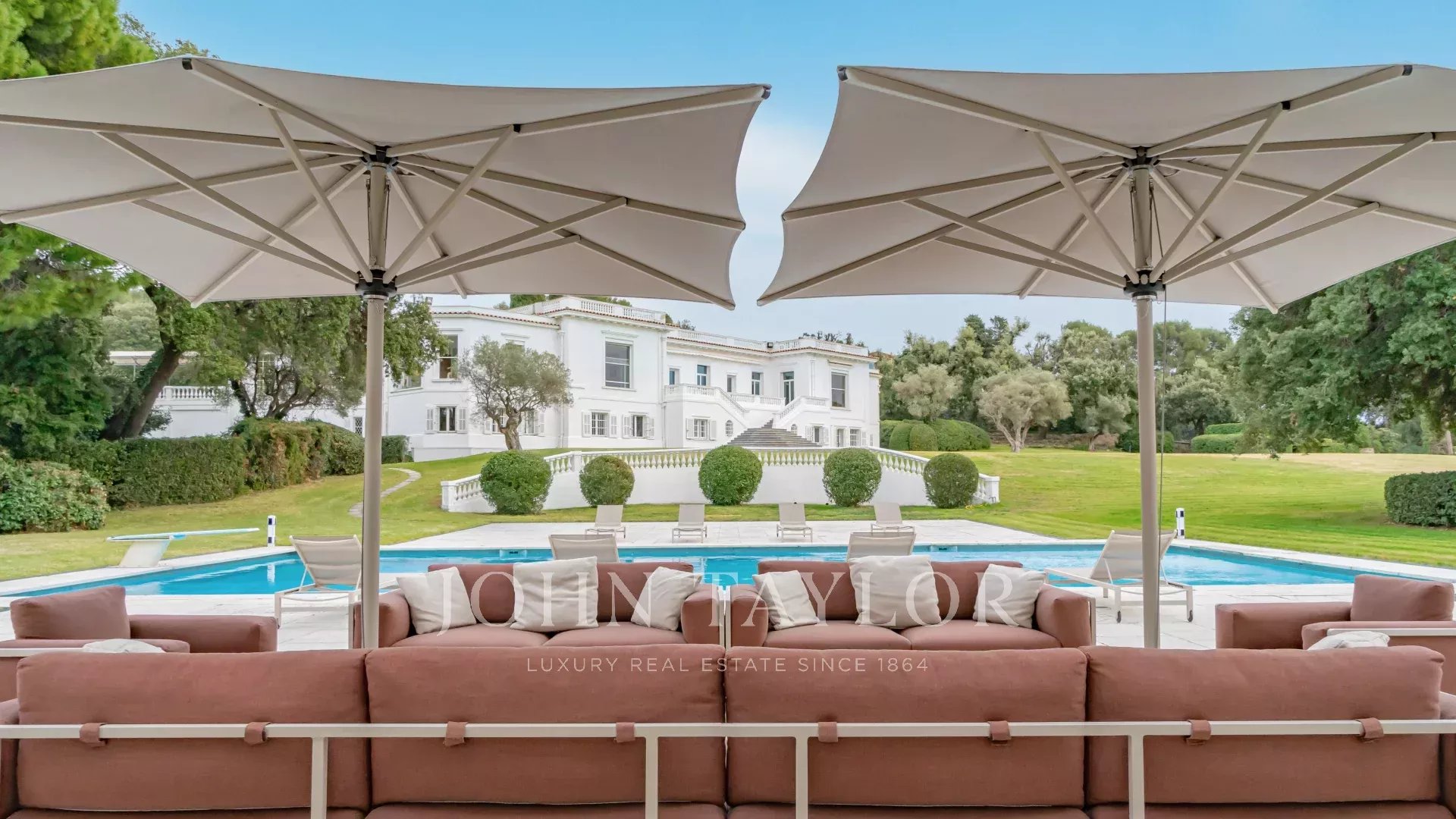This imposing and exceptional property is set in beautiful 4.5 hectare parkland extensively lawned, in the heart of the Cap d'Antibes.