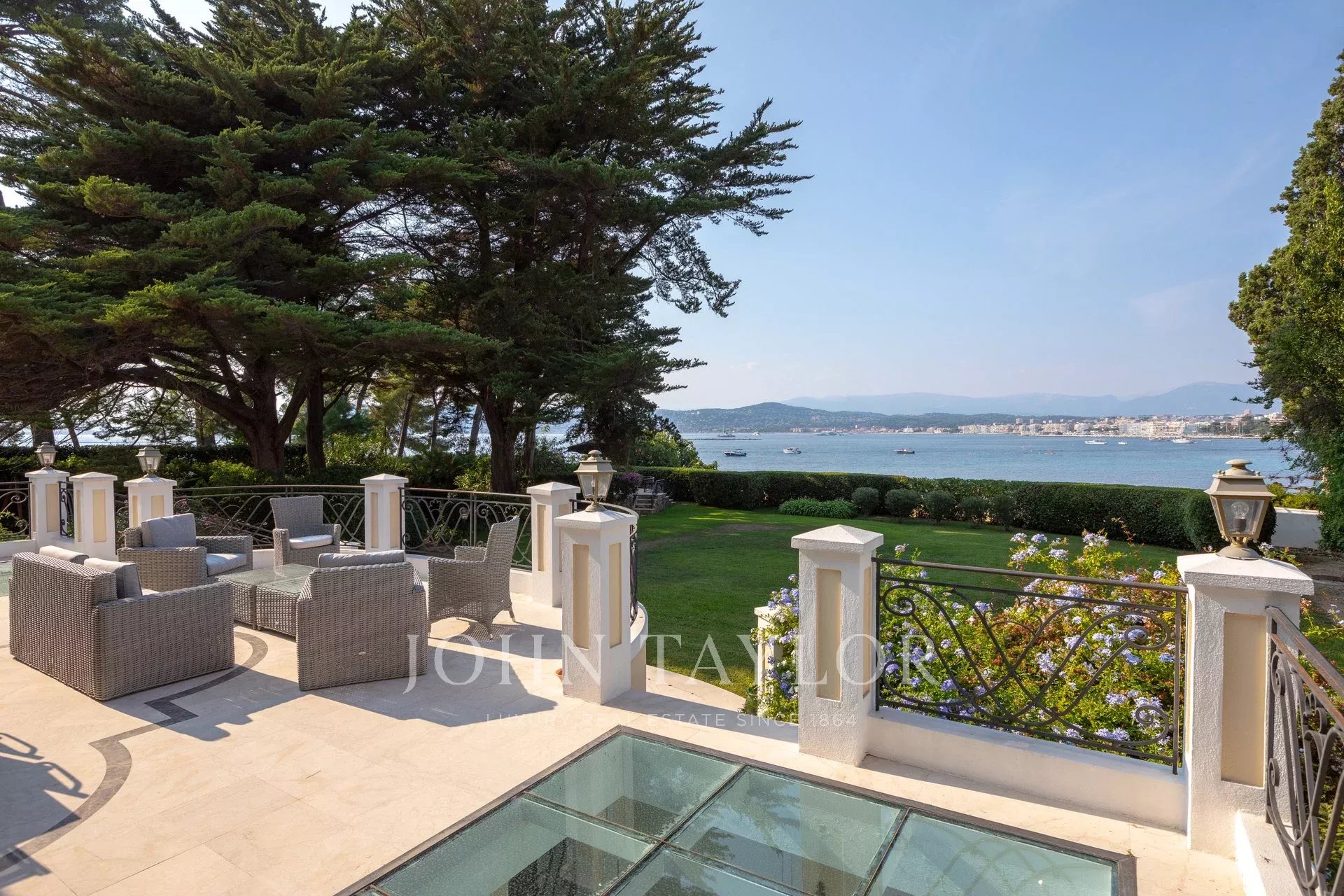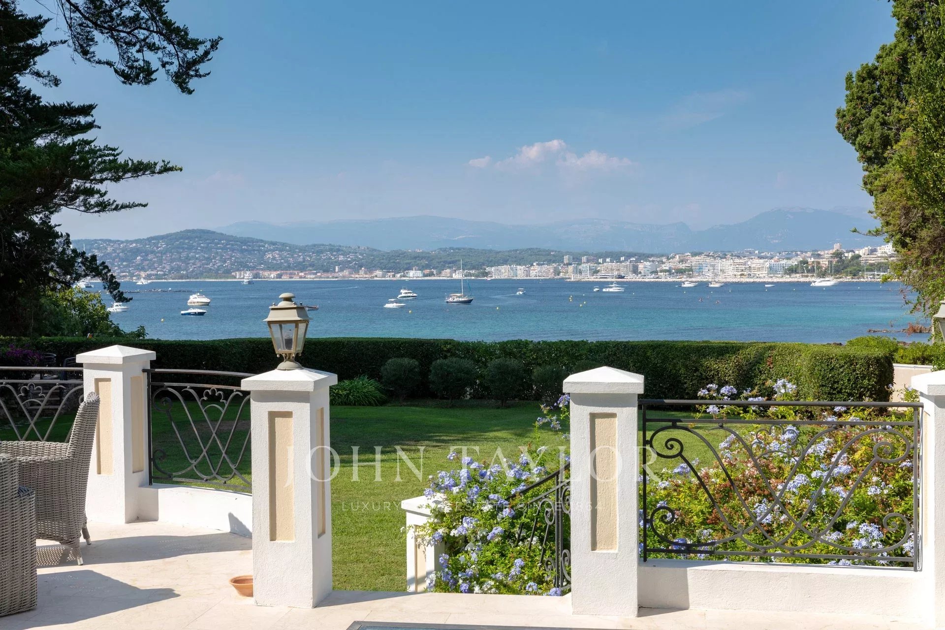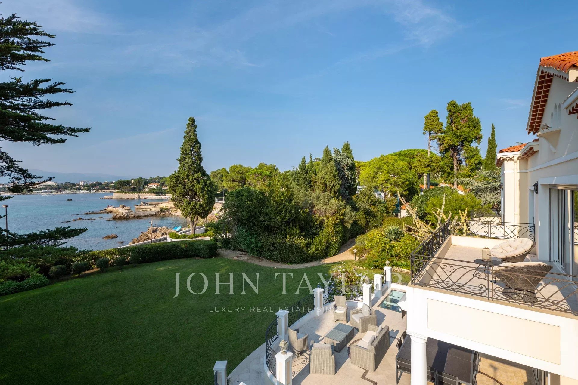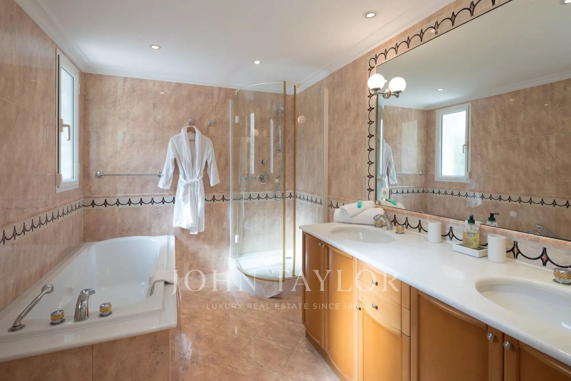 A few minutes drive from Hotel du Cap and Eden Roc, the villa enjoys a very nice view of the sea, Lerins Islands, Juan Les Pins and Esterel Mountains.