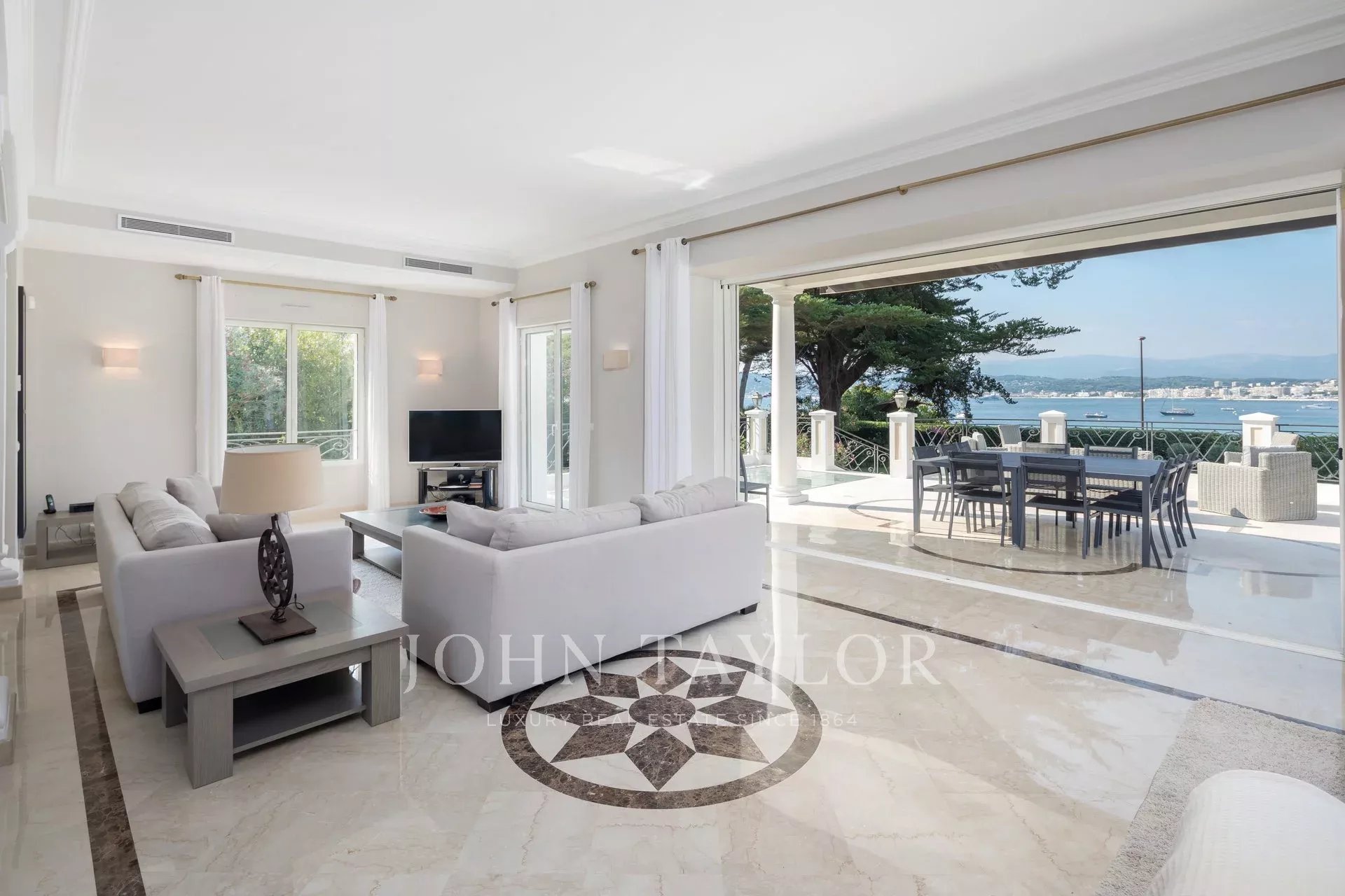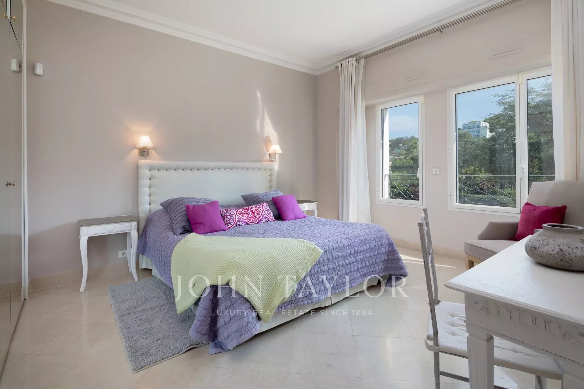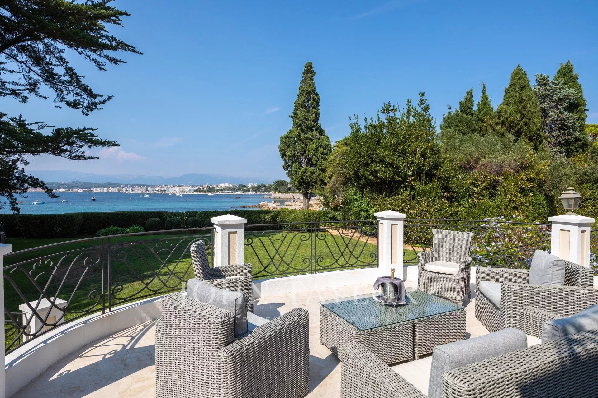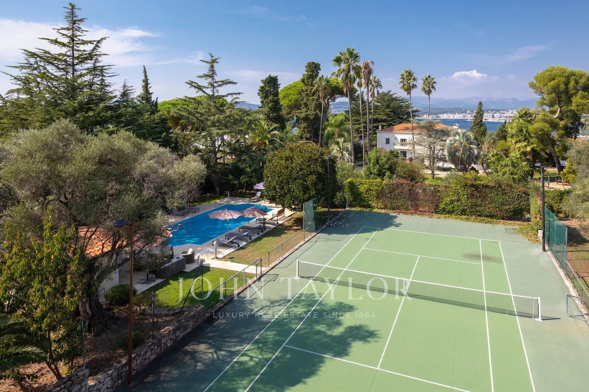 A few minutes drive from Hotel du Cap and Eden Roc, the villa enjoys a very nice view of the sea, Lerins Islands, Juan Les Pins and Esterel Mountains.