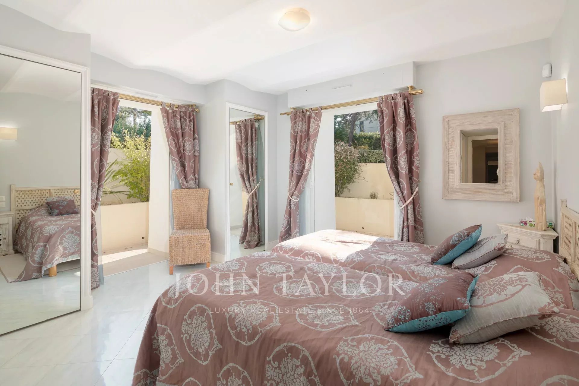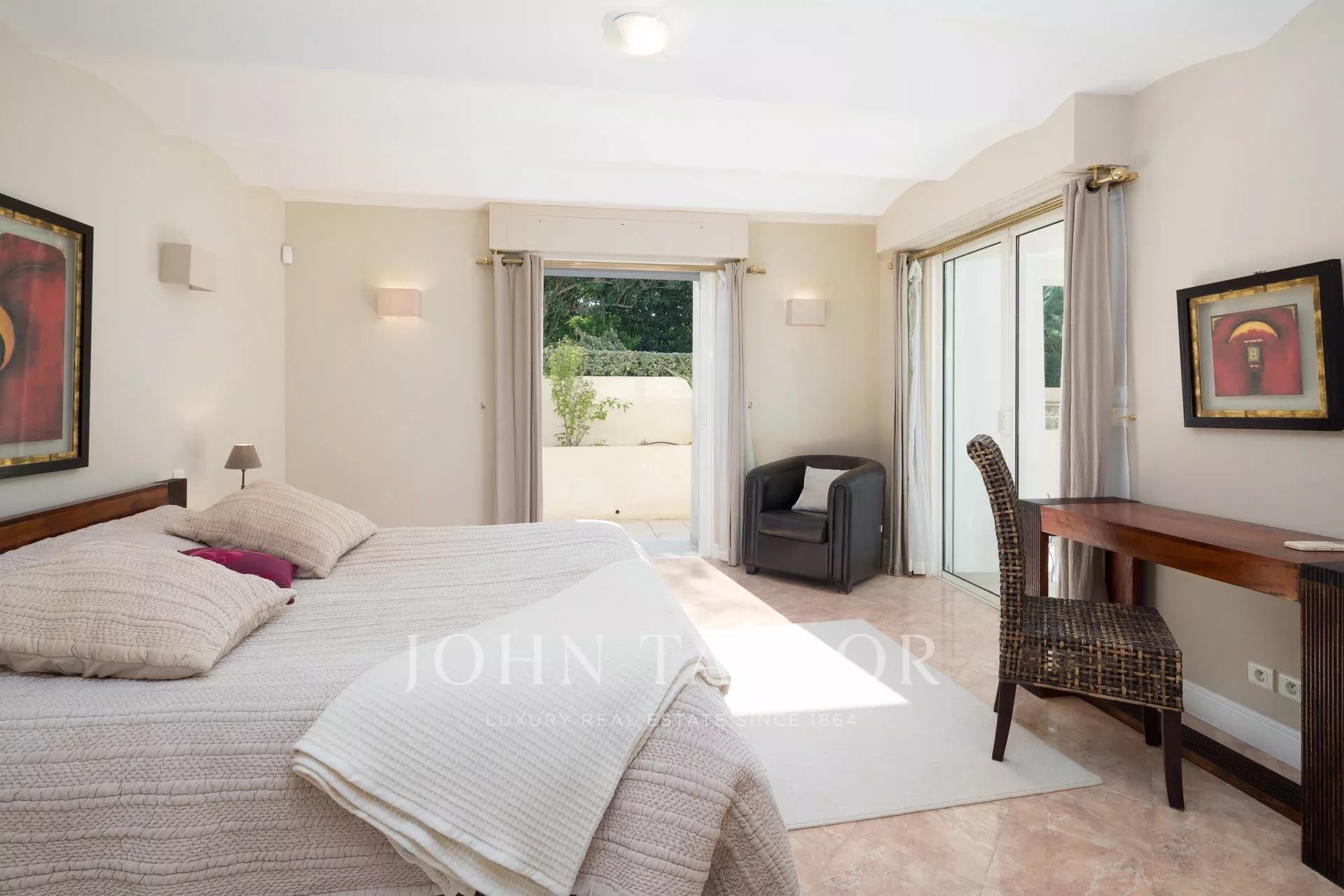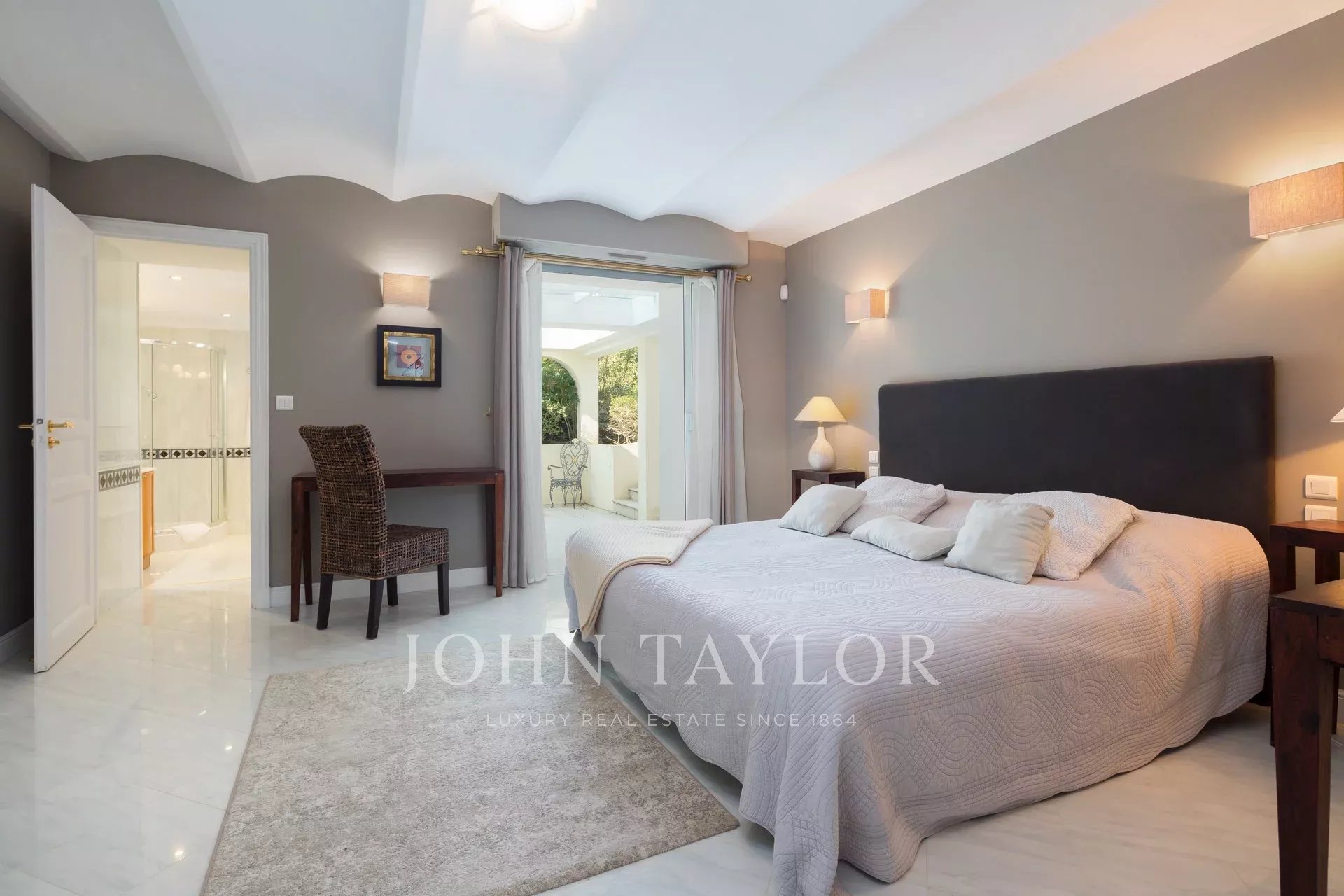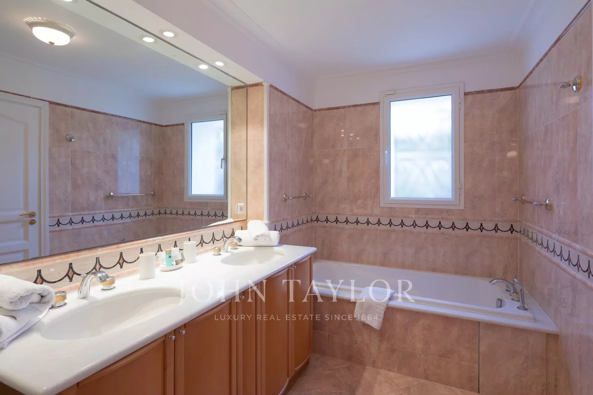A few minutes drive from Hotel du Cap and Eden Roc, the villa enjoys a very nice view of the sea, Lerins Islands, Juan Les Pins and Esterel Mountains.
