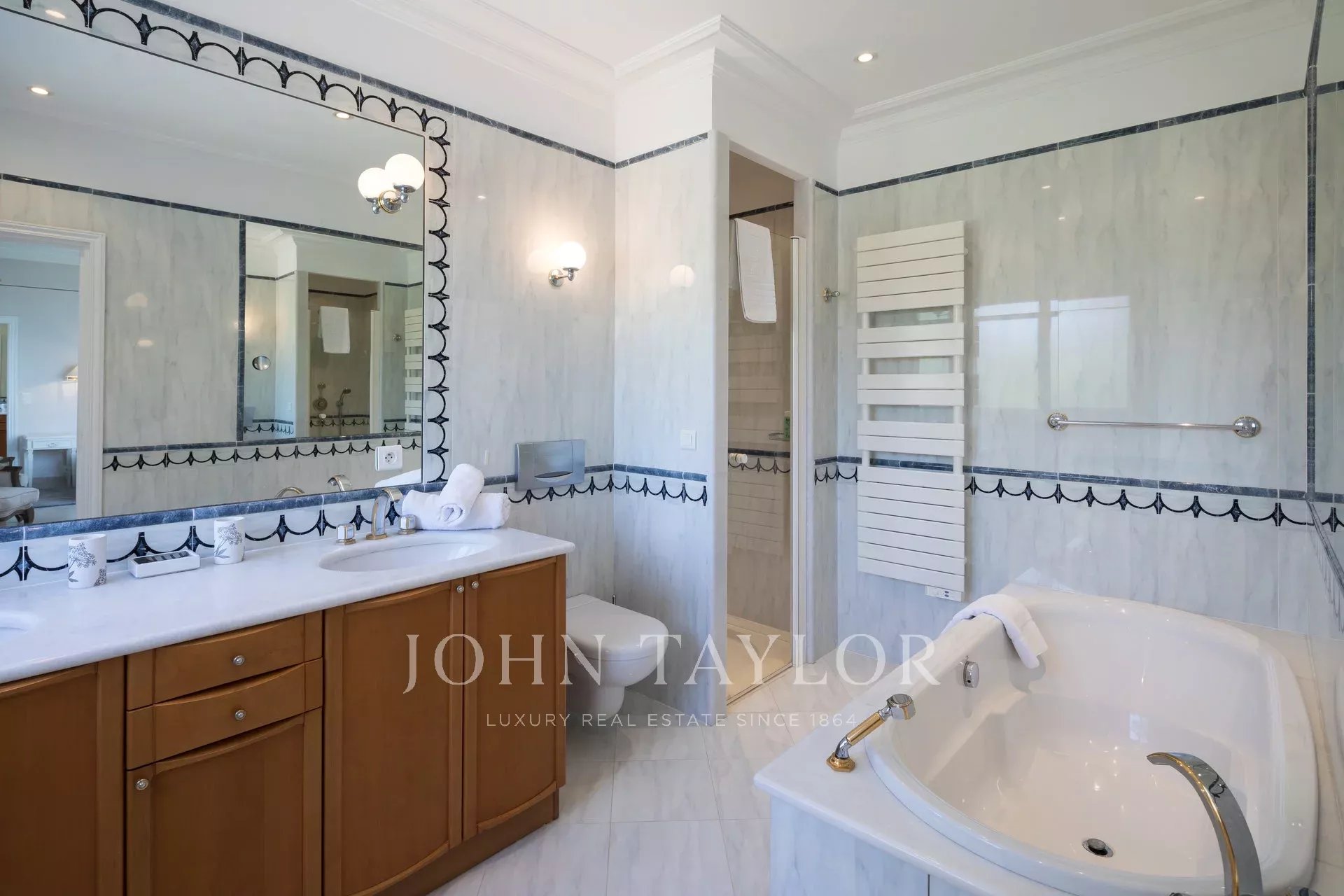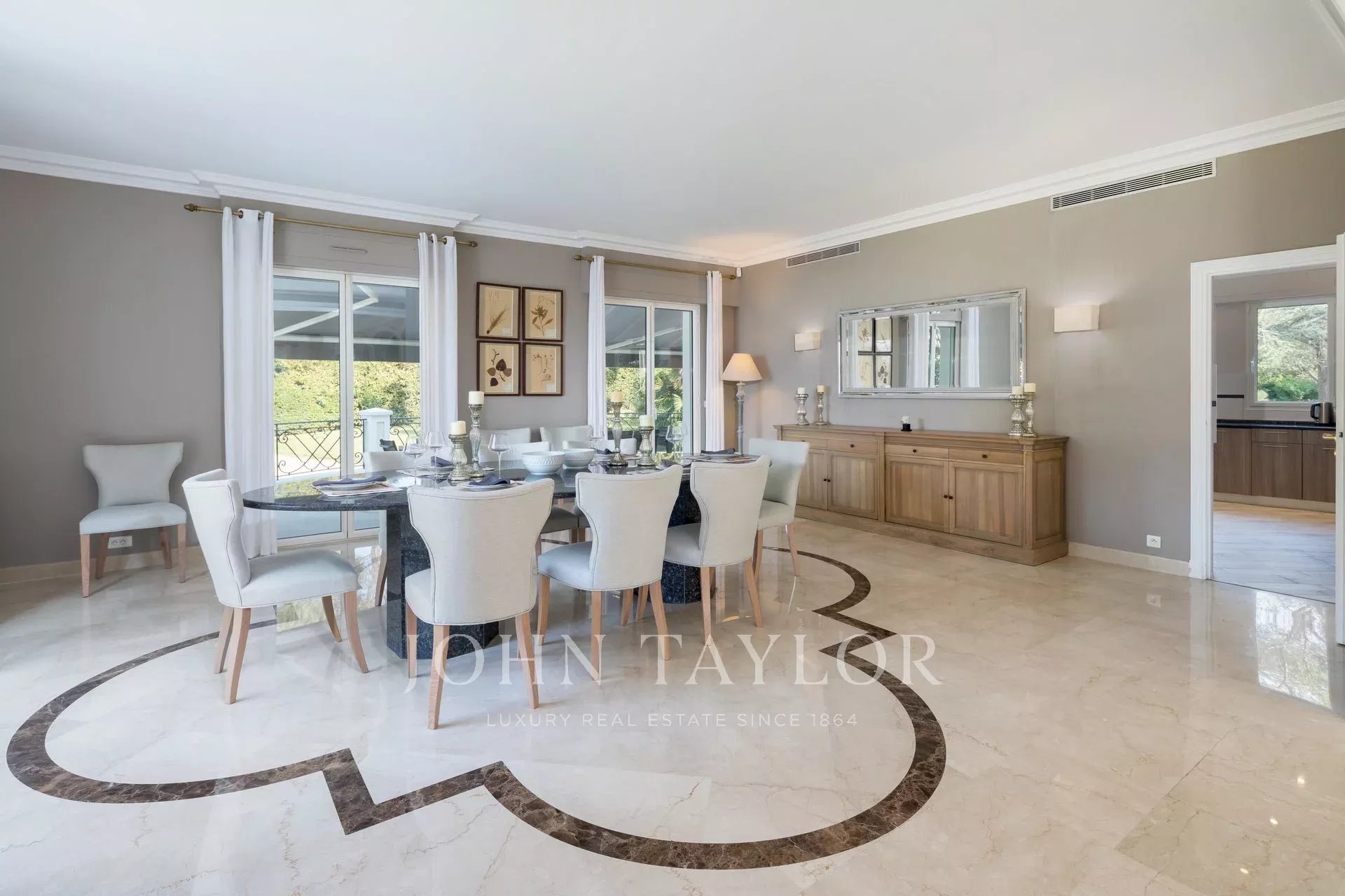 Completely renovated and air-conditioned, the villa is surrounded by a beautiful park of 9 000 sq.m, well maintained with lawn, flowers and big trees.