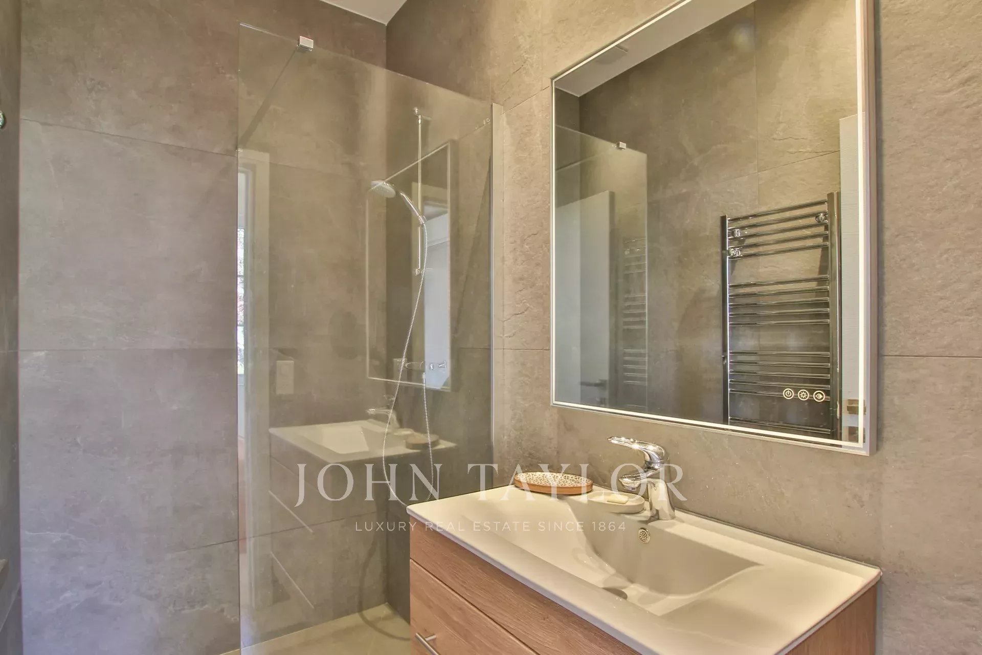Upstairs: master bedroom with shower room and dressing room, 2 additional bedrooms with shower room.