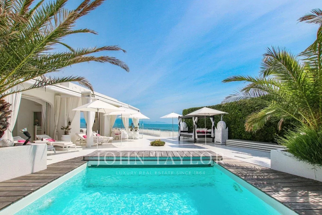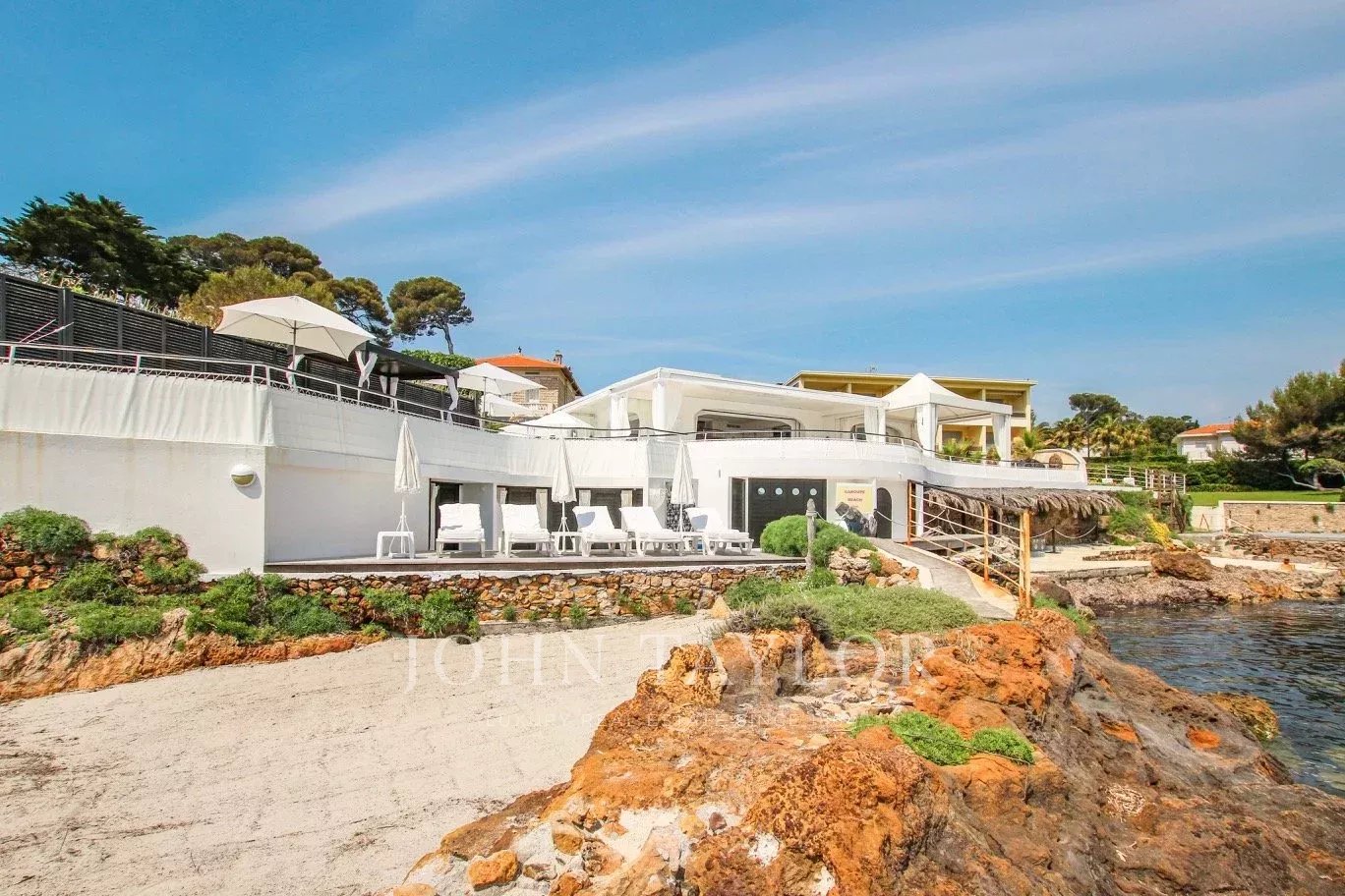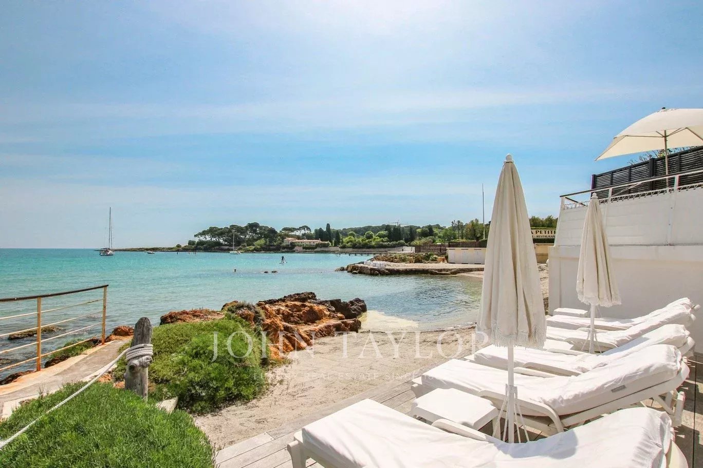 Beautiful Californian style of around 120sqm, built on one level on 842 sqm of land, with heated pool and private beach, exceptional location in Garoupe Bay.
