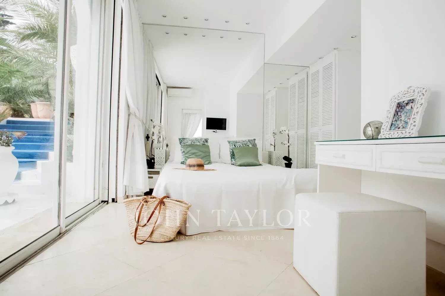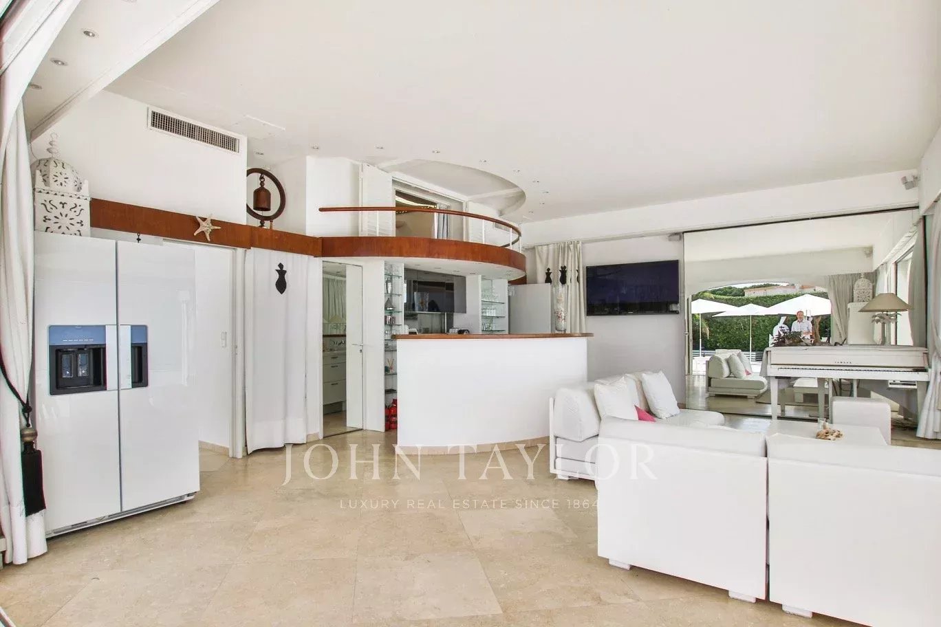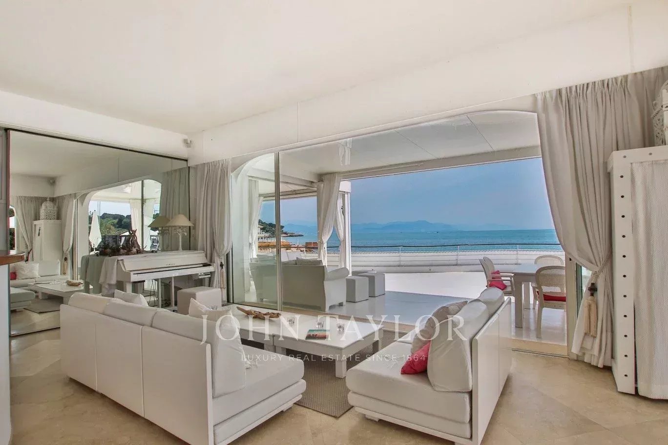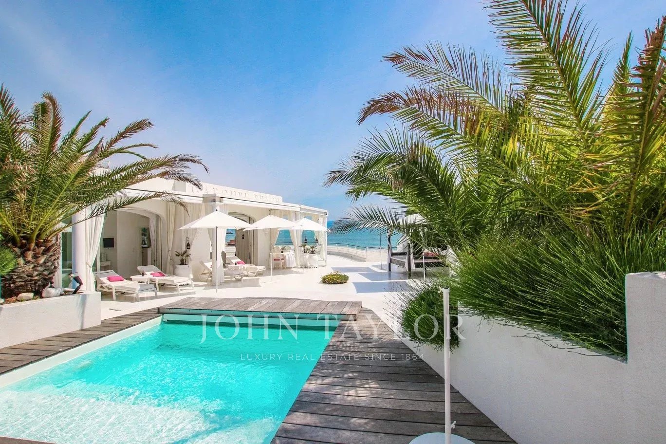 Beautiful Californian style of around 120sqm, built on one level on 842 sqm of land, with heated pool and private beach, exceptional location in Garoupe Bay.