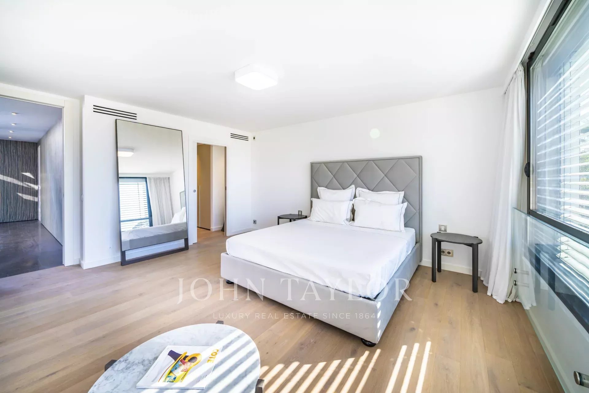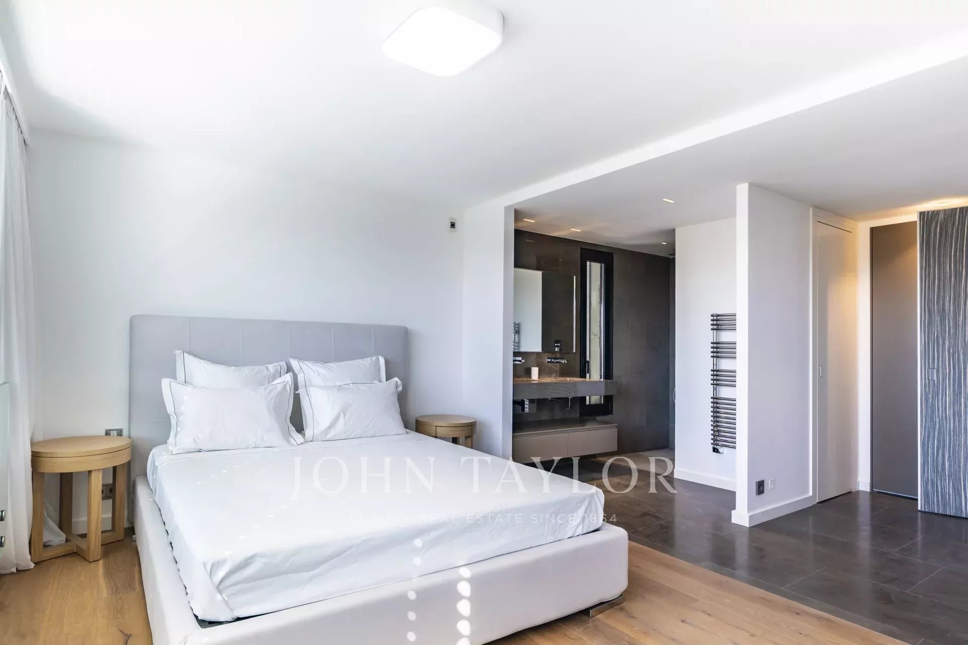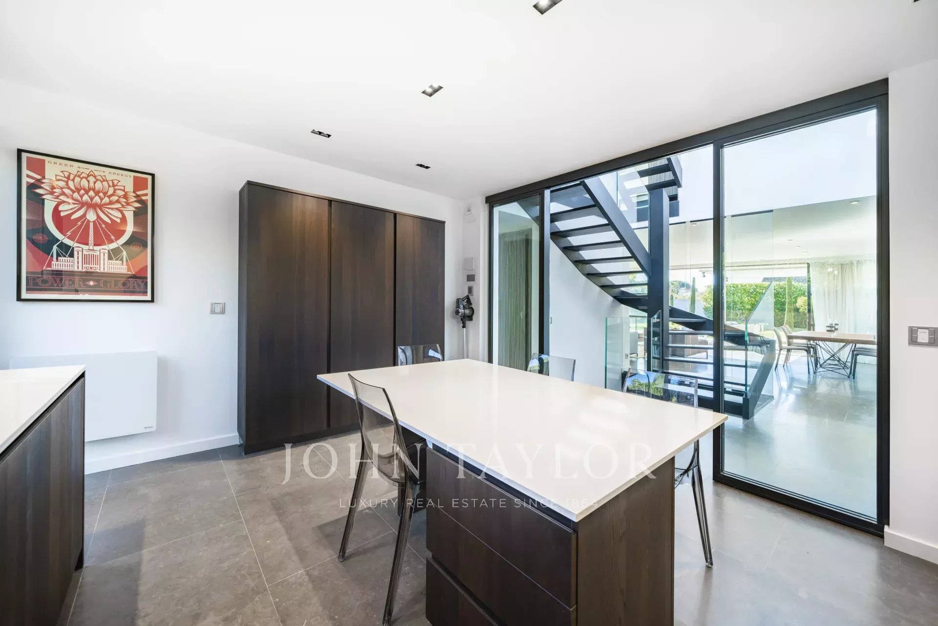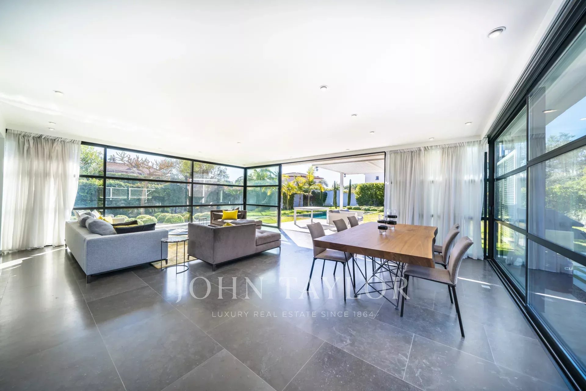 Beautiful new contemporary villa completed in summer 2020, offering 320 sqm living area surrounded with 940 sqm grounds and enjoying nice sea views (the Bay of Juan les Pins and the Iles de Lerins) from its roof top terrace/solarium.