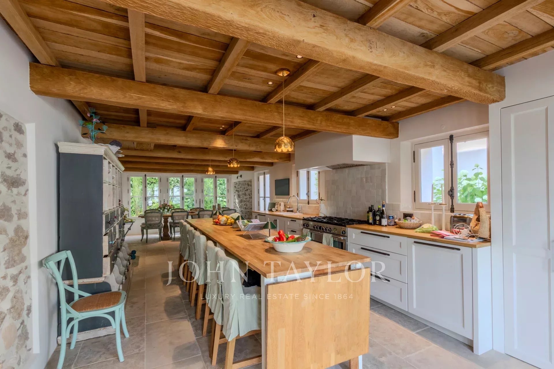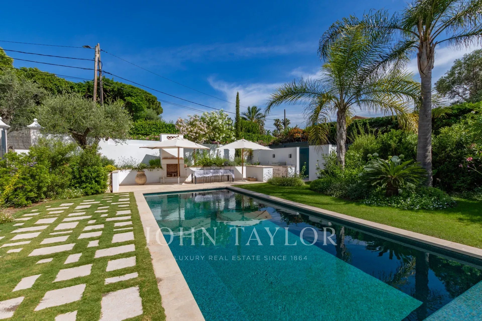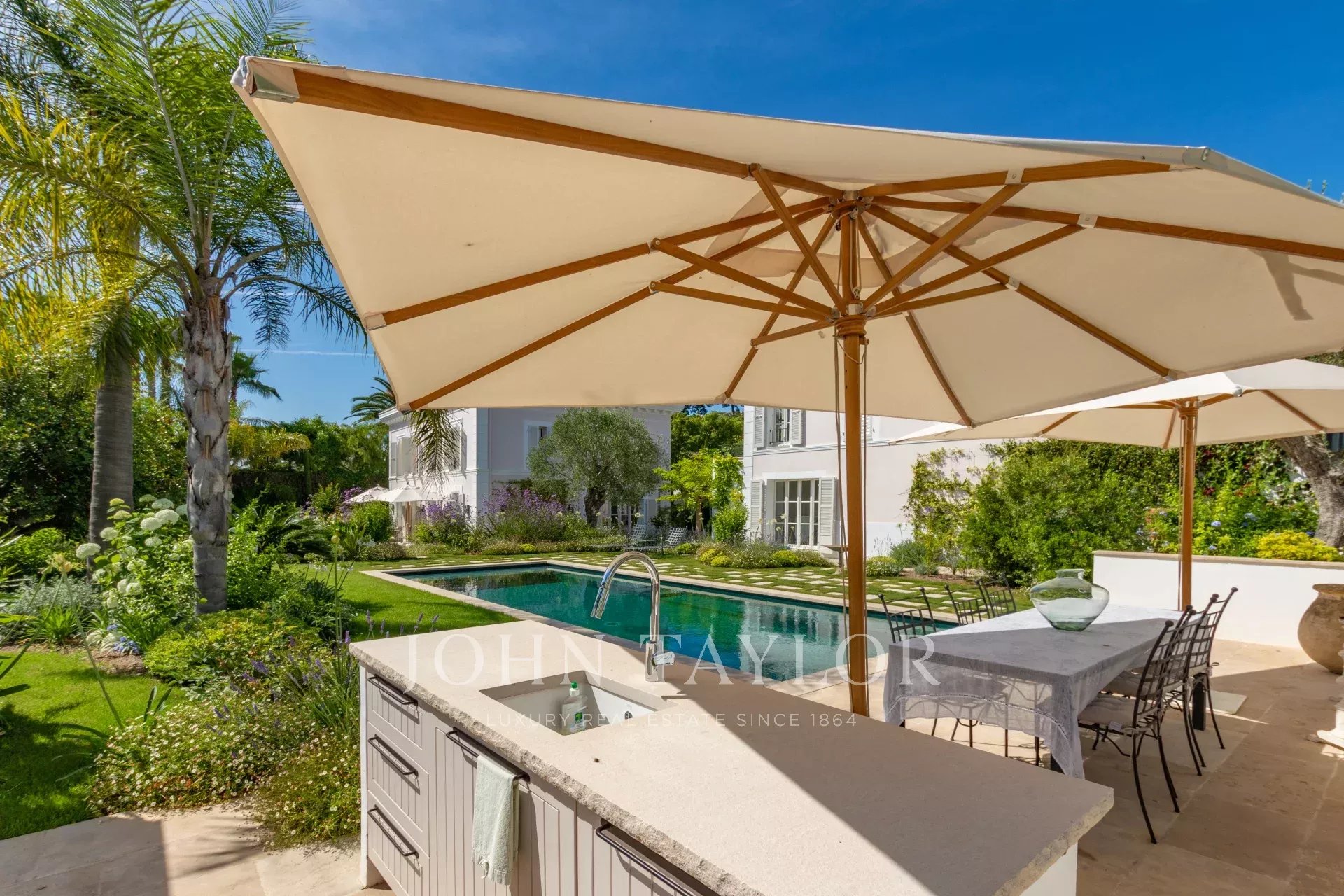 The villa boasts a magnificent swimming pool, perfect for cooling off or relaxing in the sun. The landscaped garden surrounding the pool creates a setting of serenity and privacy. You can also relax on the shaded terrace, ideal for al fresco dining or socializing with family and friends.