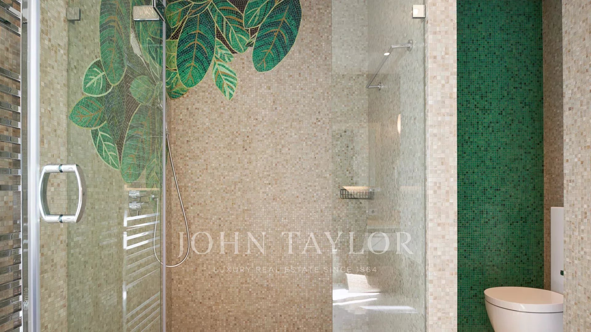 The entrance leads you to a vast reception area opening onto a magnificent terrace with views of the sea and the old town of Antibes, comprising a lounge and dining room that can seat 12 people.