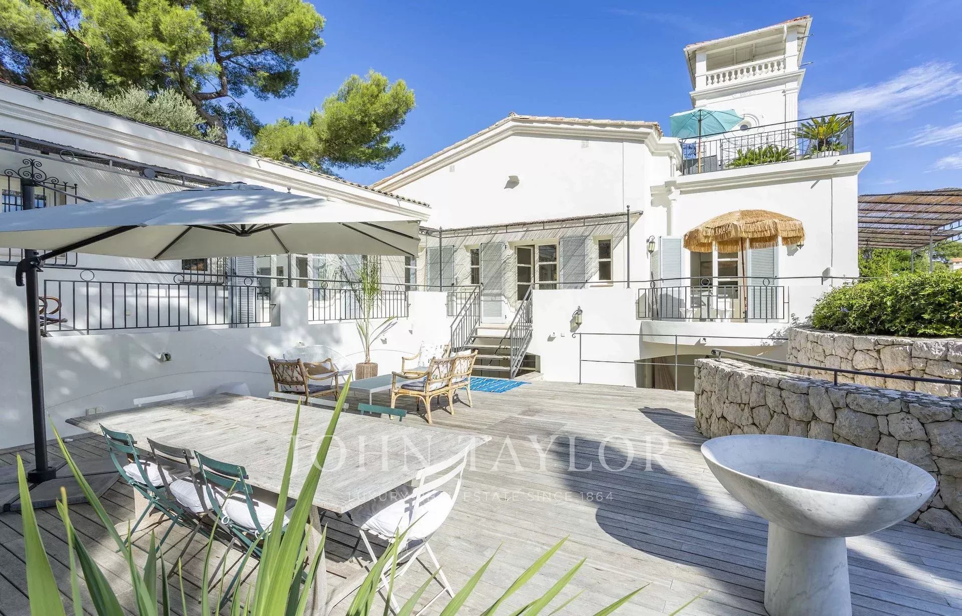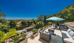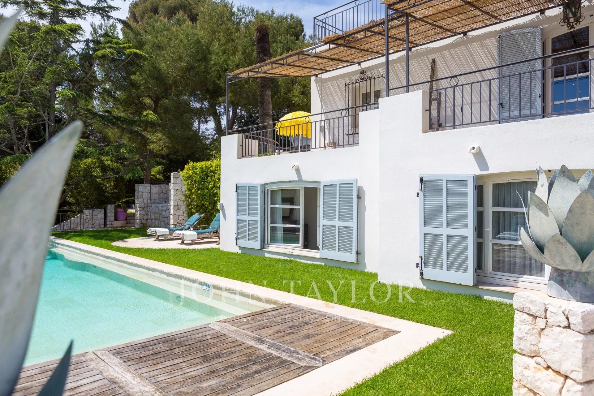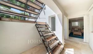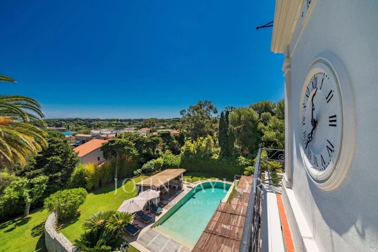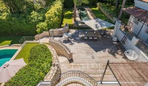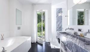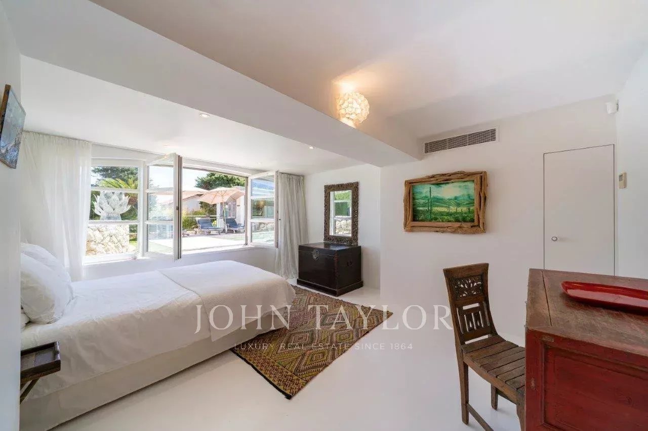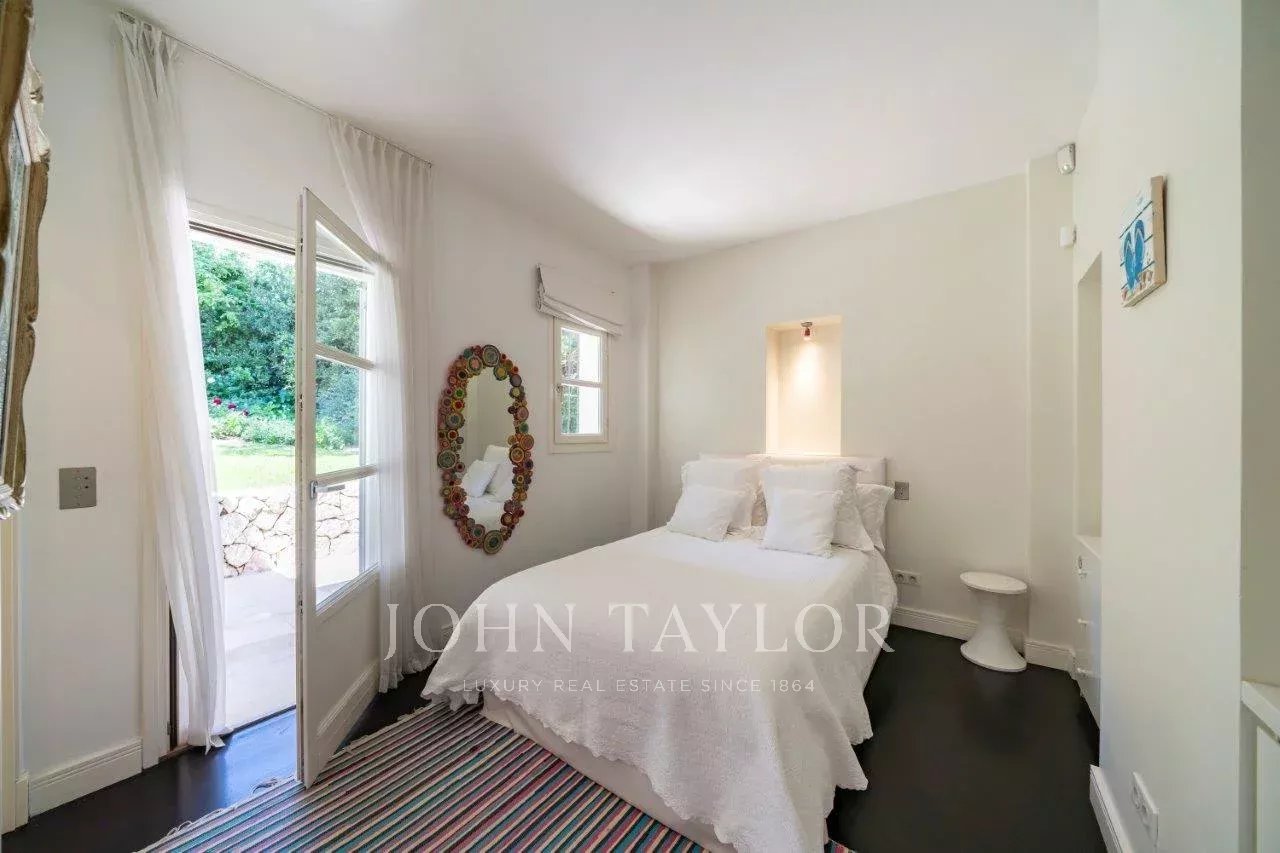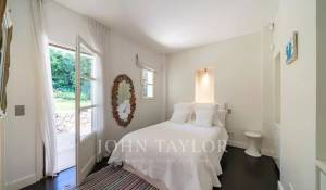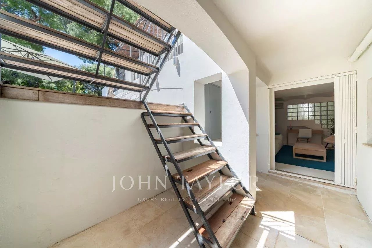 In a small private domaine, closed to the Garoupe beach, attractive and renovated property of approx. 400 sq.m, entirely air-conditioned, surrounded with beautiful grounds of 2 700 sq.m enhanced with waterfalls and fountains.