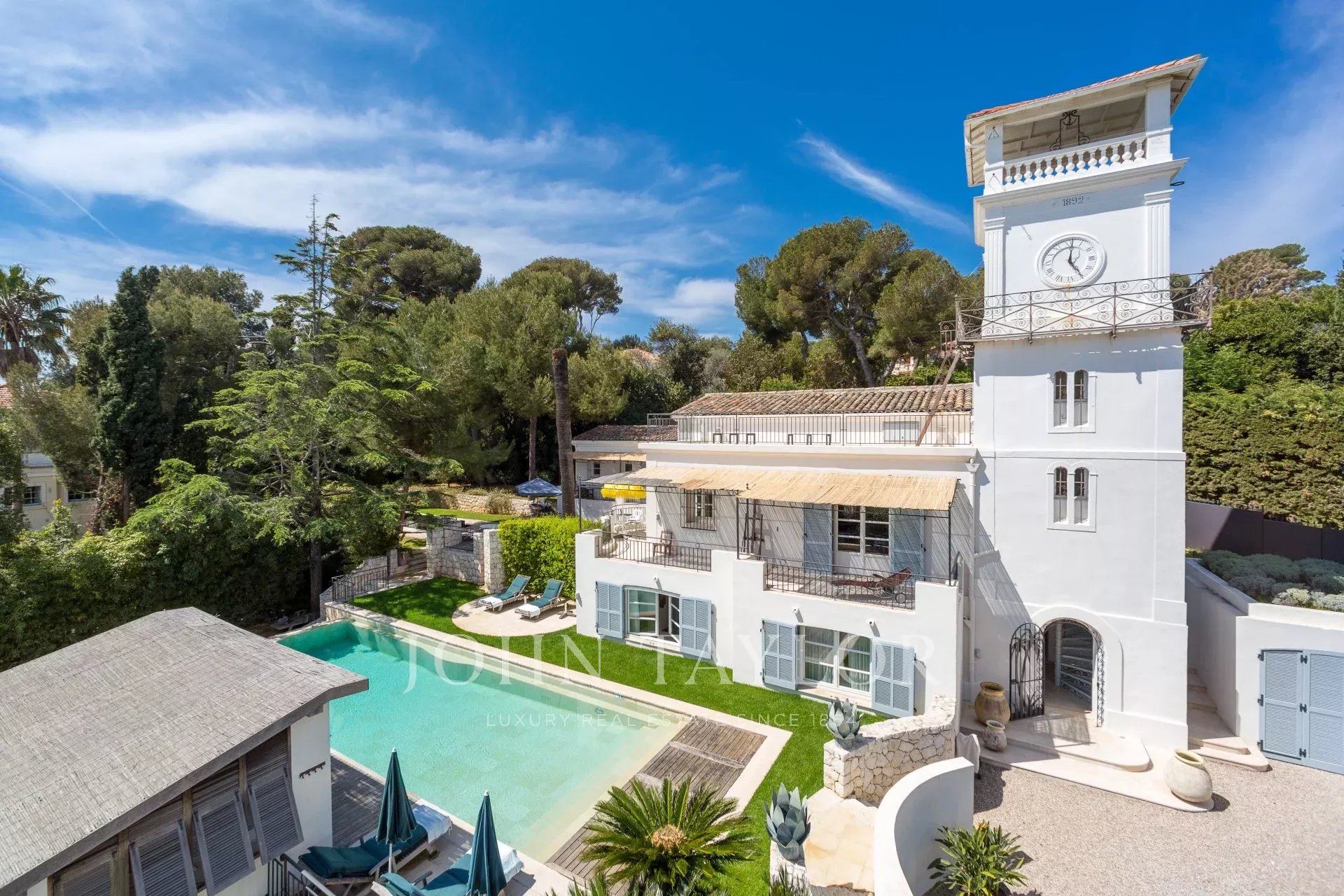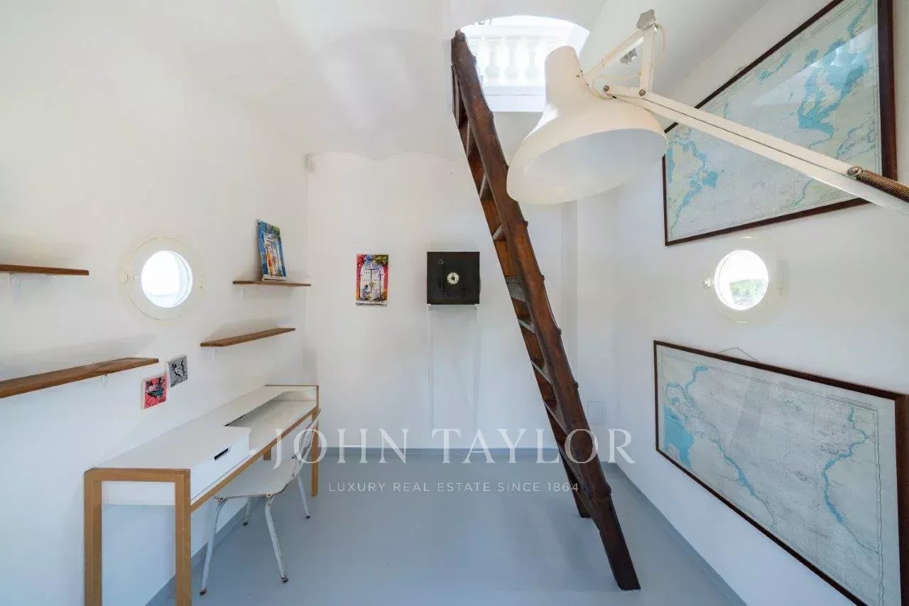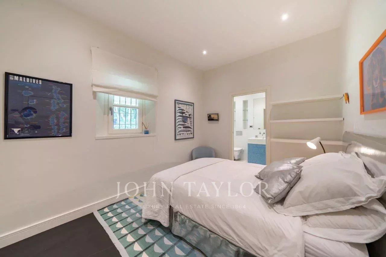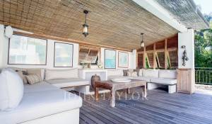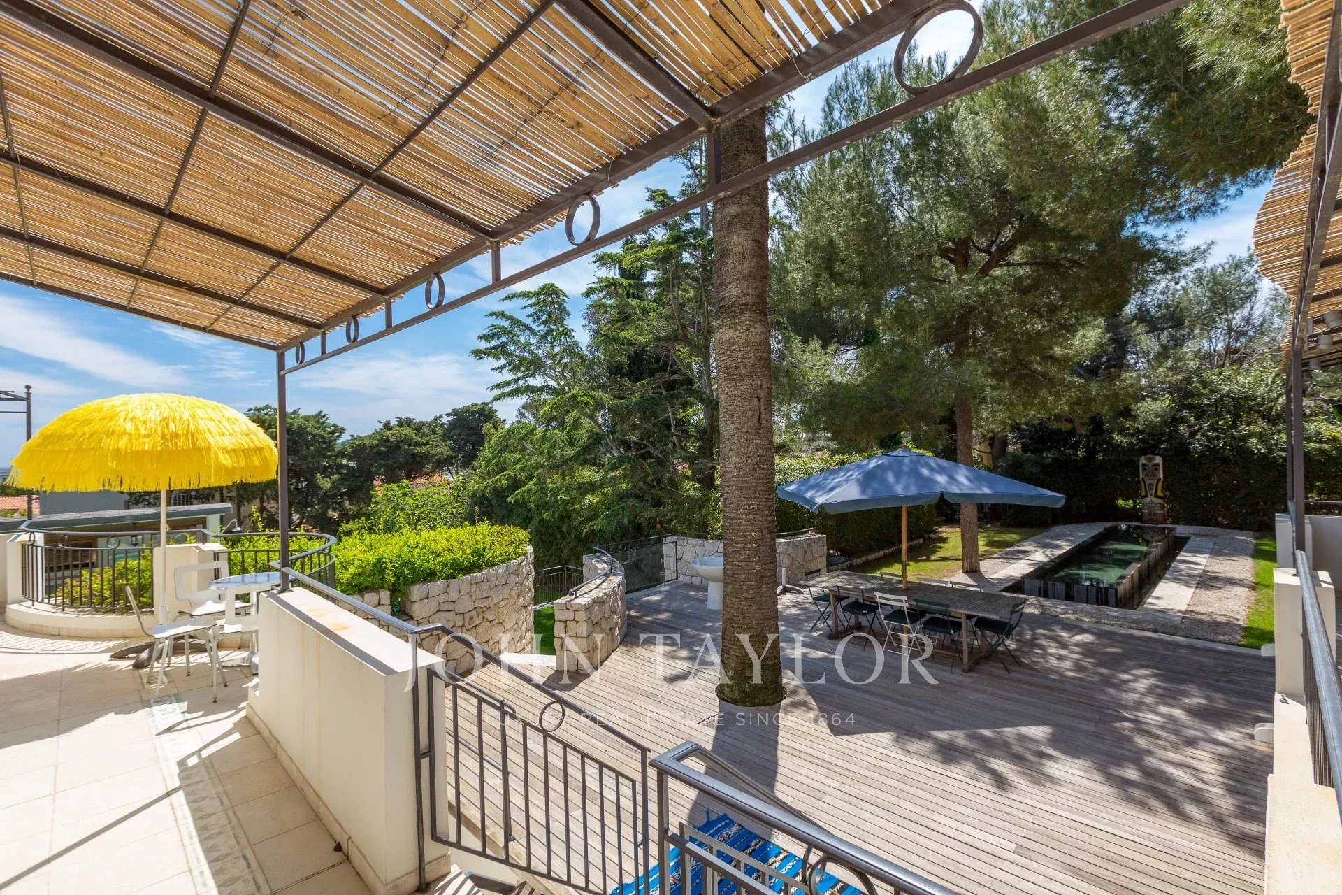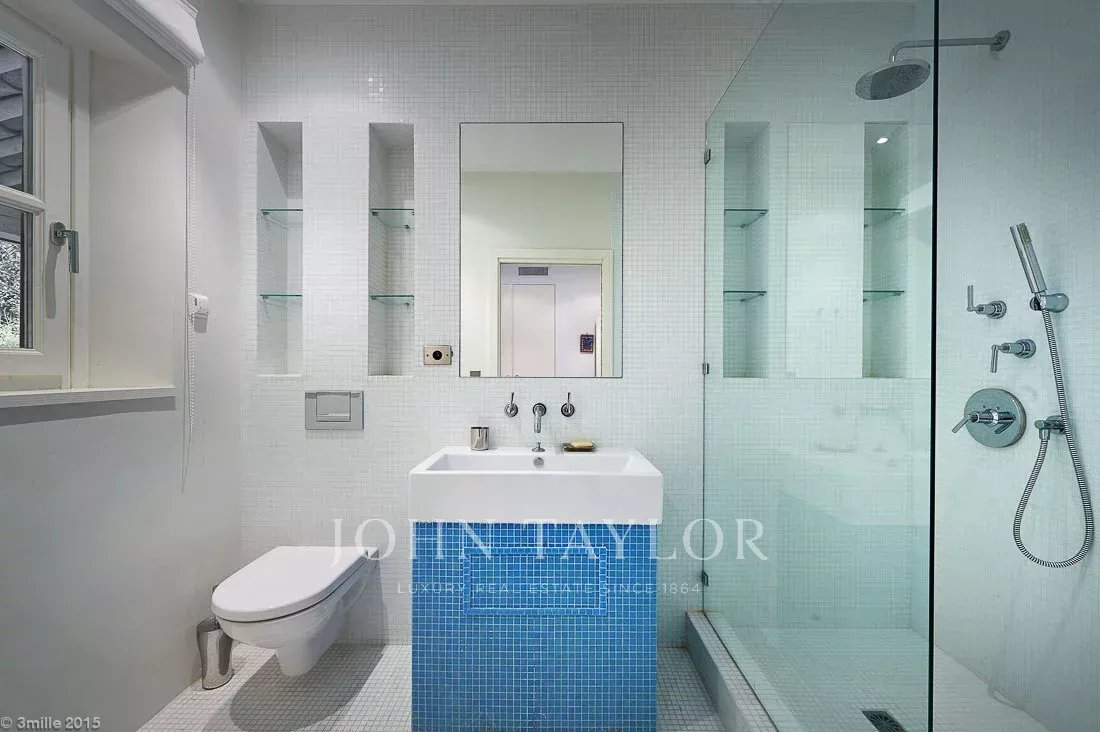 In a small private domaine, closed to the Garoupe beach, attractive and renovated property of approx. 400 sq.m, entirely air-conditioned, surrounded with beautiful grounds of 2 700 sq.m enhanced with waterfalls and fountains.