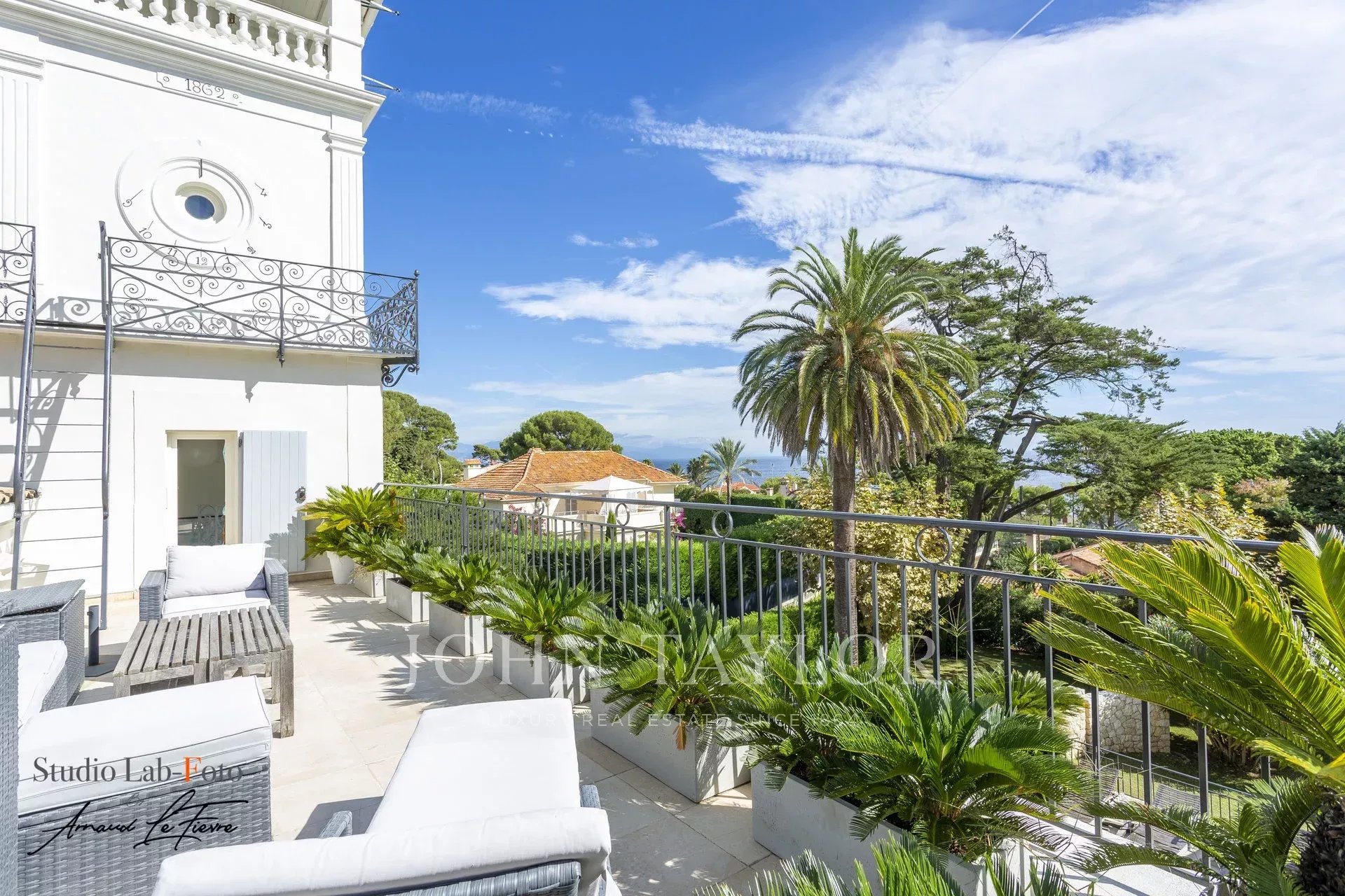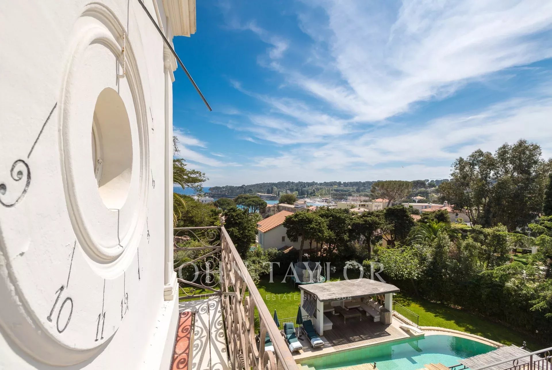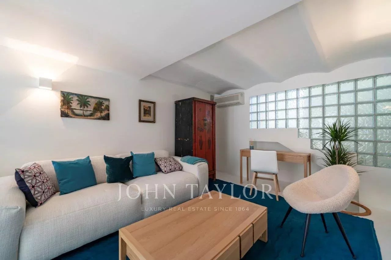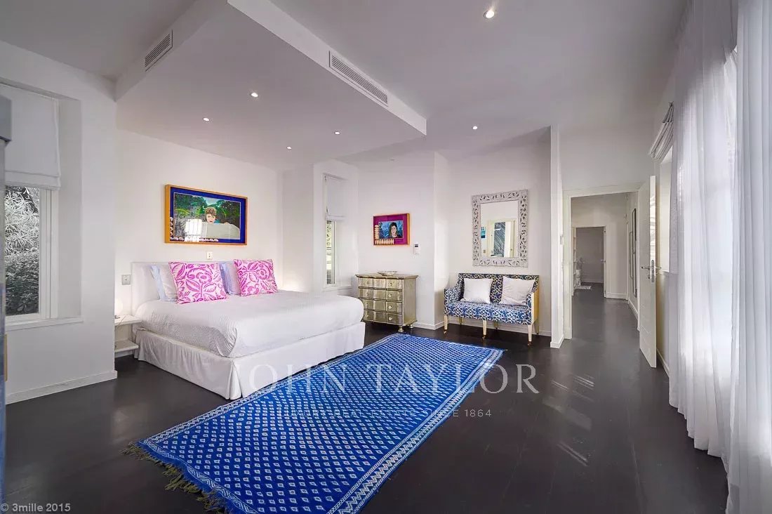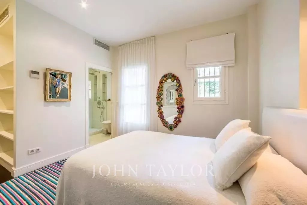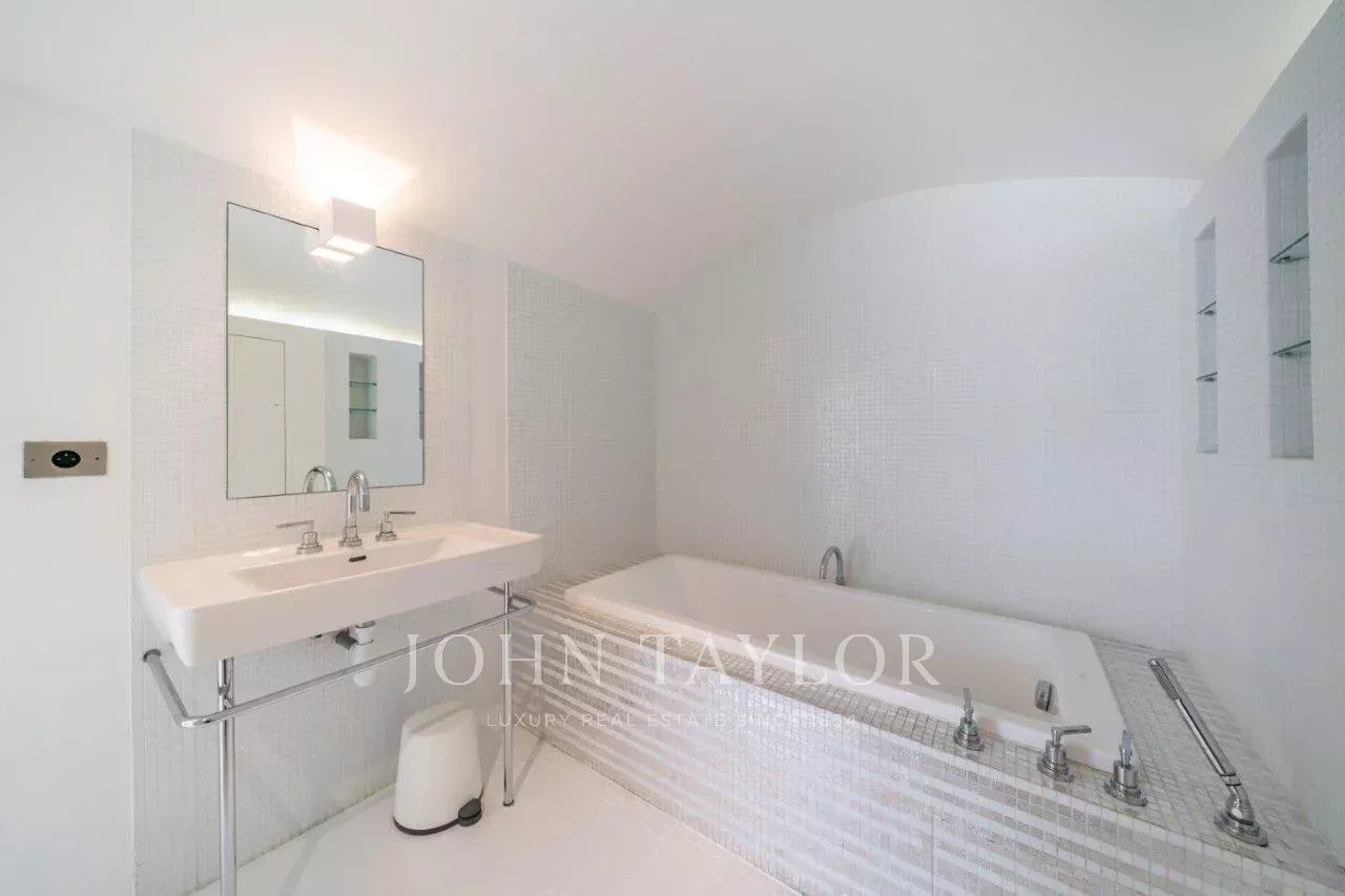 In a small private domaine, closed to the Garoupe beach, attractive and renovated property of approx. 400 sq.m, entirely air-conditioned, surrounded with beautiful grounds of 2 700 sq.m enhanced with waterfalls and fountains.