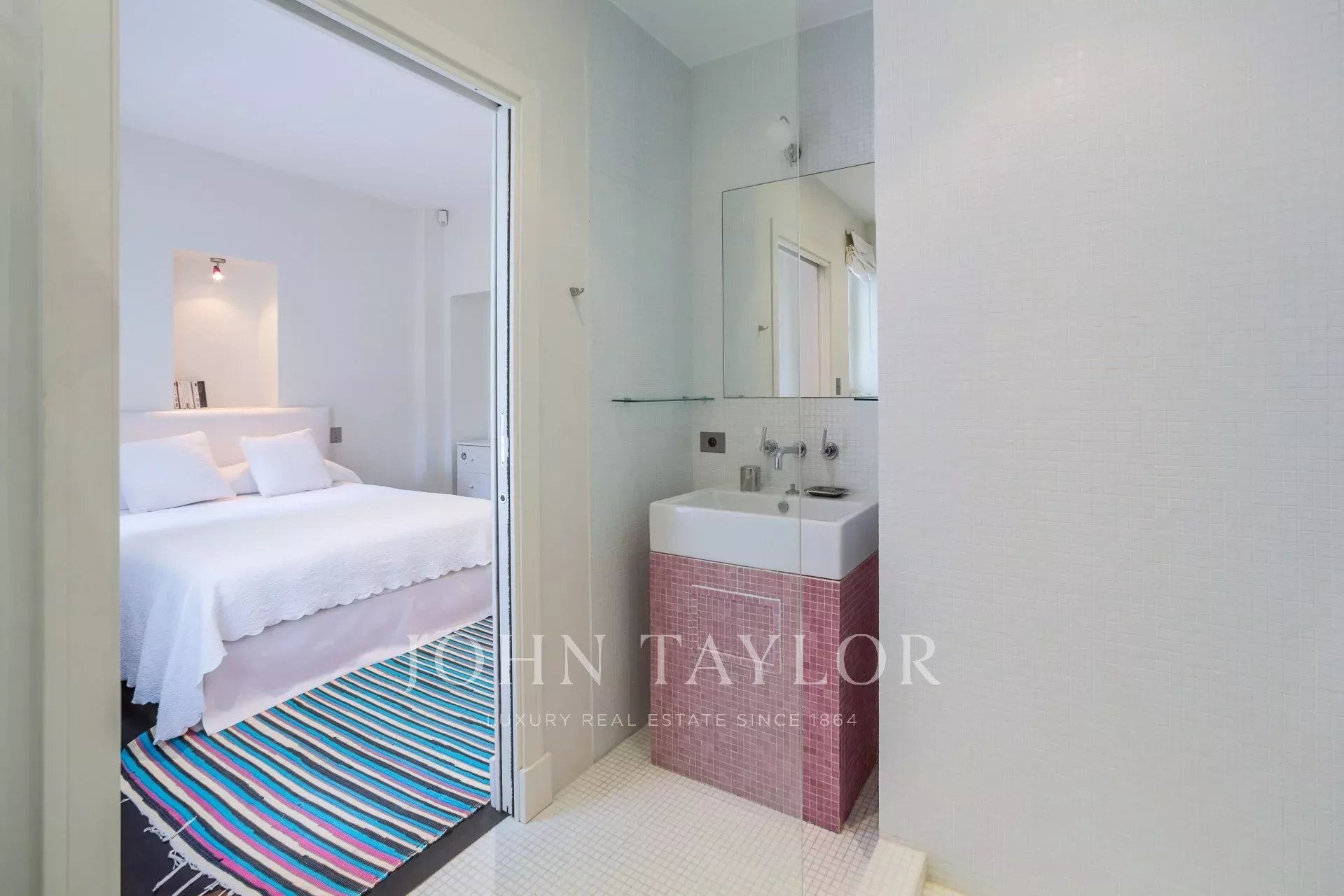 Bedroom with double bed opening onto the terrace - Bathroom ensuite Laundry