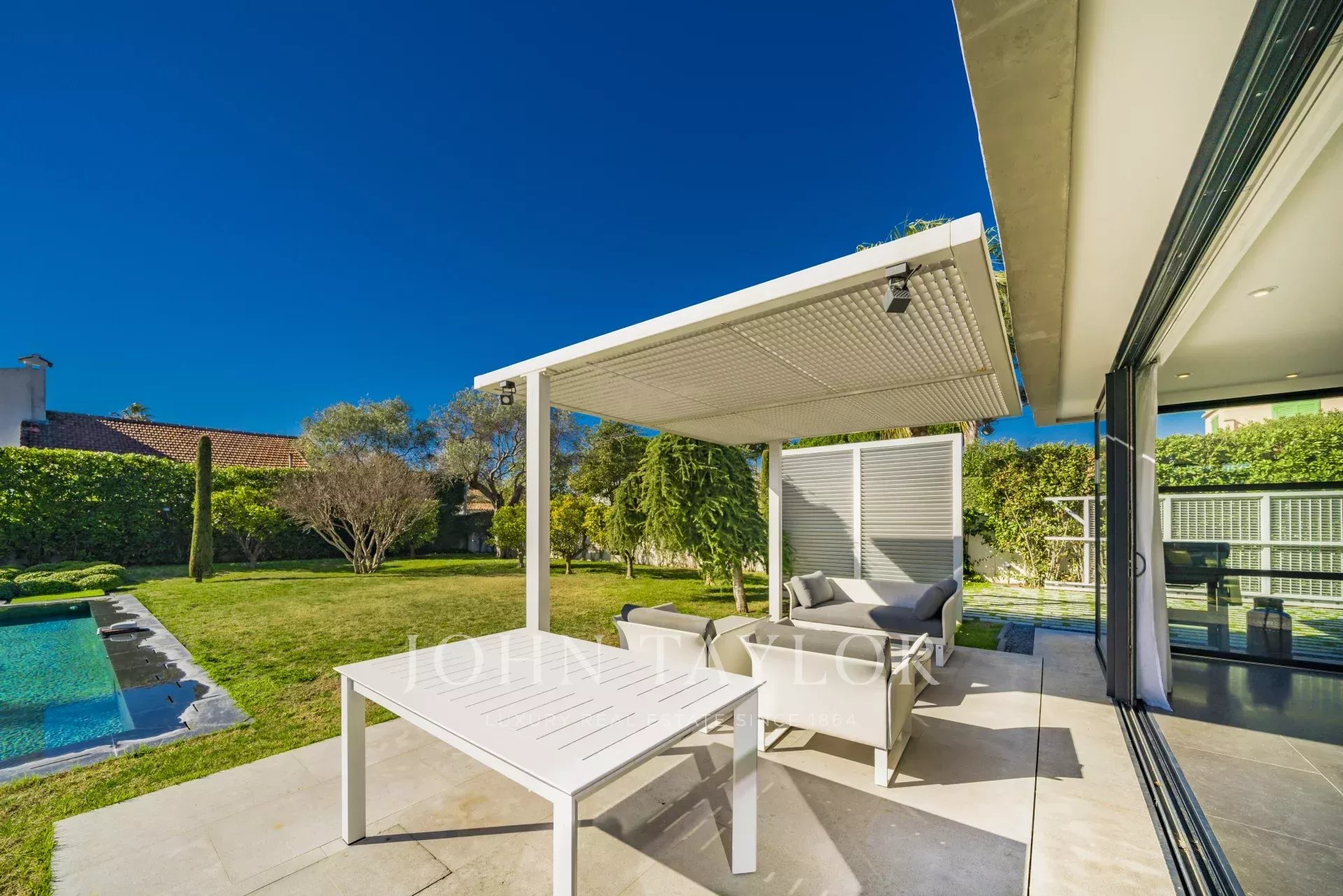 Just a short walk to the sea and water sports at Port Gallice plus world class dining at Hotel du Cap, Hotel Belle Rives and the night life of Juan les Pins are less than a 10 minute walk.