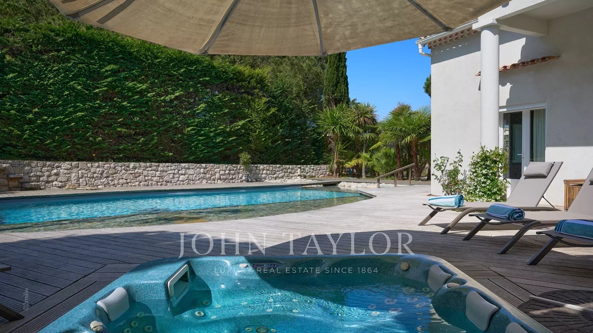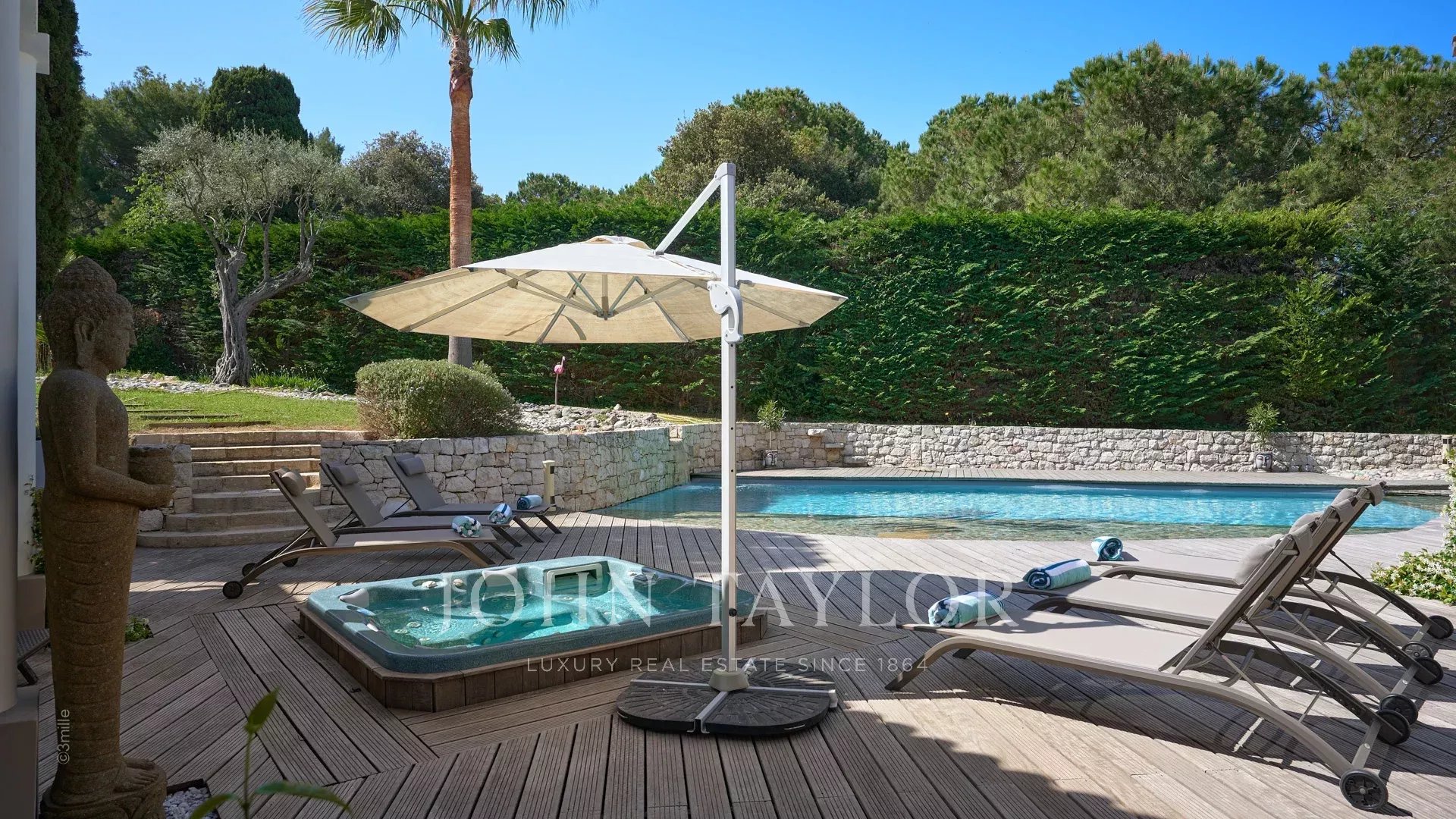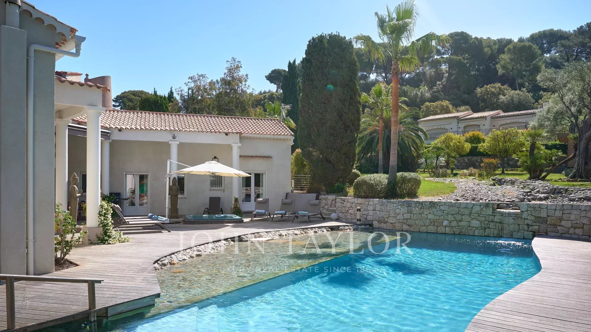 Attractive contemporary villa of 220 sq.m amoungst 2 000 sq.m of beautiful gardens, close to the harbour and beaches of La Salis and the city of Antibes.