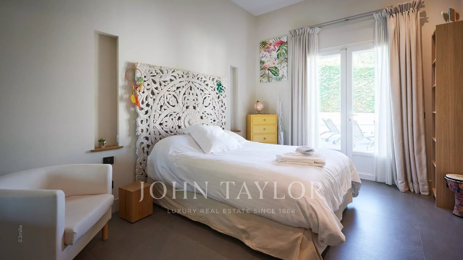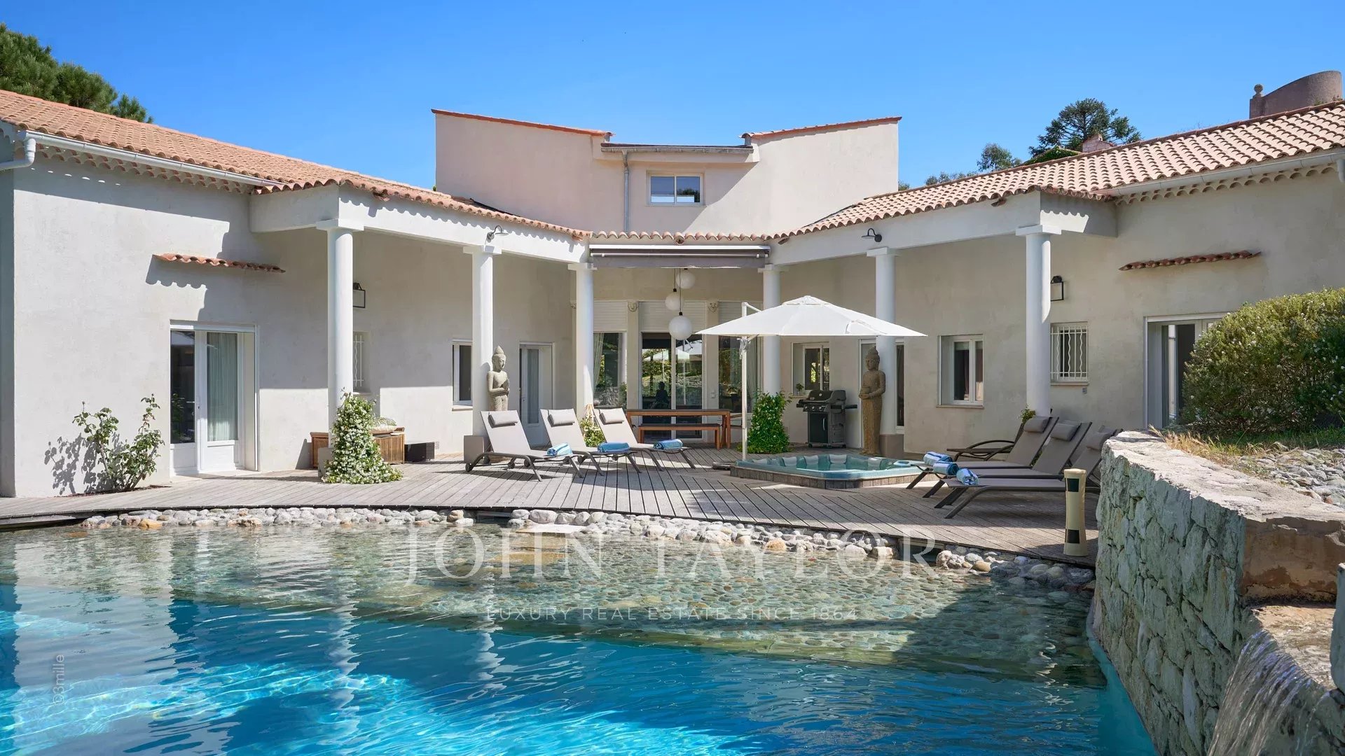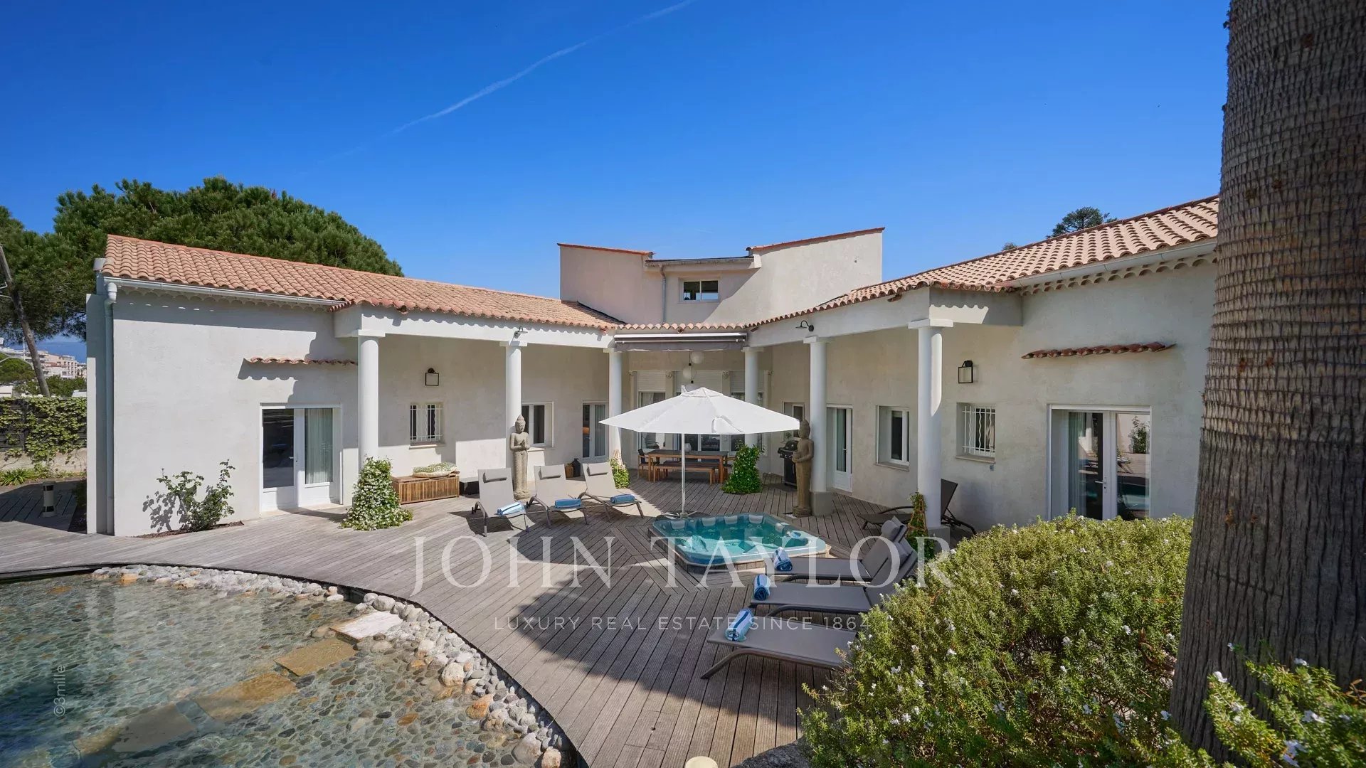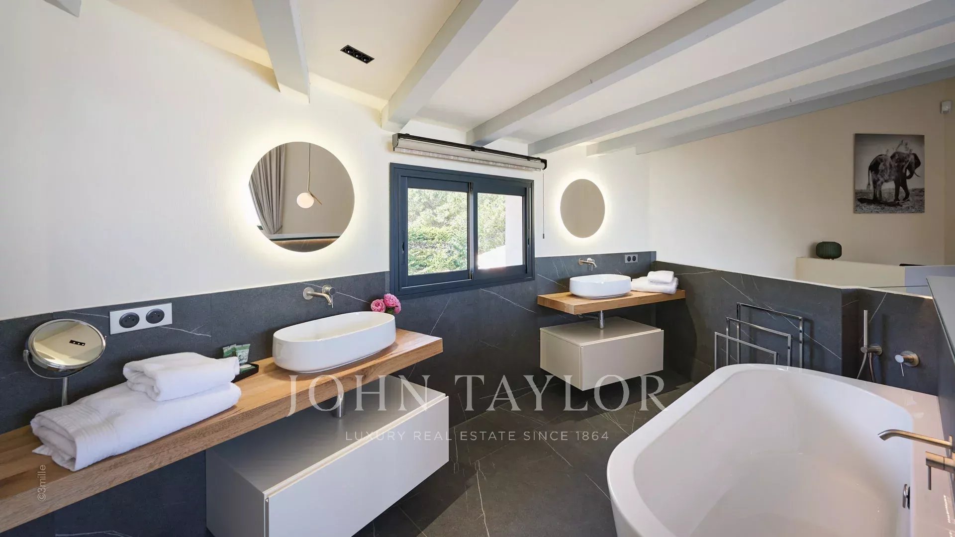 Attractive contemporary villa of 220 sq.m amoungst 2 000 sq.m of beautiful gardens, close to the harbour and beaches of La Salis and the city of Antibes.