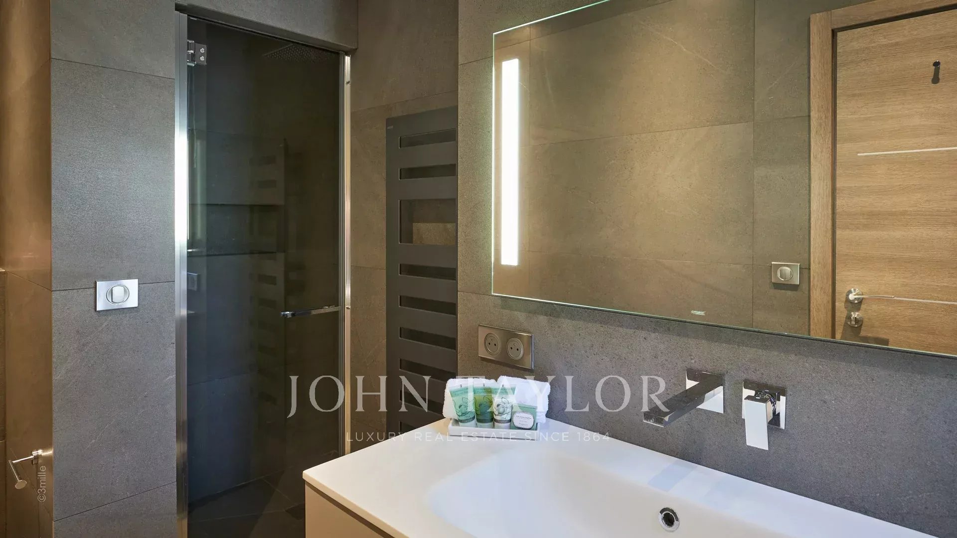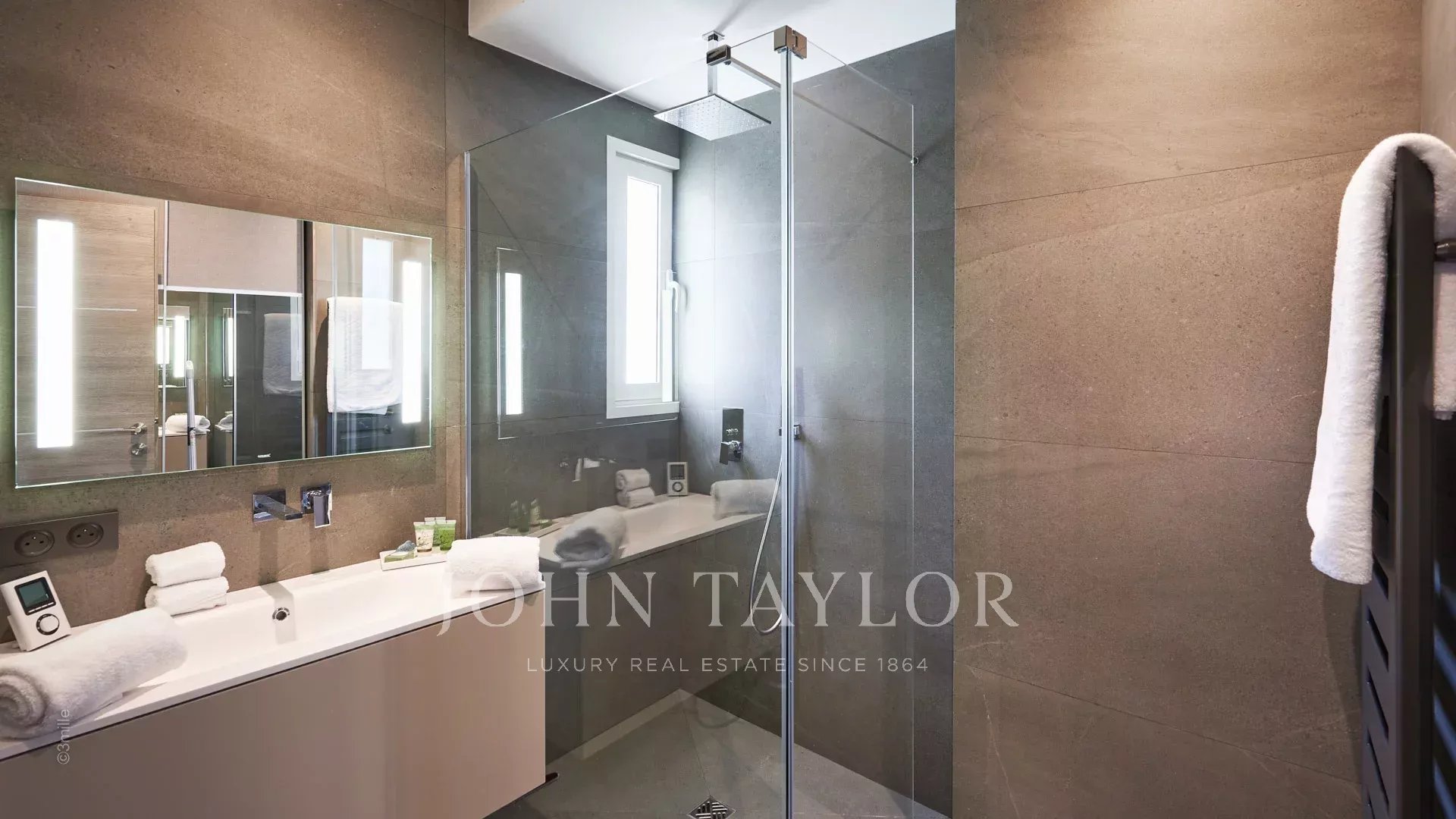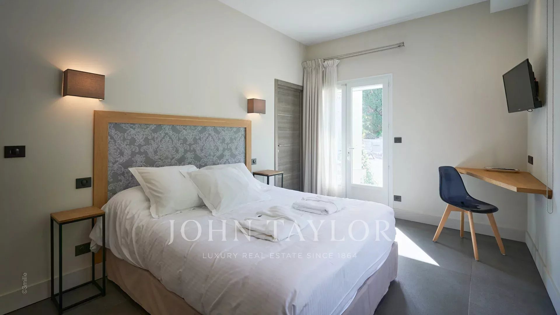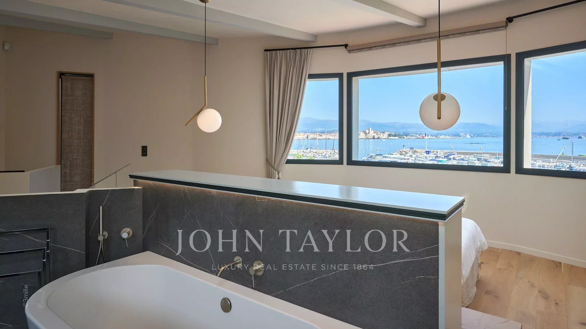 Master bedroom (double bed), view on "La Salis" and the old town of Antibes - Open bathroom /WC