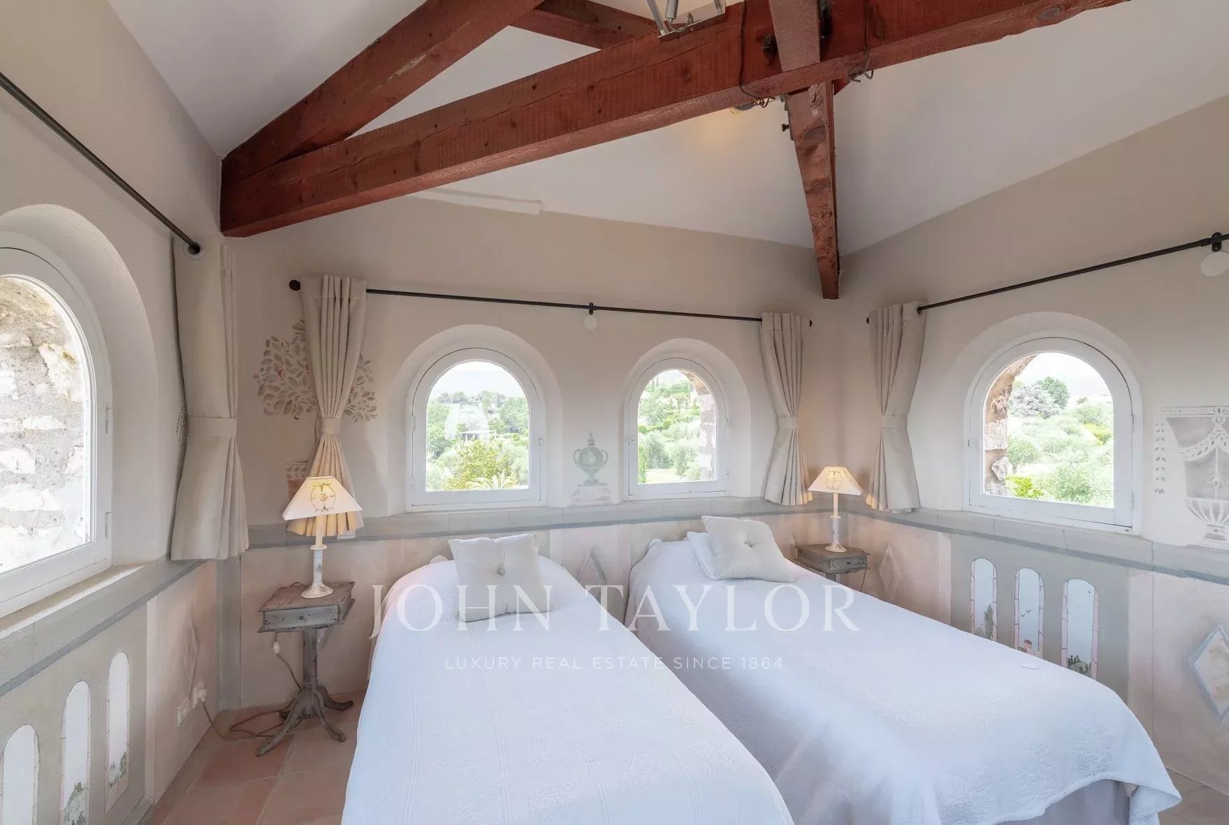 In a dominant position with breathtaking views of the sea and surrounding villages, this 18th-century former monastery, rented out by Coluche in the 70s, has been completely renovated and offers 6 luxurious air-conditioned bedrooms and 6 bathrooms for up to 12 guests.