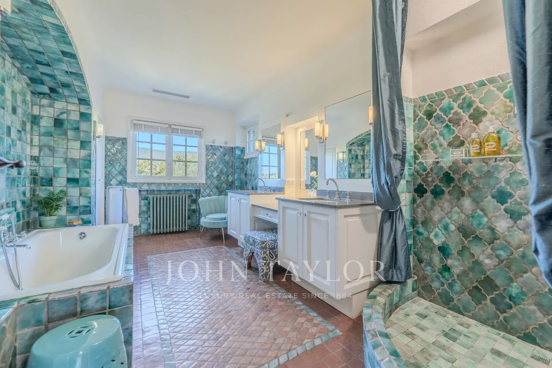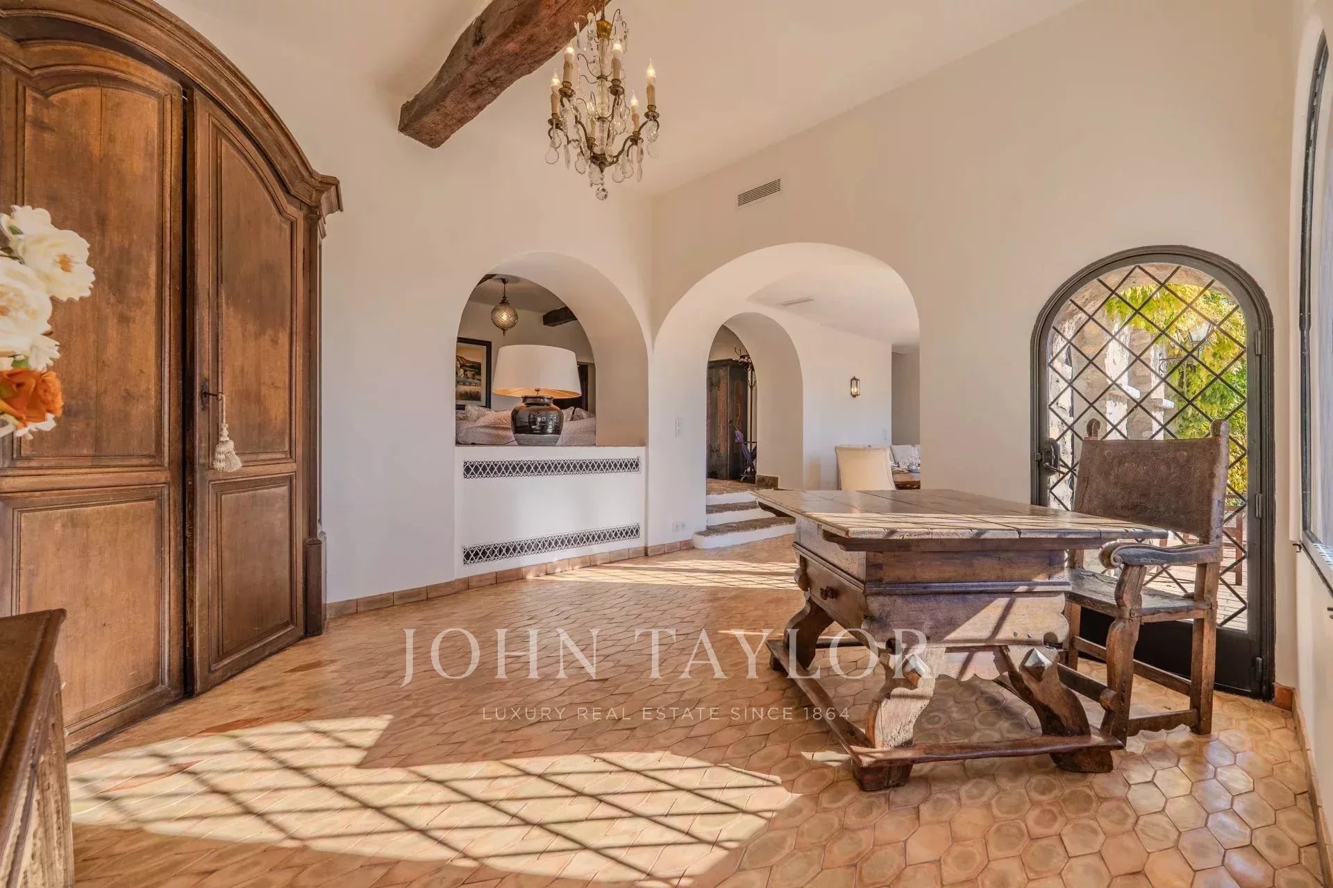 In a dominant position with breathtaking views of the sea and surrounding villages, this 18th-century former monastery, rented out by Coluche in the 70s, has been completely renovated and offers 6 luxurious air-conditioned bedrooms and 6 bathrooms for up to 12 guests.
