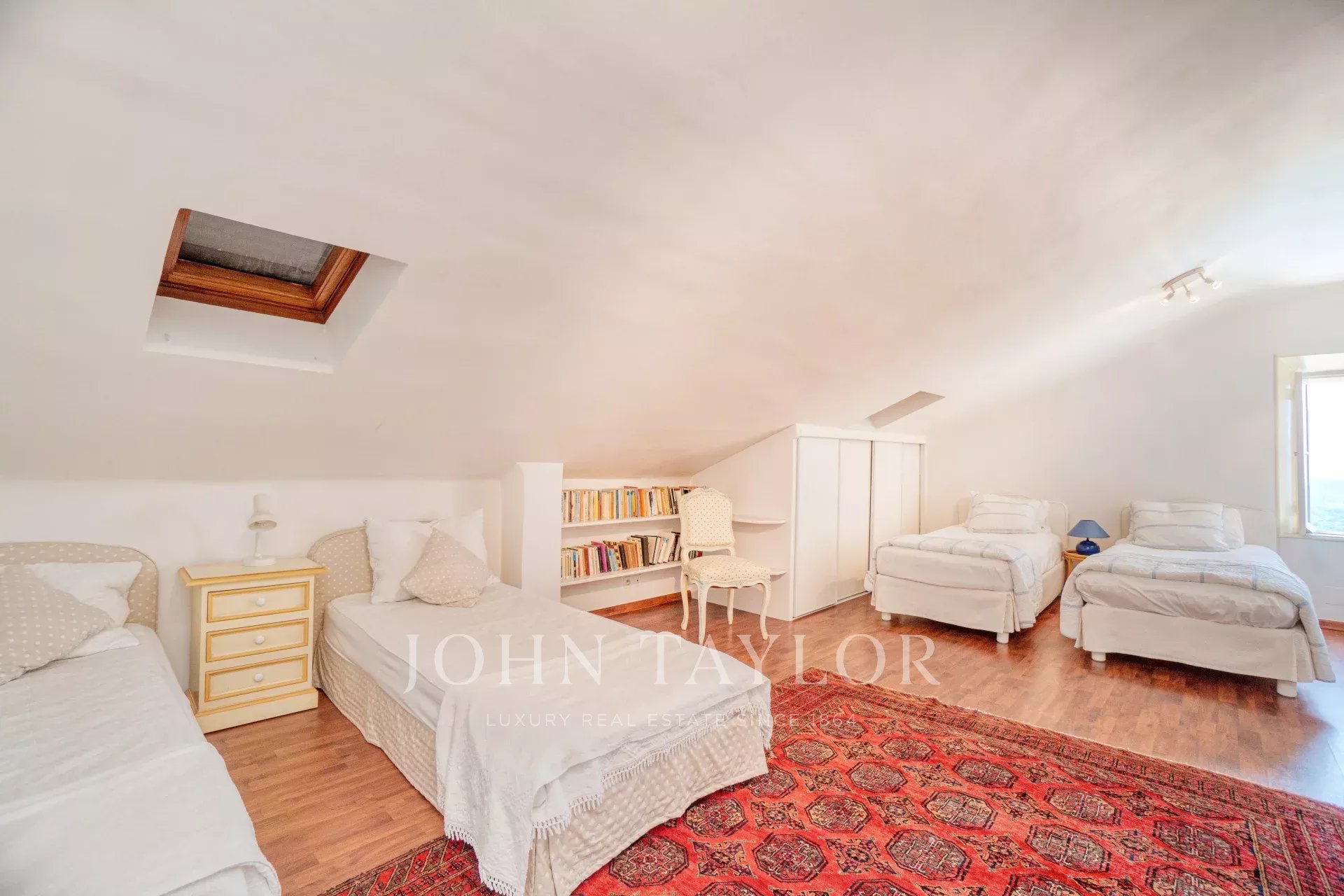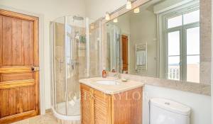On the 1st floor, an air-conditioned bedroom with 180cm bed, bathroom/WC, dressing room and terrace with panoramic views, a bedroom with 160cm bed, shower room/WC and terrace access, and an air-conditioned bedroom with 180cm bed and bathroom/WC.