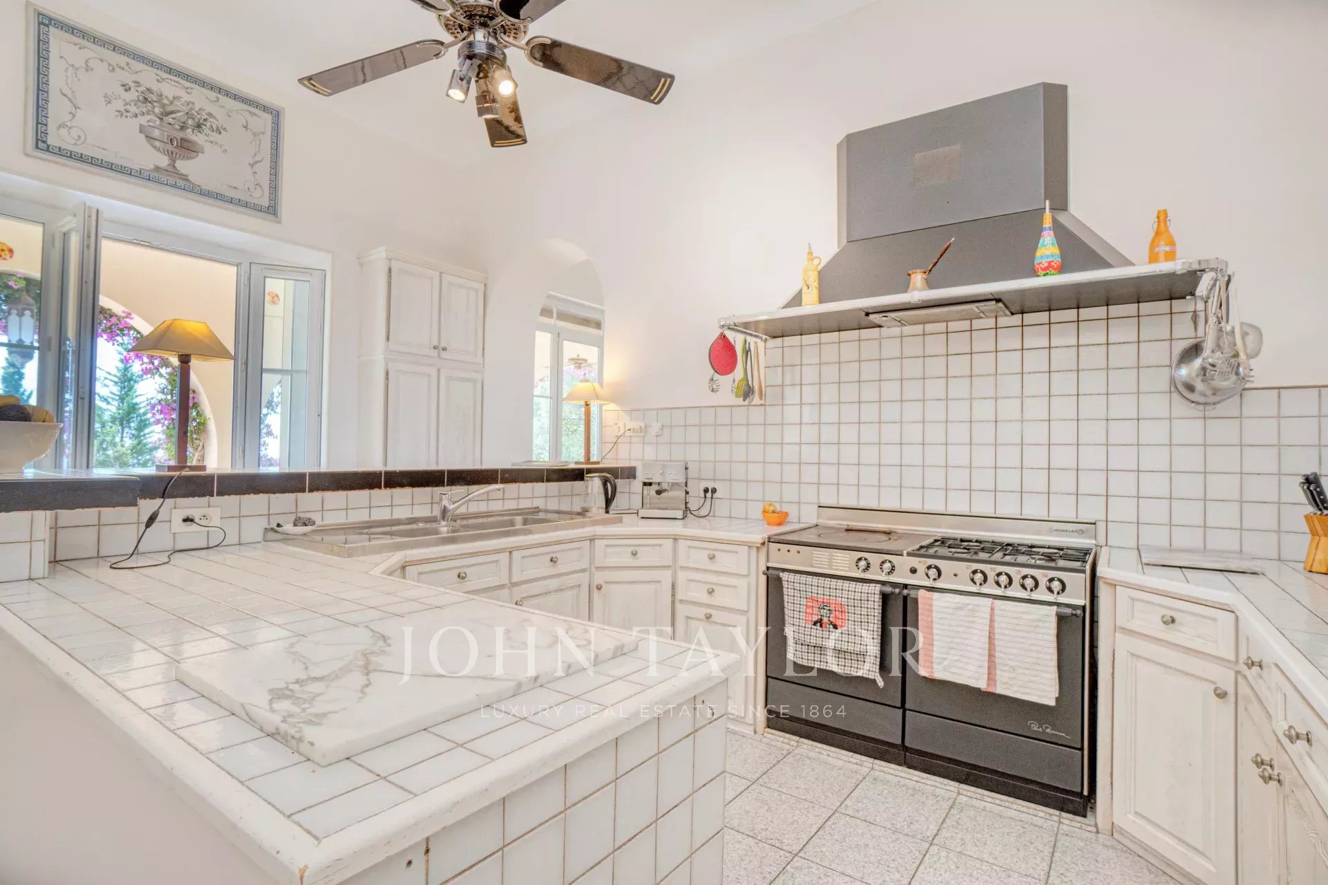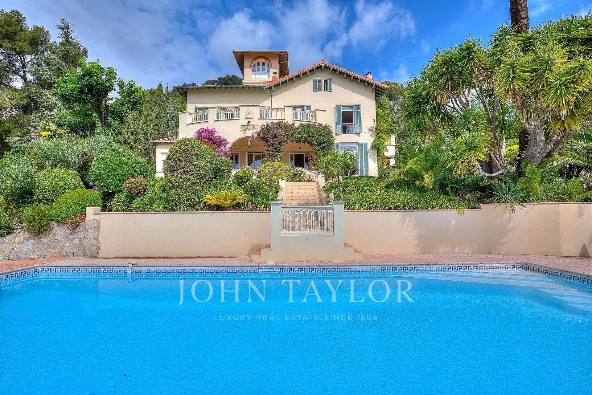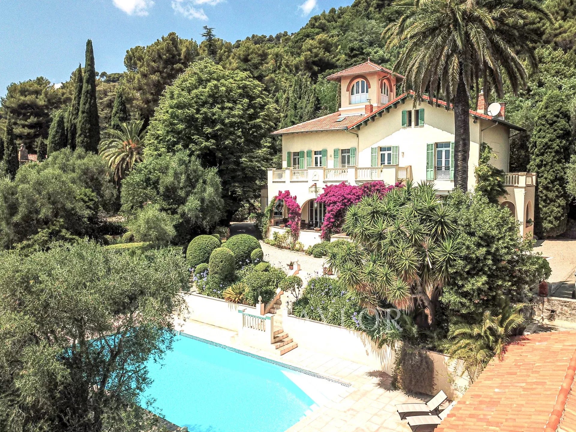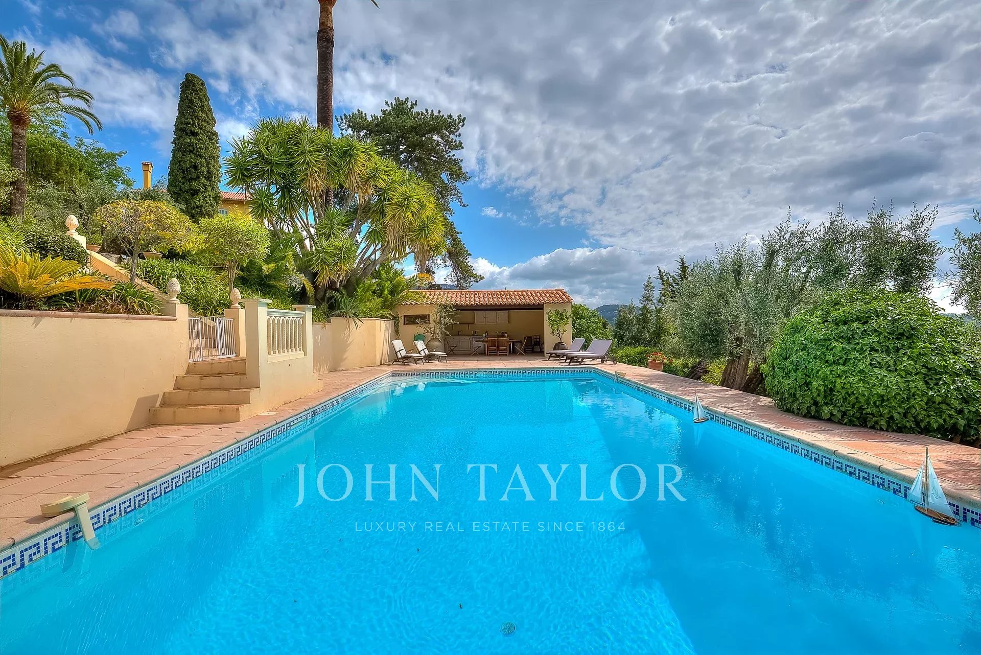 The villa boasts 3,000 m² of grounds with Mediterranean garden, pool house, swimming pool, outdoor bathroom and summer kitchen.