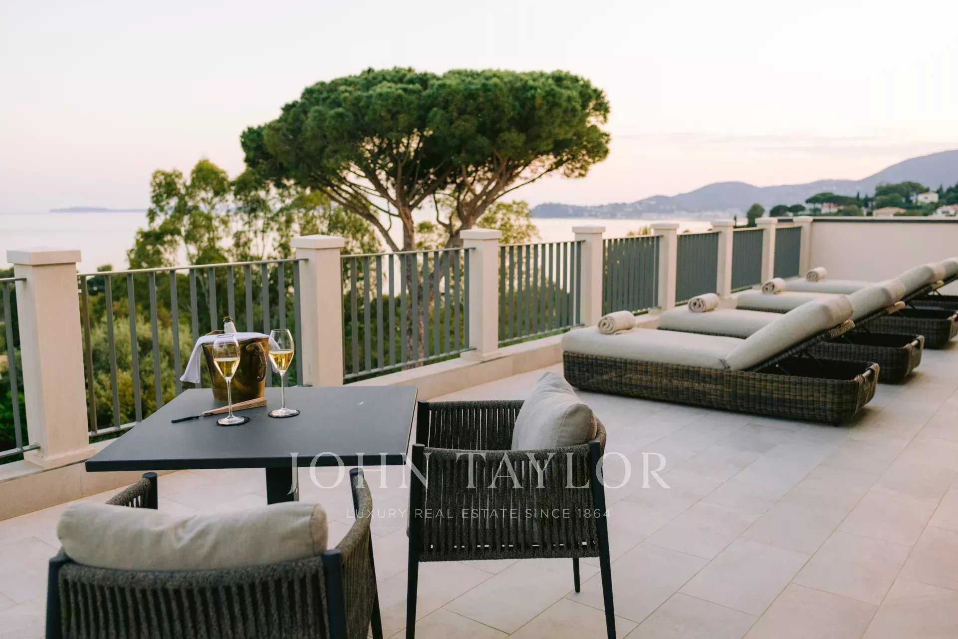 This exceptional villa, located in a prestigious private estate, offers an unparalleled stay experience with its 390 sq.m of living space and breathtaking sea views. Comprising 5 refined bedrooms, each with its own bathroom, it comfortably accommodates up to 10 people, making it ideal for family or group stays.