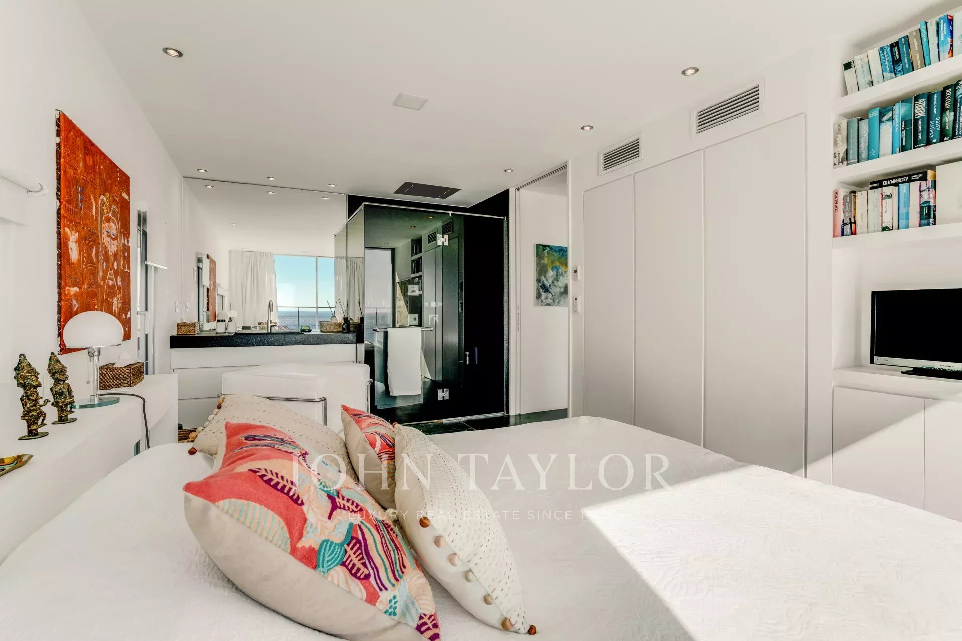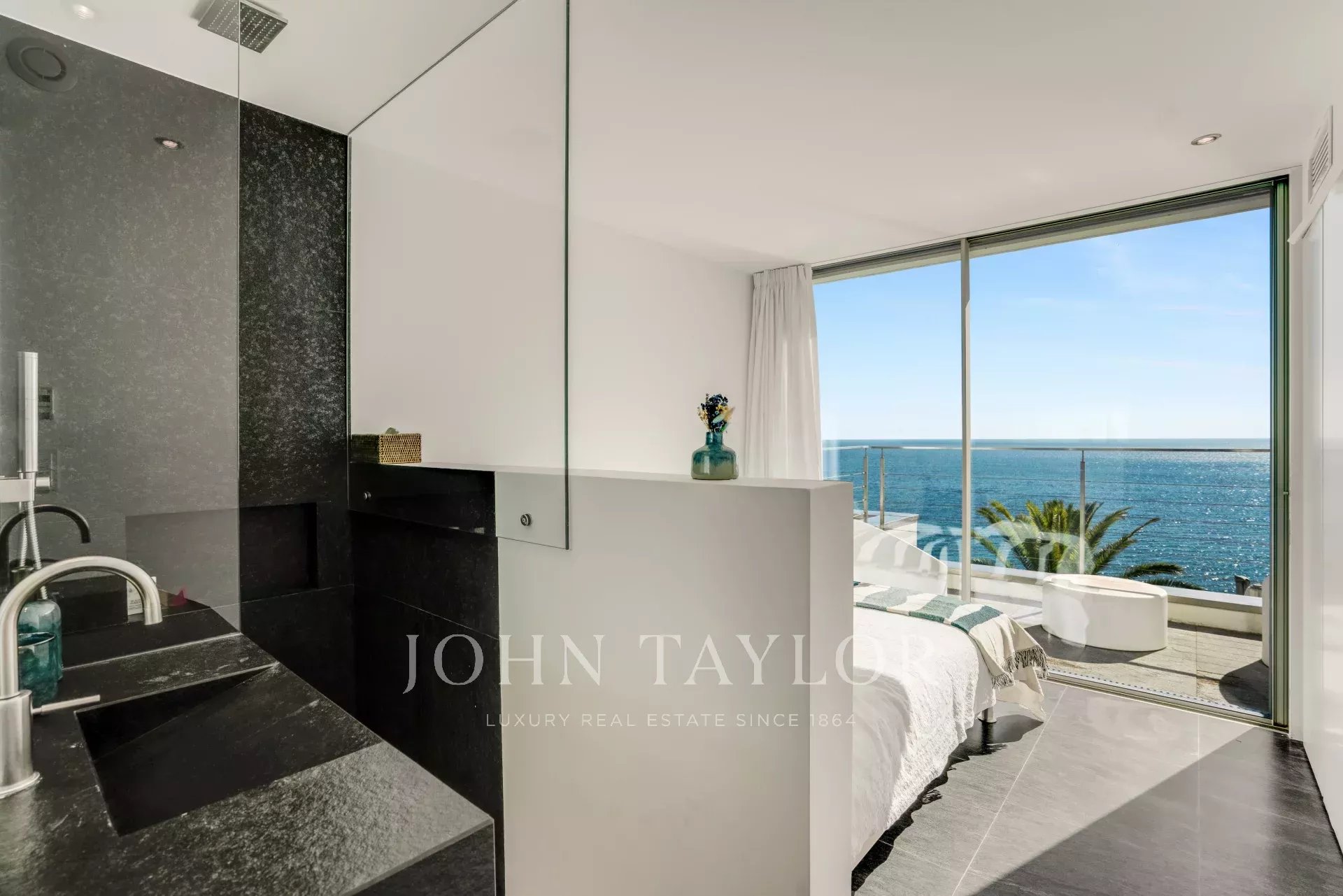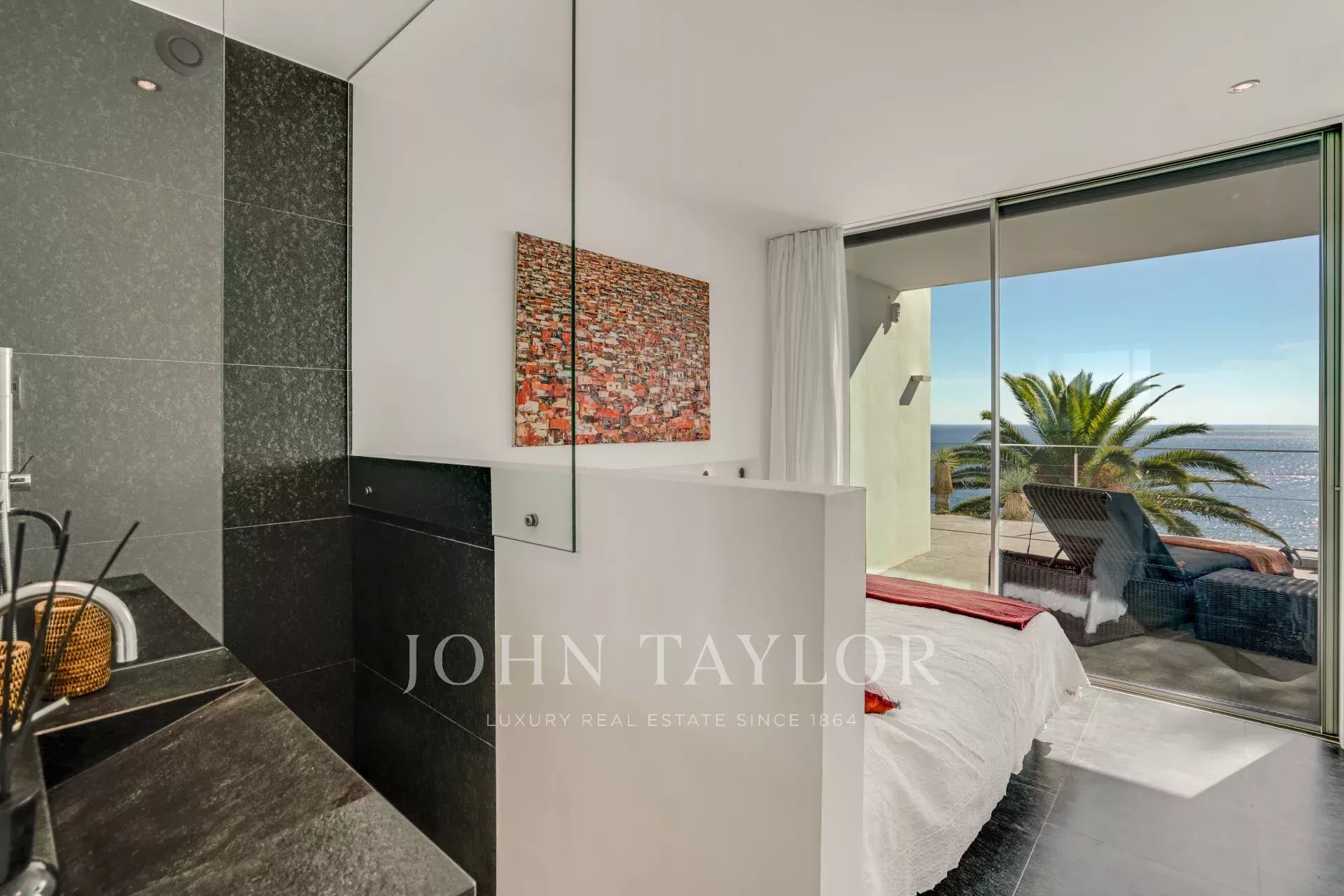 A master bedroom with full bathroom, as well as a bedroom with shower room, both opening directly onto the terrace.