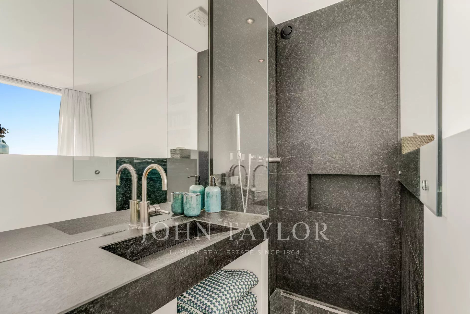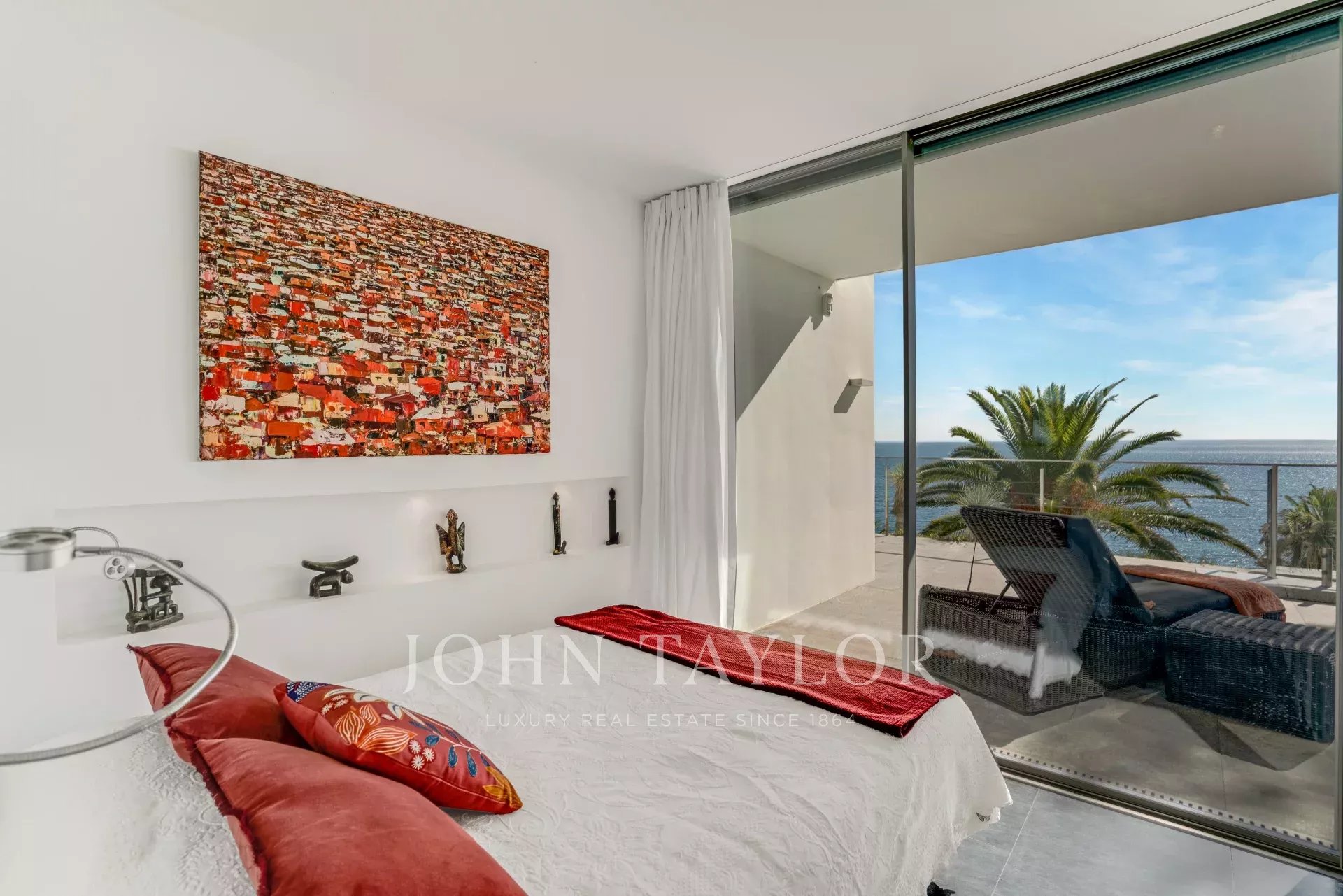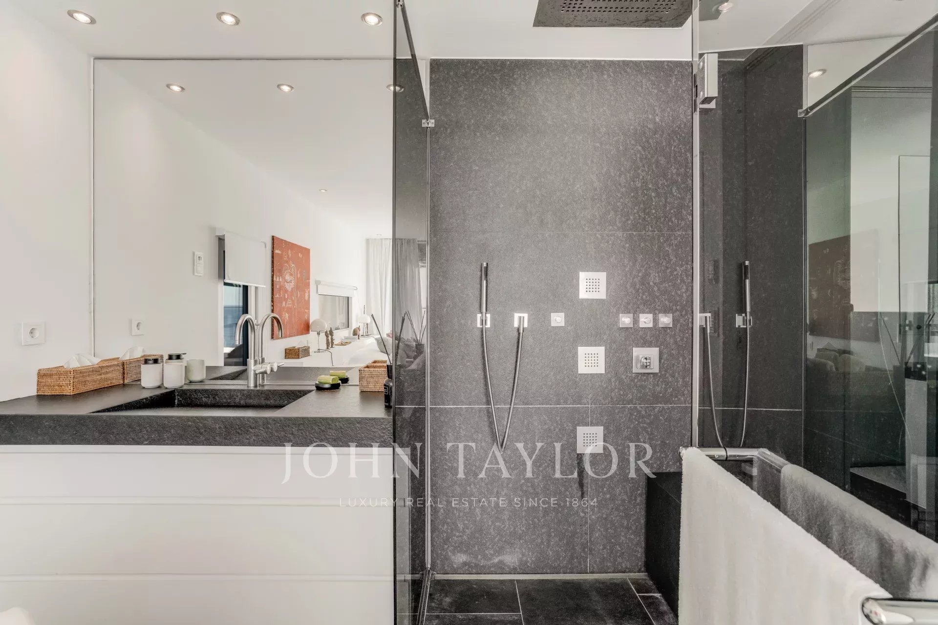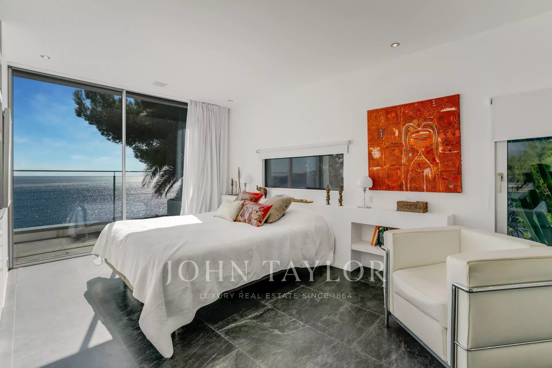 A master bedroom with full bathroom, as well as a bedroom with shower room, both opening directly onto the terrace.