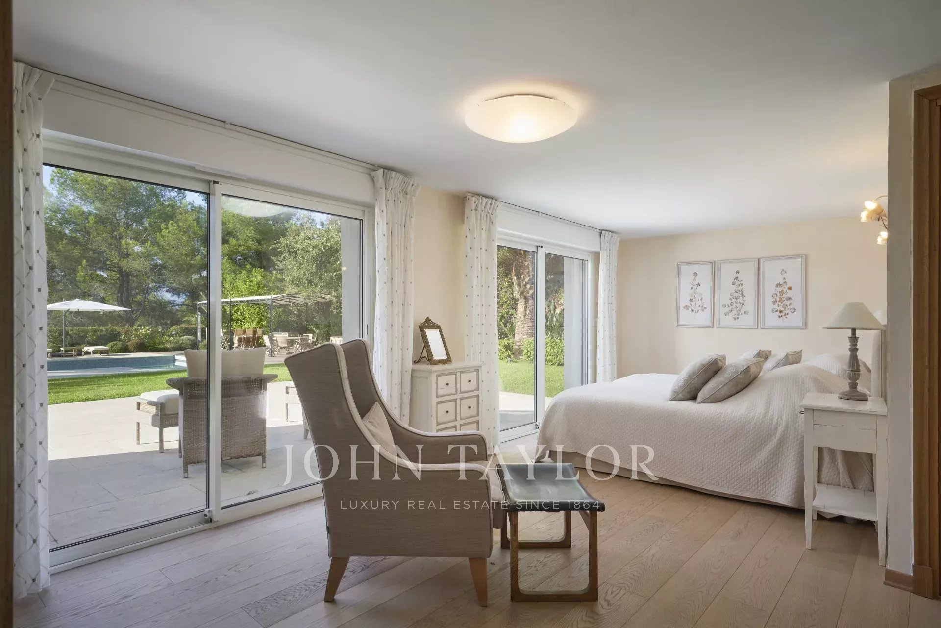 In a private, secure estate, spacious, fully renovated property with unobstructed mountain views, very close to the village of Mougins, set in landscaped grounds of approx. 3,900 m² with heated swimming pool (14 x 5 meters) with safety cover.