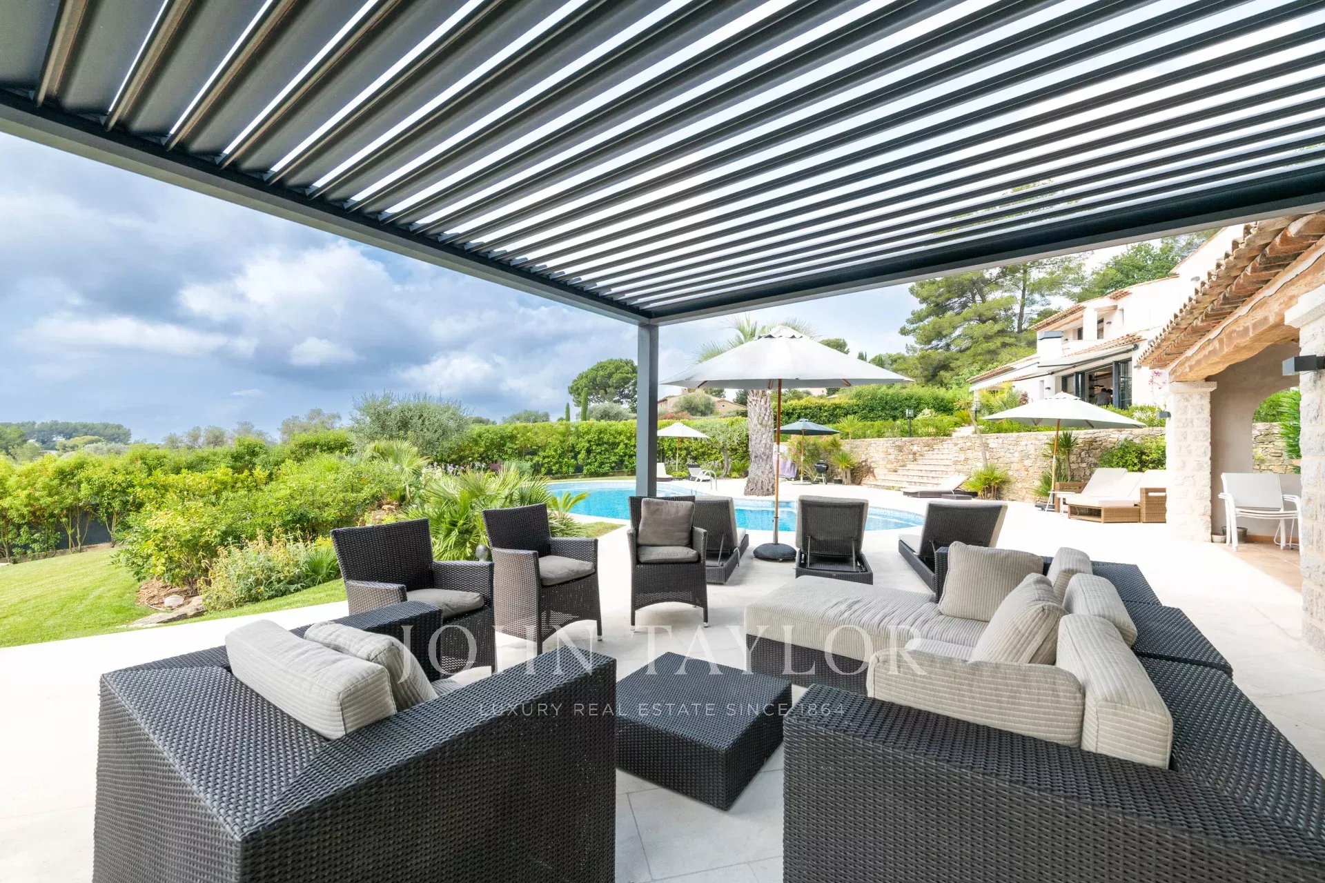 Nestled in a peaceful residential area of Mougins, just minutes from shops and the village center, this sumptuous air-conditioned villa offers the perfect retreat for up to 11 guests.