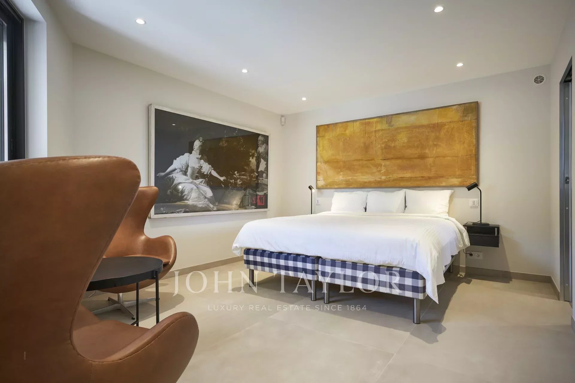 On the 1st floor is an en suite bedroom (n°5) with terrace access and bathroom, and a second en suite bedroom (n°6) with dressing room and bathroom.