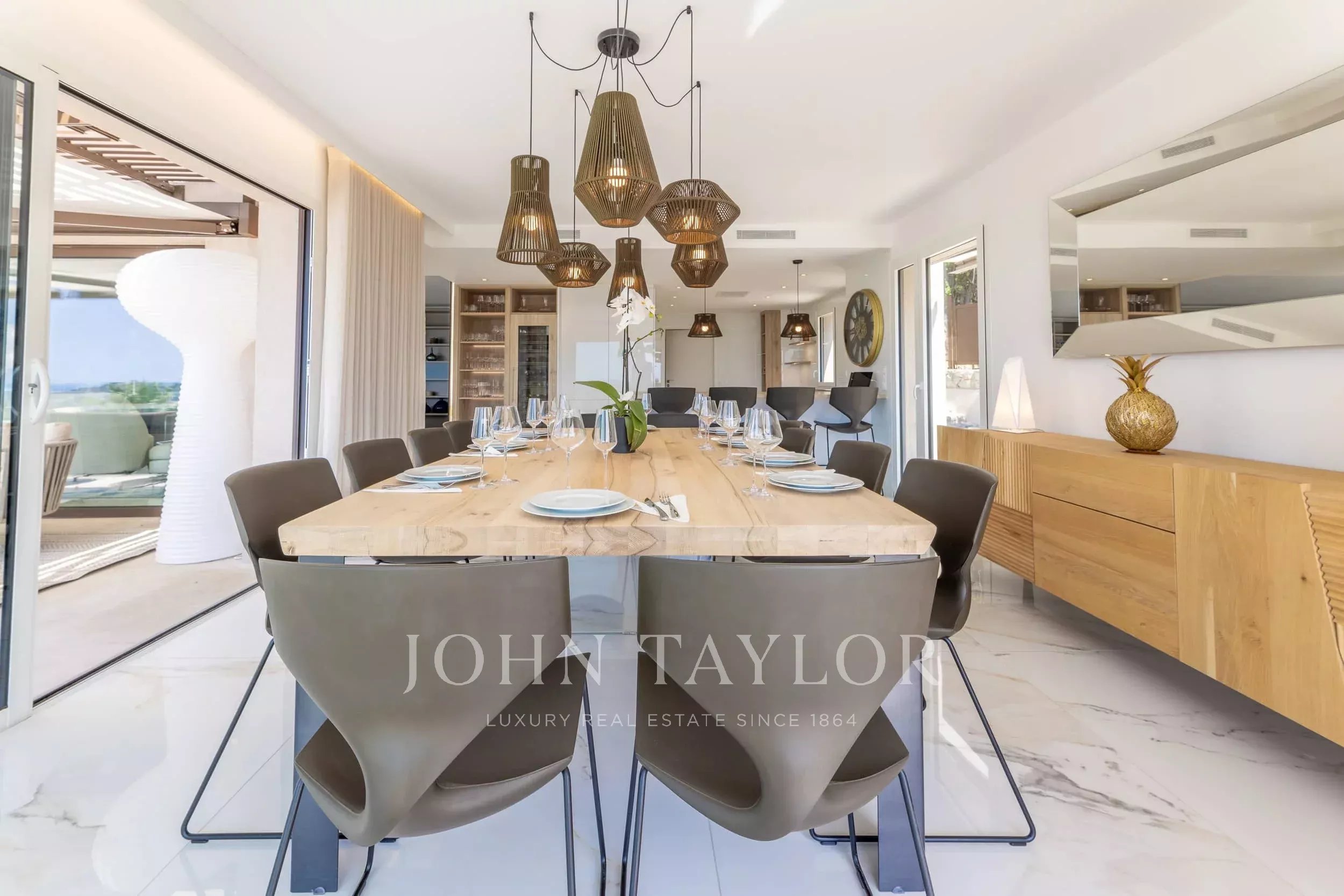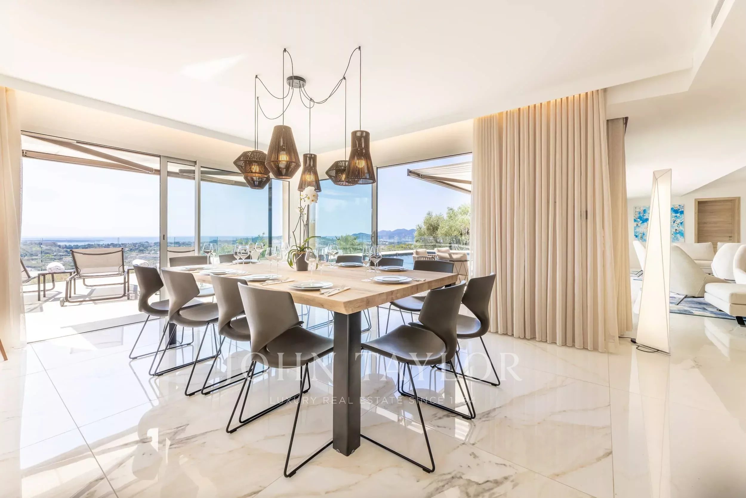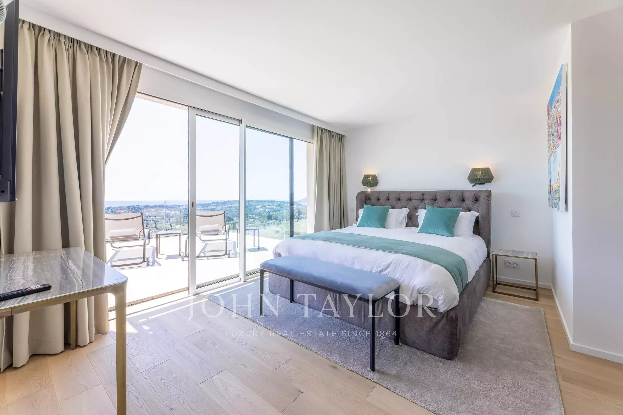 Located in one of the most sought-after neighborhoods of Mougins, just 500 meters from the famous historic village, this magnificent fully renovated contemporary villa offers exceptional panoramic sea views and high-end amenities.