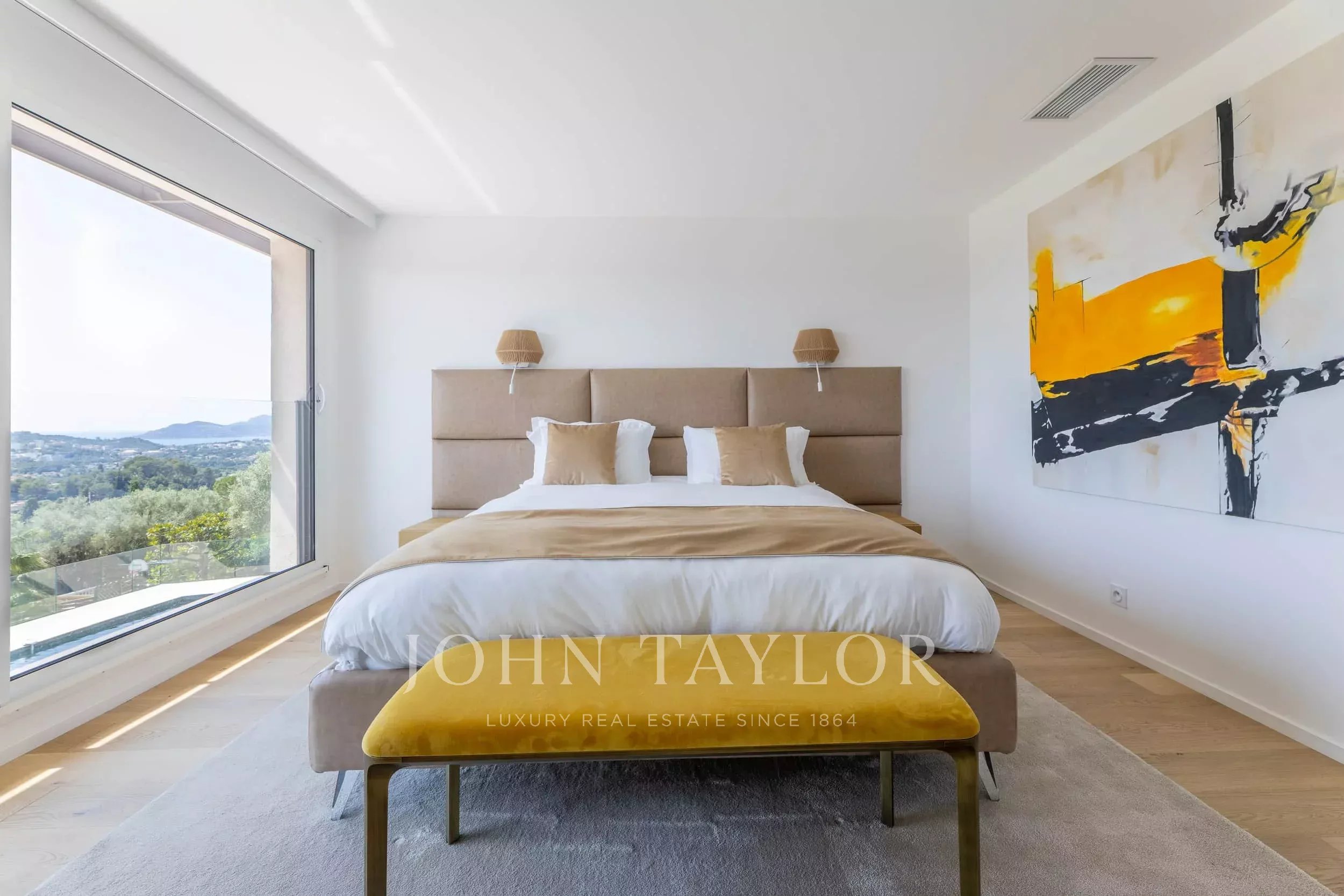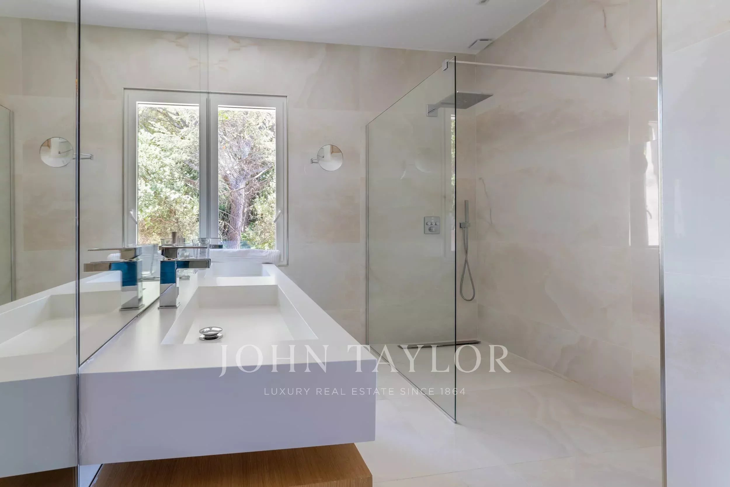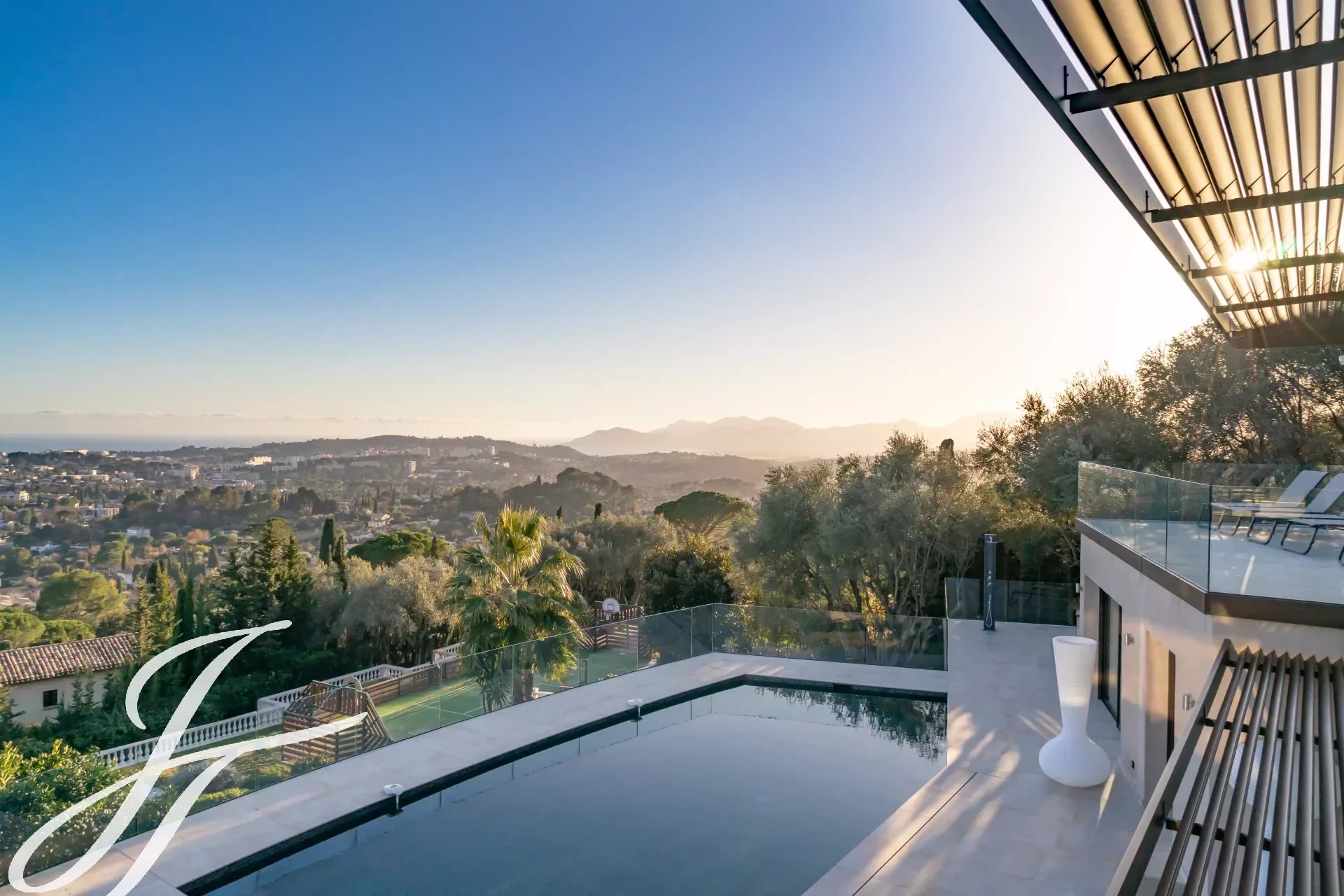 Located in one of the most sought-after neighborhoods of Mougins, just 500 meters from the famous historic village, this magnificent fully renovated contemporary villa offers exceptional panoramic sea views and high-end amenities.