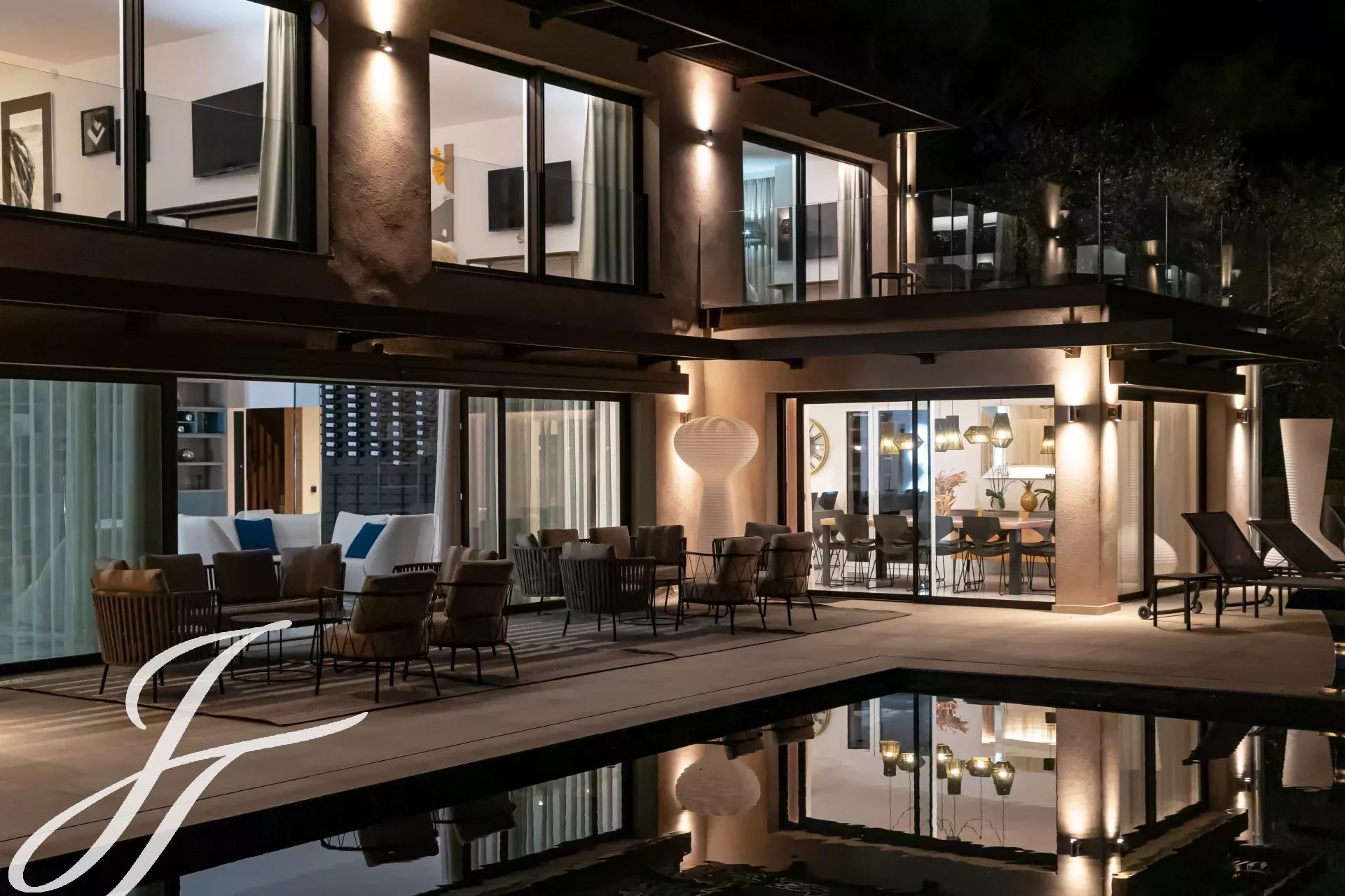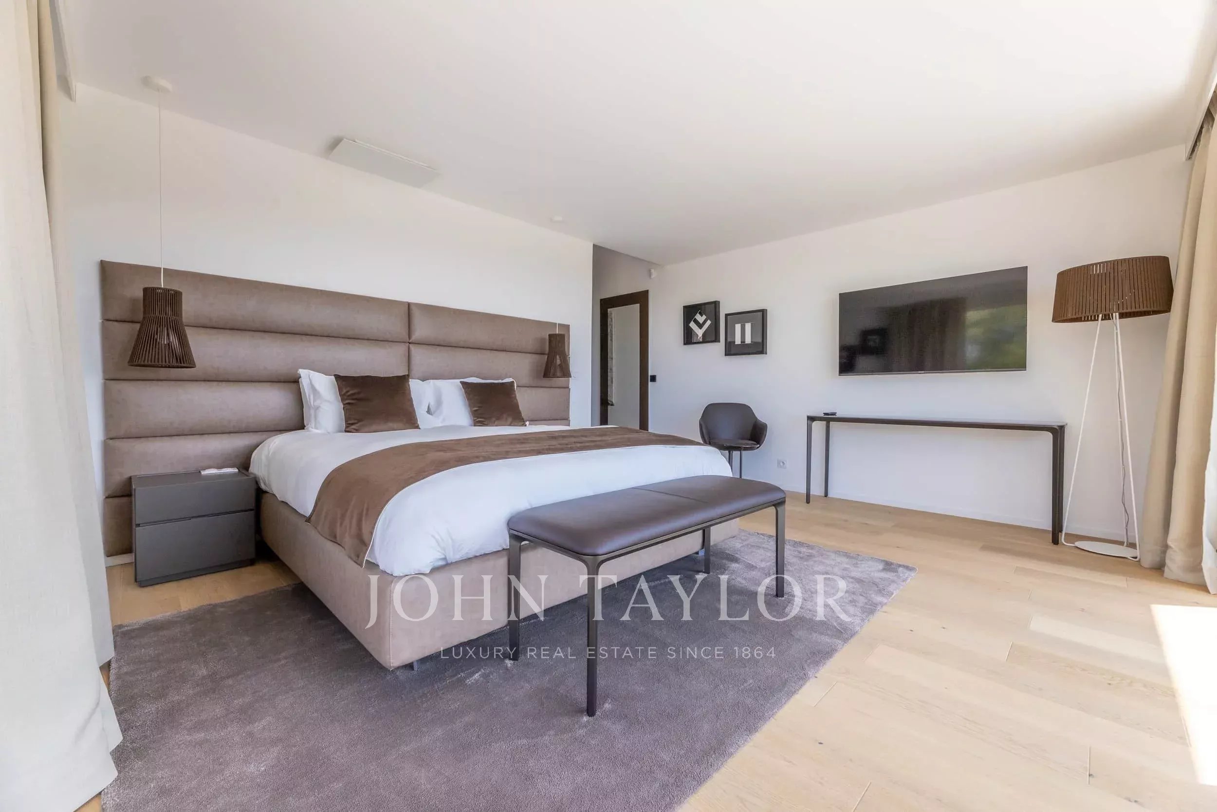 Contemporary villa with 7 bedrooms and a guest house for rent near – Panoramic sea view, heated pool, paddel court