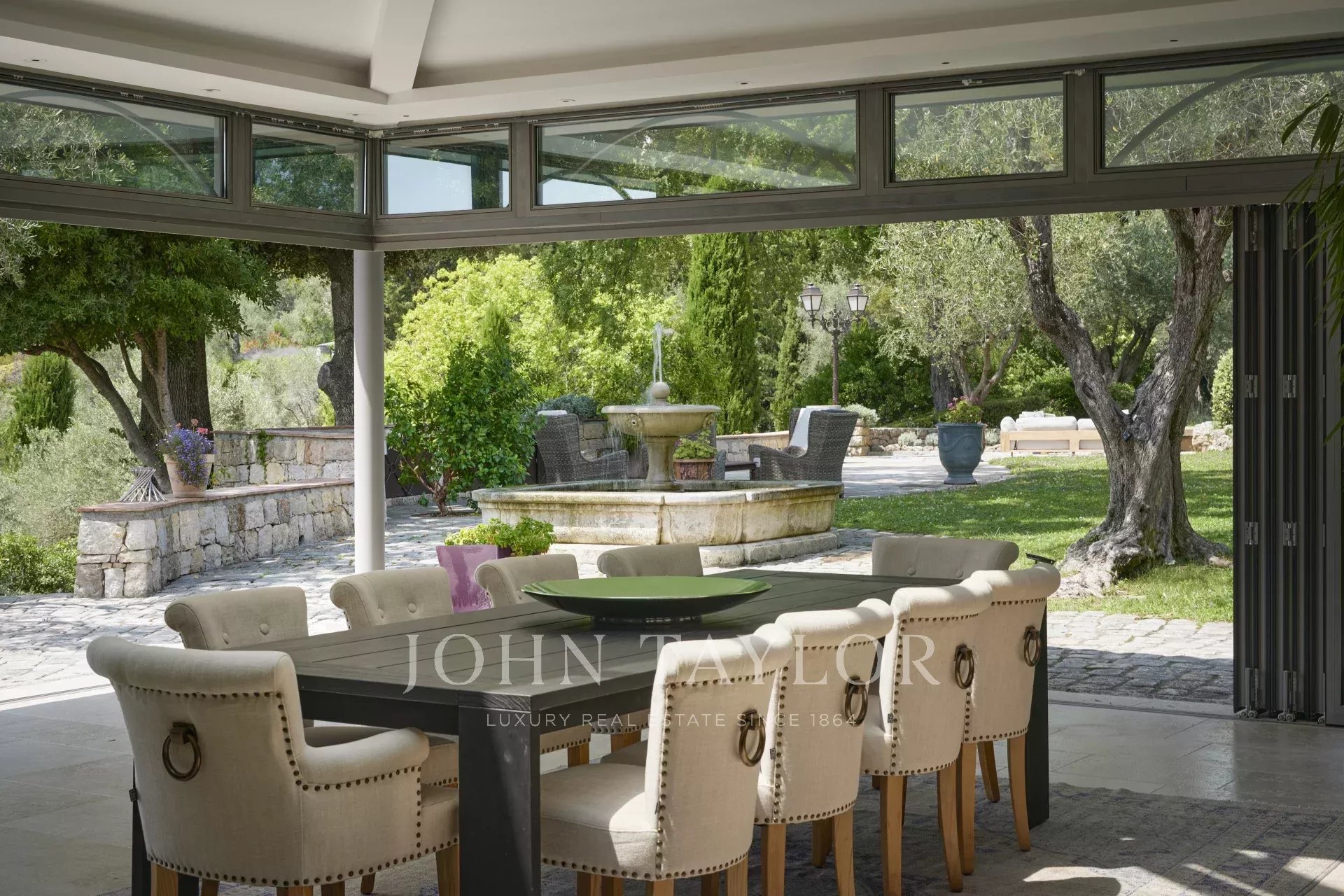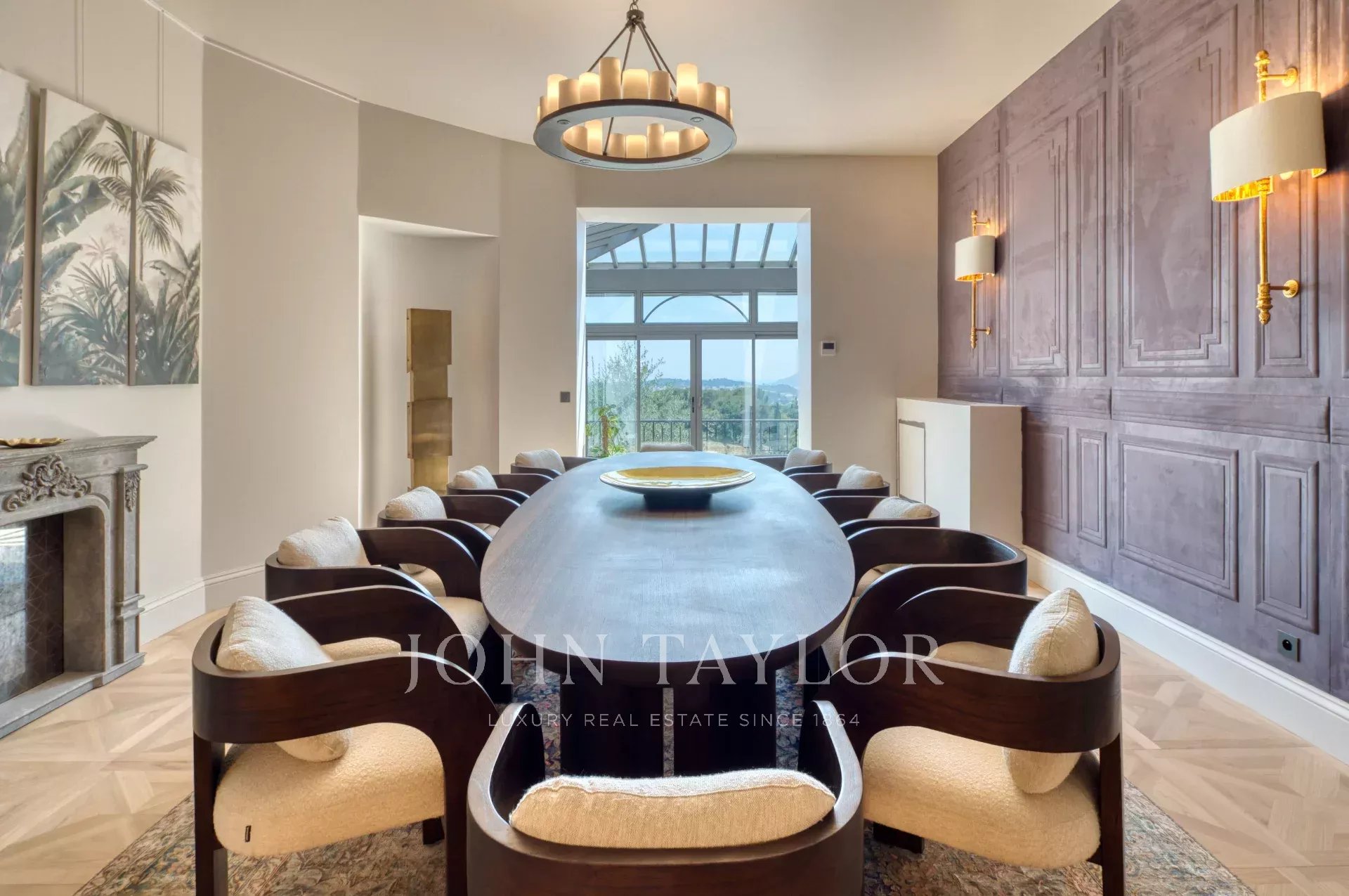 Nestled in the sought-after heights of Mougins, in the heart of a 26,000 m² landscaped park, this unique property offers a rare and refined living environment, with a breathtaking view of the Mediterranean. Just a stone's throw from the historic village of Mougins, it embodies the perfect blend of luxury, serenity and art de vivre.