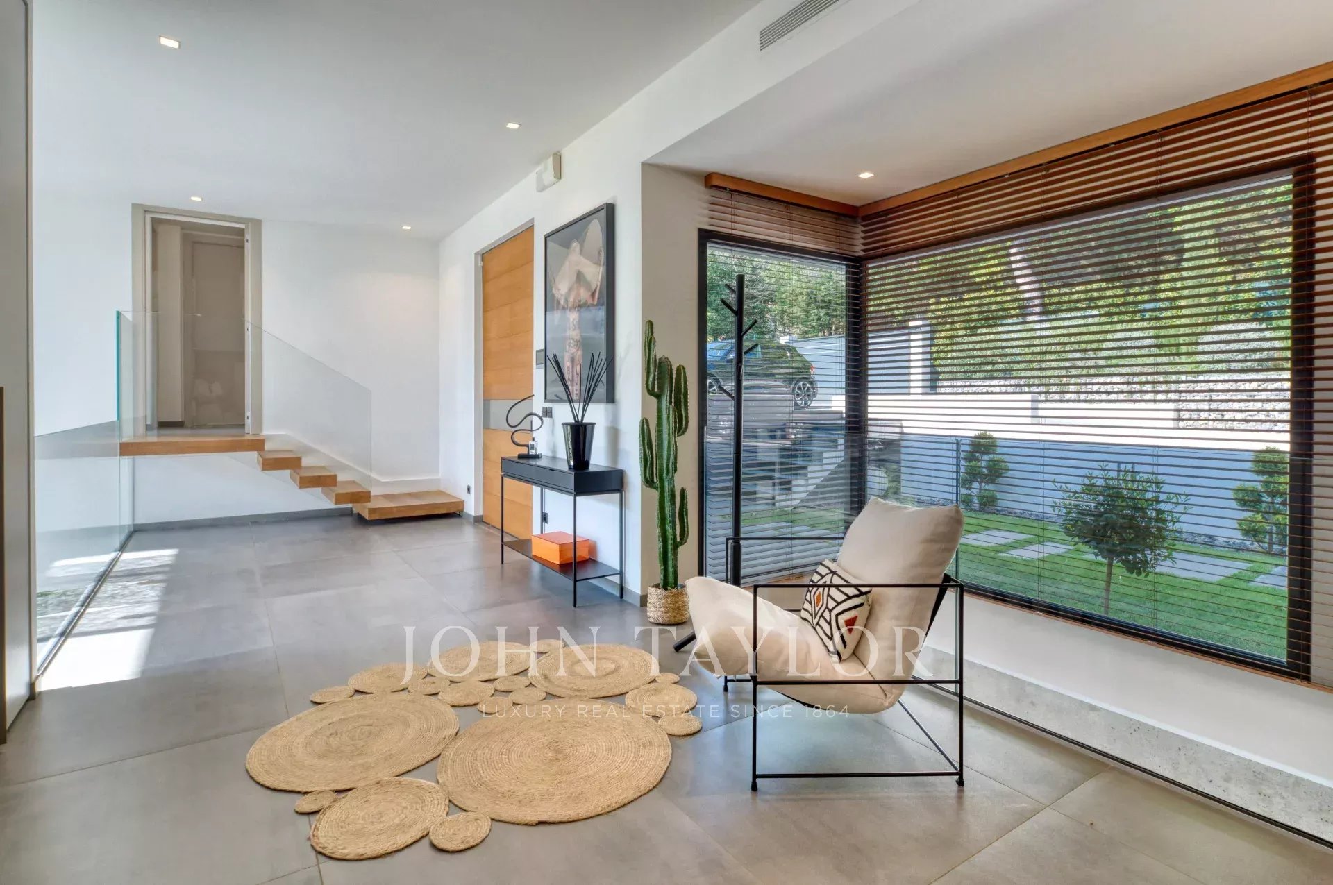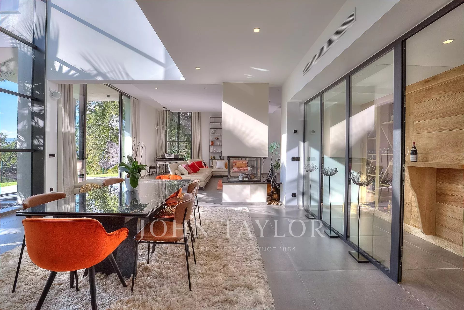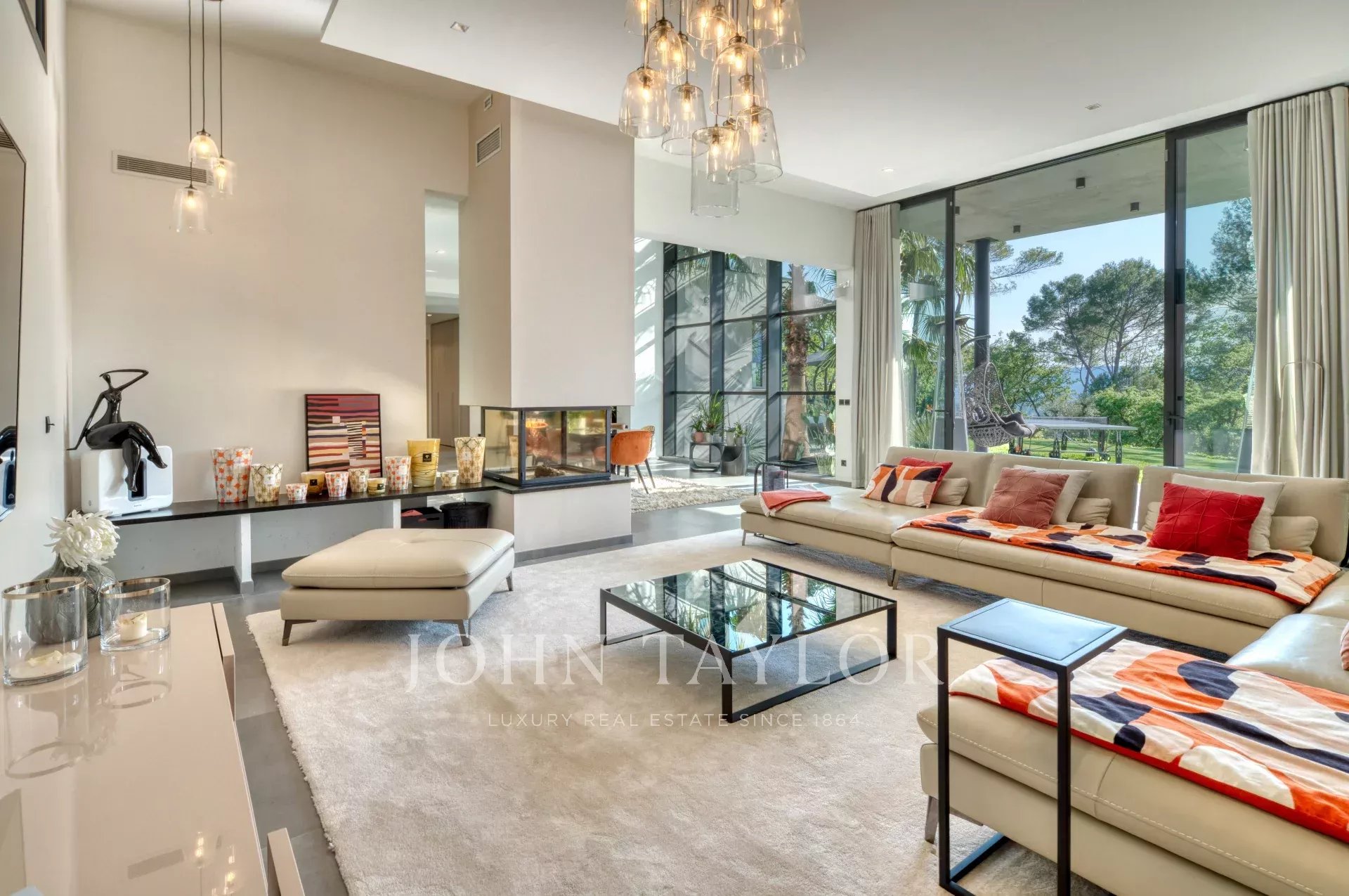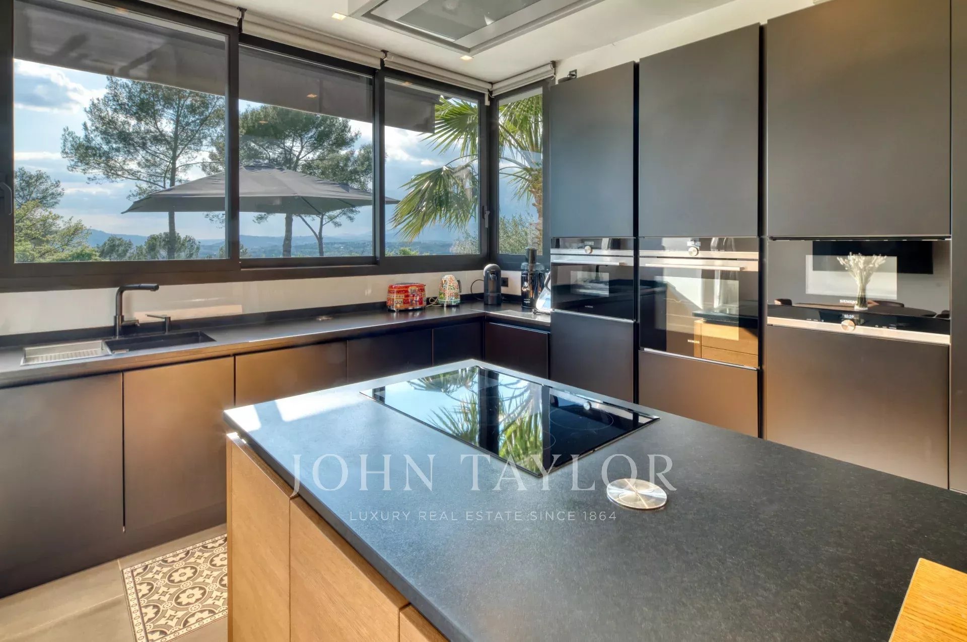 This exceptional 430 m² contemporary villa, ideally located near the sought-after villages of Mougins and Valbonne, offers an abundance of natural light through expansive bay windows and enjoys breathtaking panoramic views of the surrounding landscape.