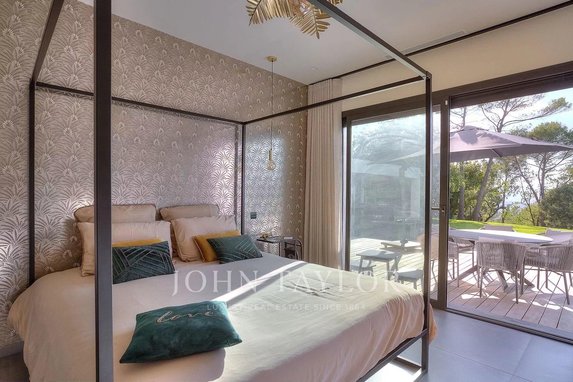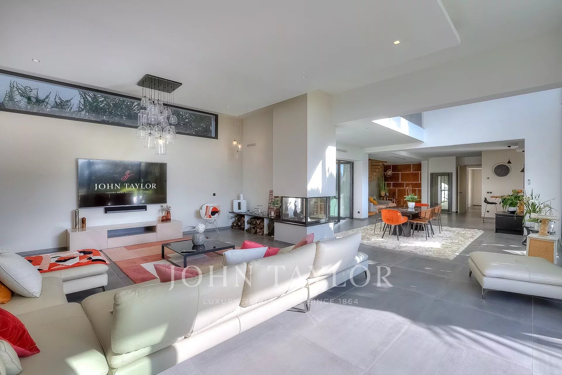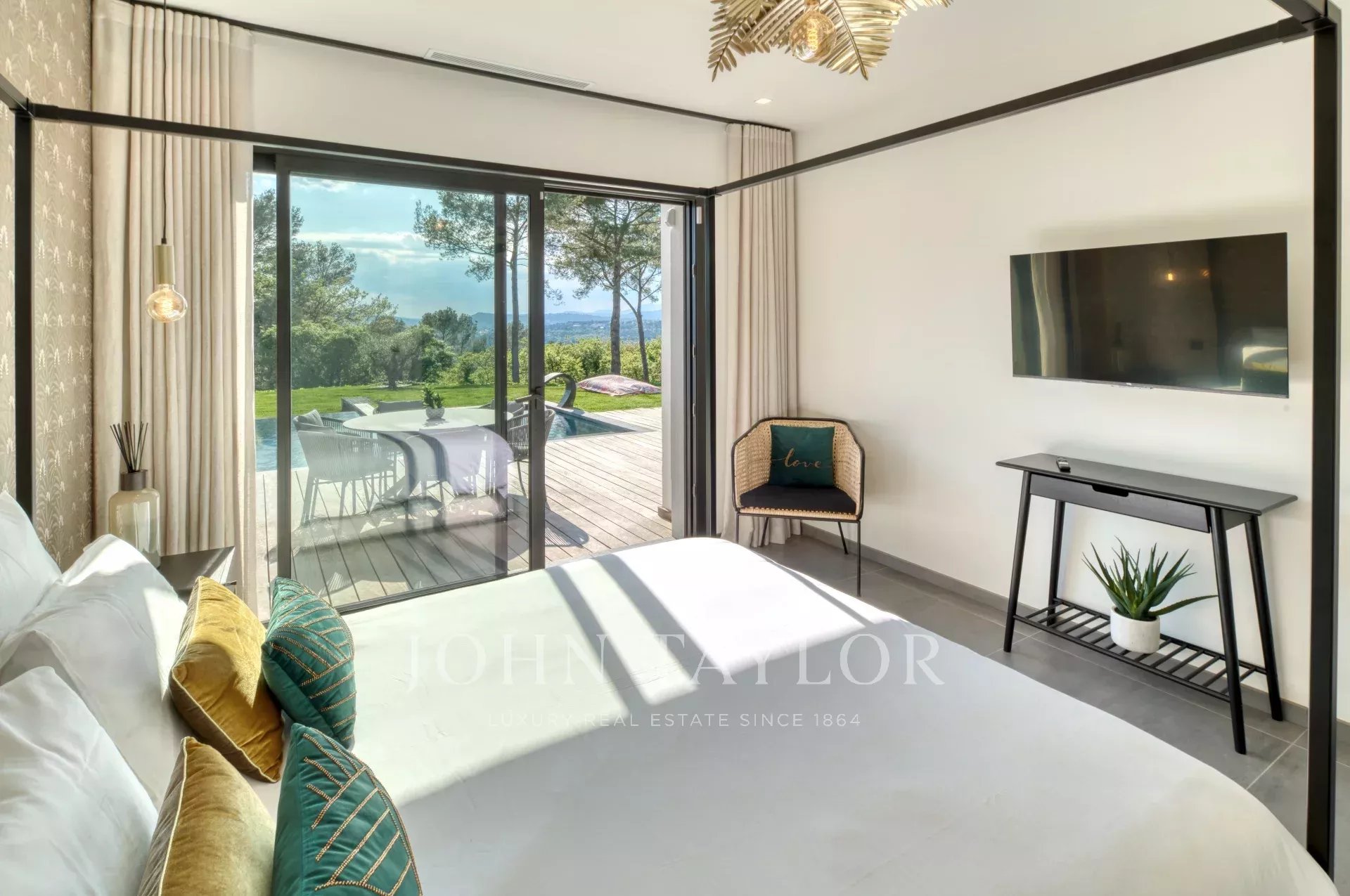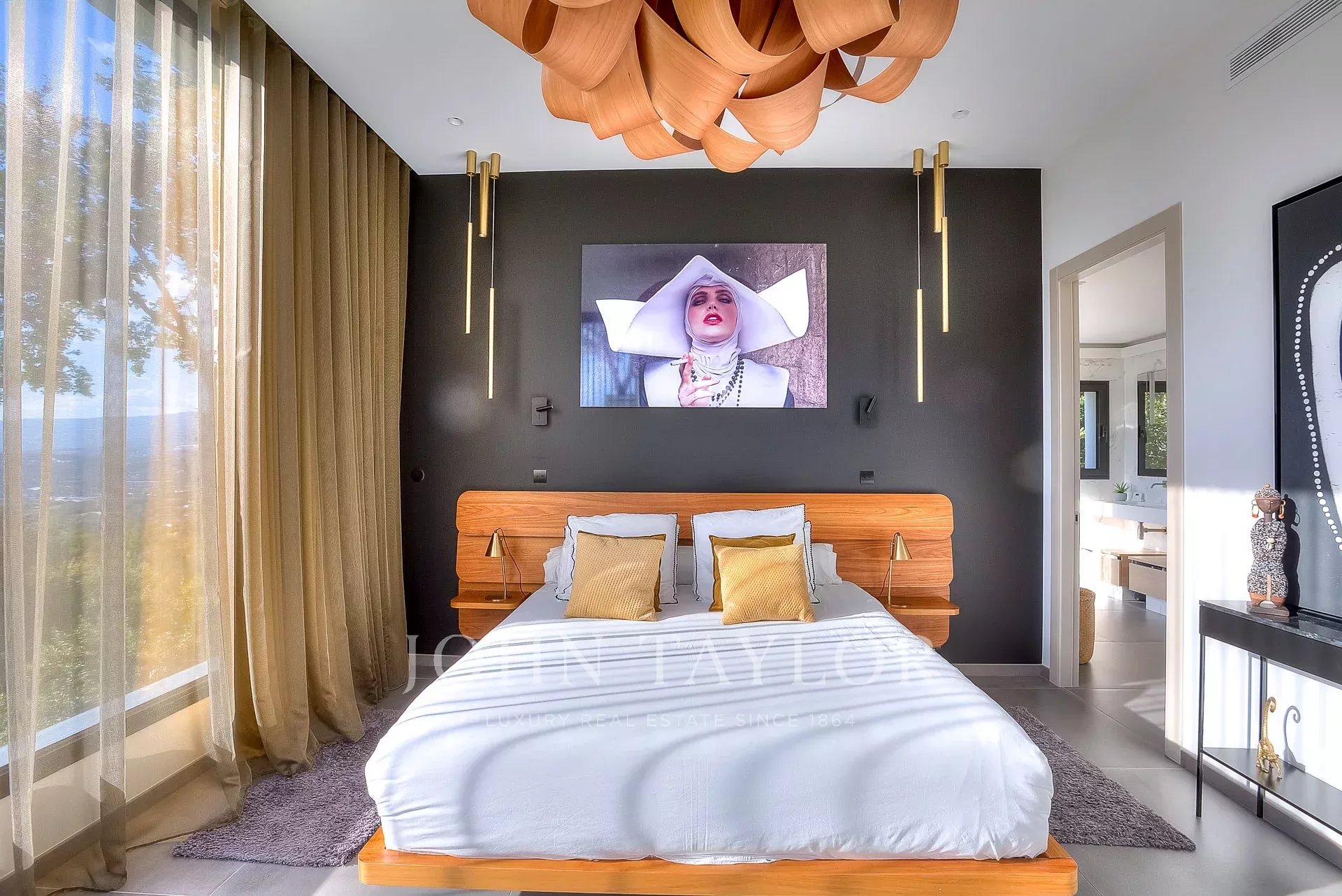 This exceptional 430 m² contemporary villa, ideally located near the sought-after villages of Mougins and Valbonne, offers an abundance of natural light through expansive bay windows and enjoys breathtaking panoramic views of the surrounding landscape.