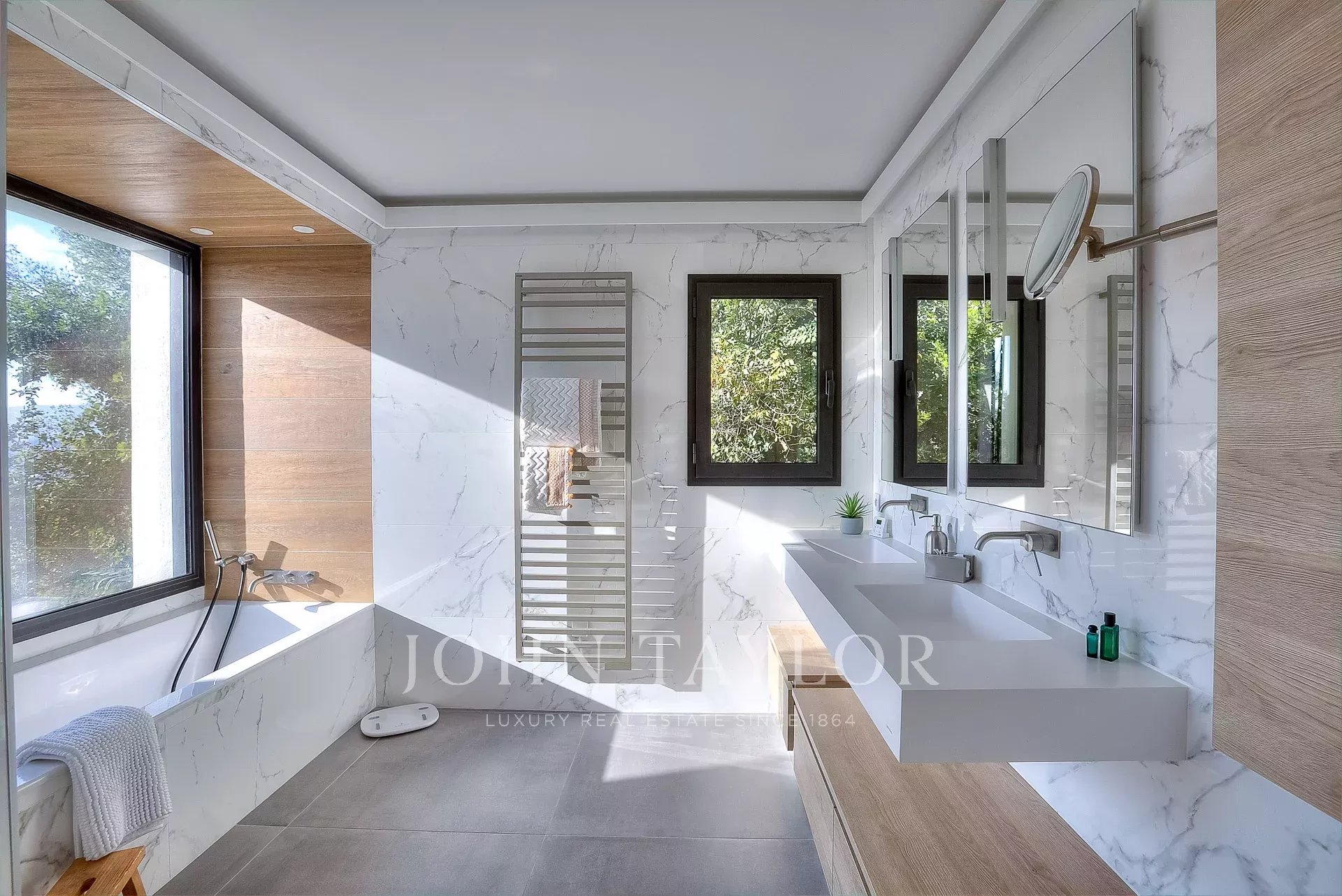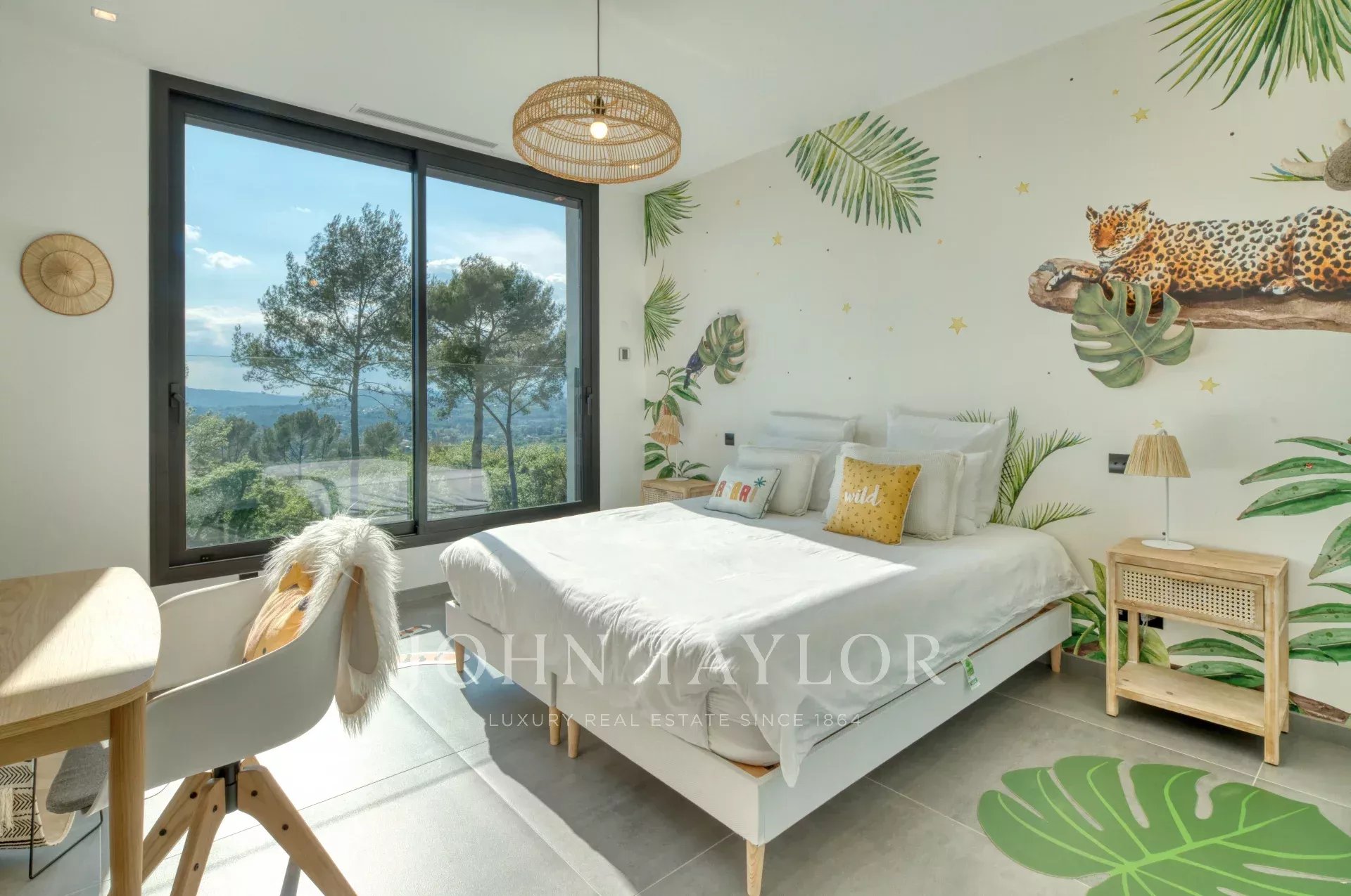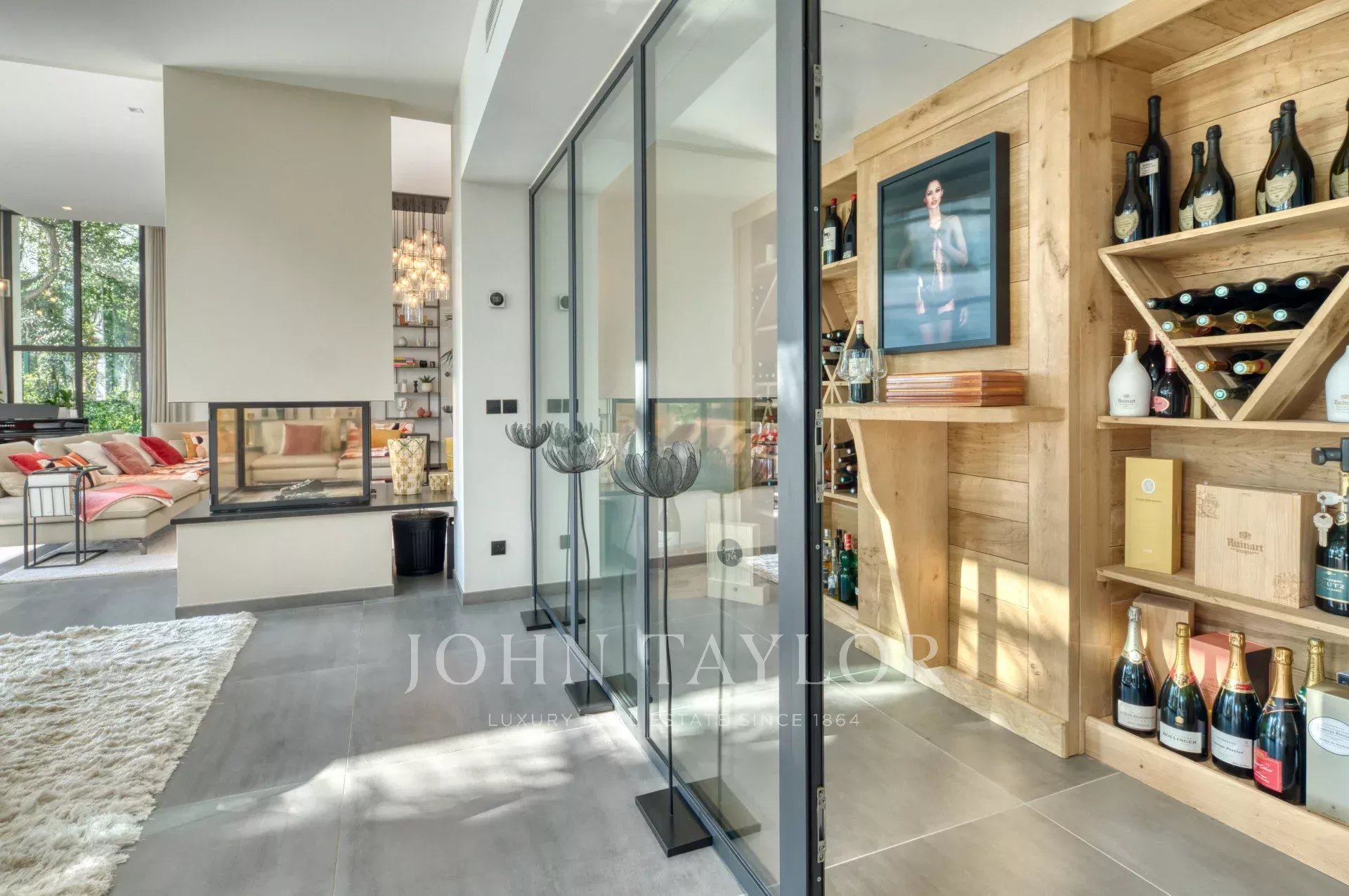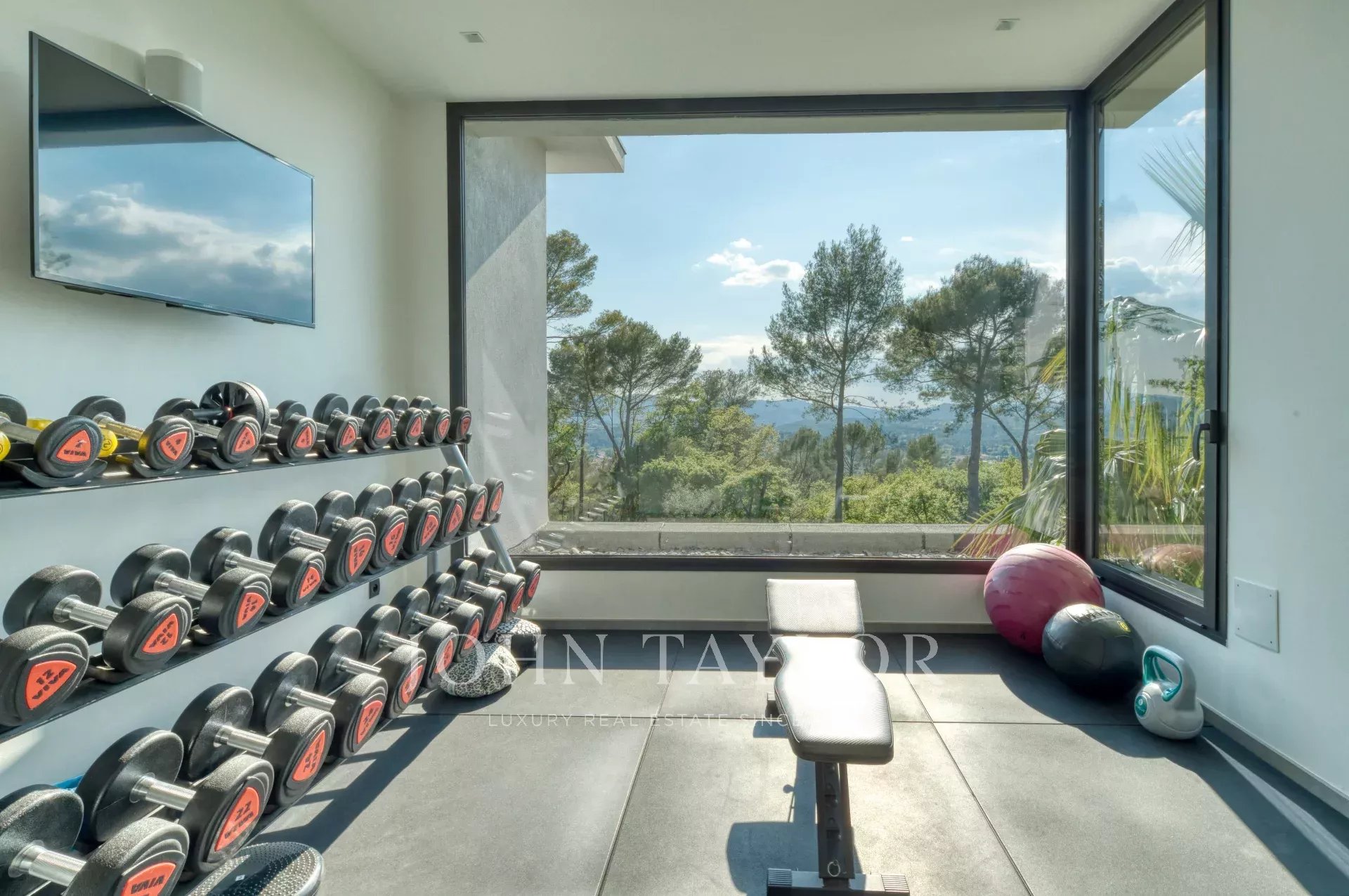 This exceptional 430 m² contemporary villa, ideally located near the sought-after villages of Mougins and Valbonne, offers an abundance of natural light through expansive bay windows and enjoys breathtaking panoramic views of the surrounding landscape.