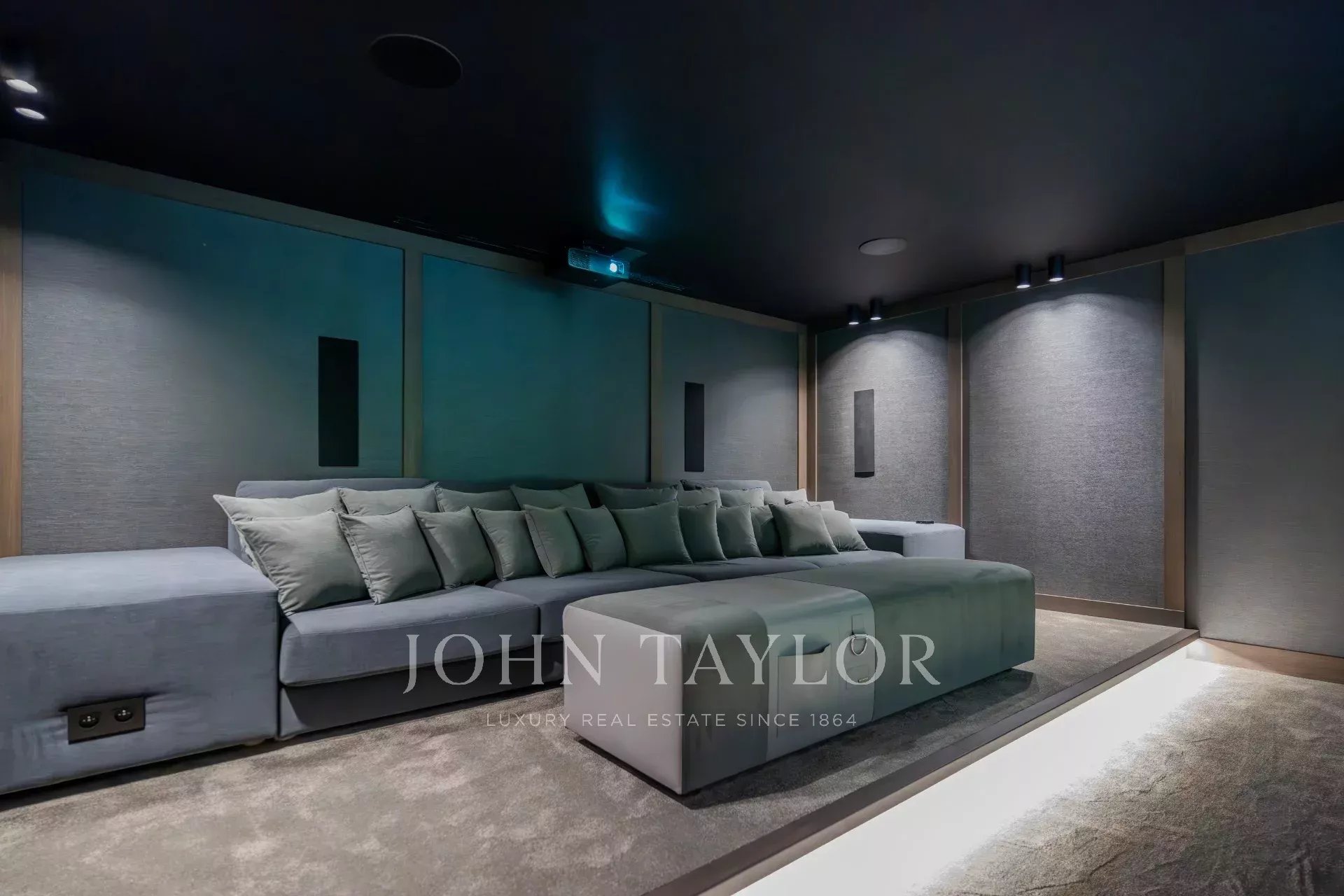 Private cinema room with high-end AV system and plush seating for a true home theater experience.
