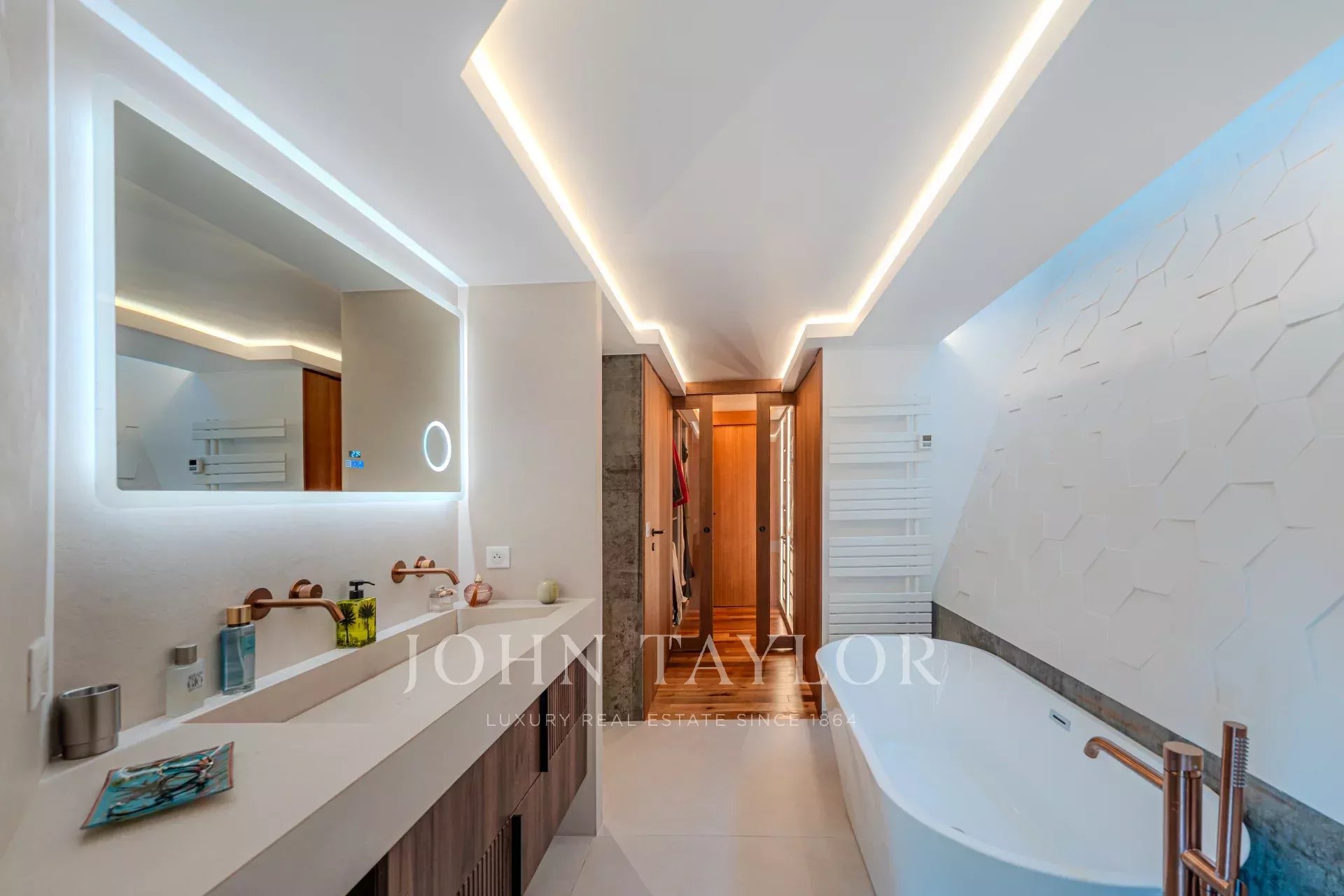 Master suite (bedroom 2) with bathroom, separate WC, and walk-in dressing room
