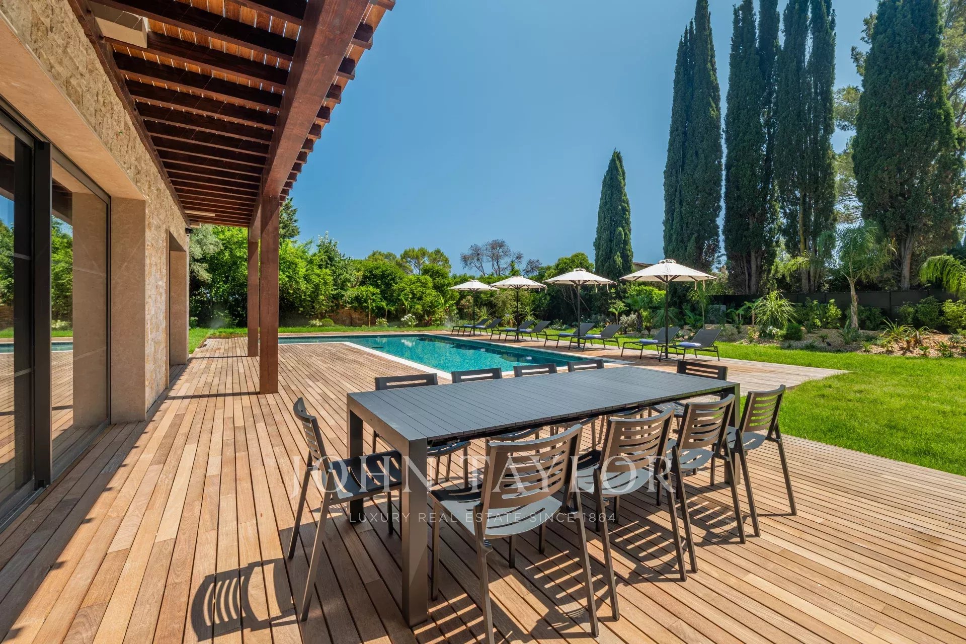 Nestled in a peaceful and secure residential area of Mougins, this stunning villa offers the perfect blend of tranquility and privacy.