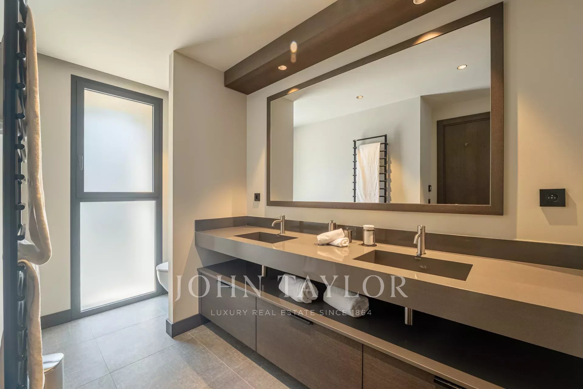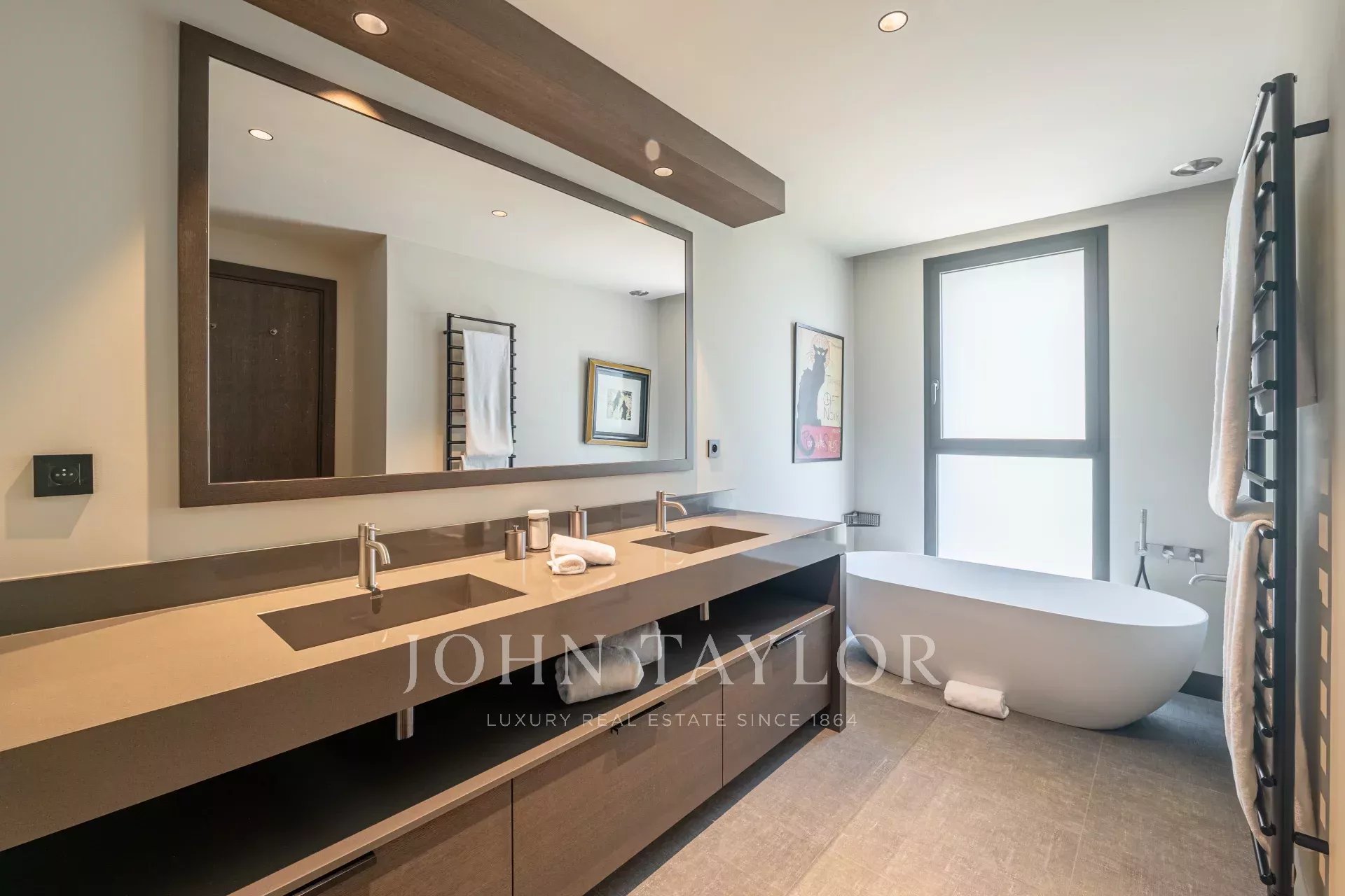 Master suite with private bathroom (double vanity, shower, bathtub, WC) and walk-in wardrobe