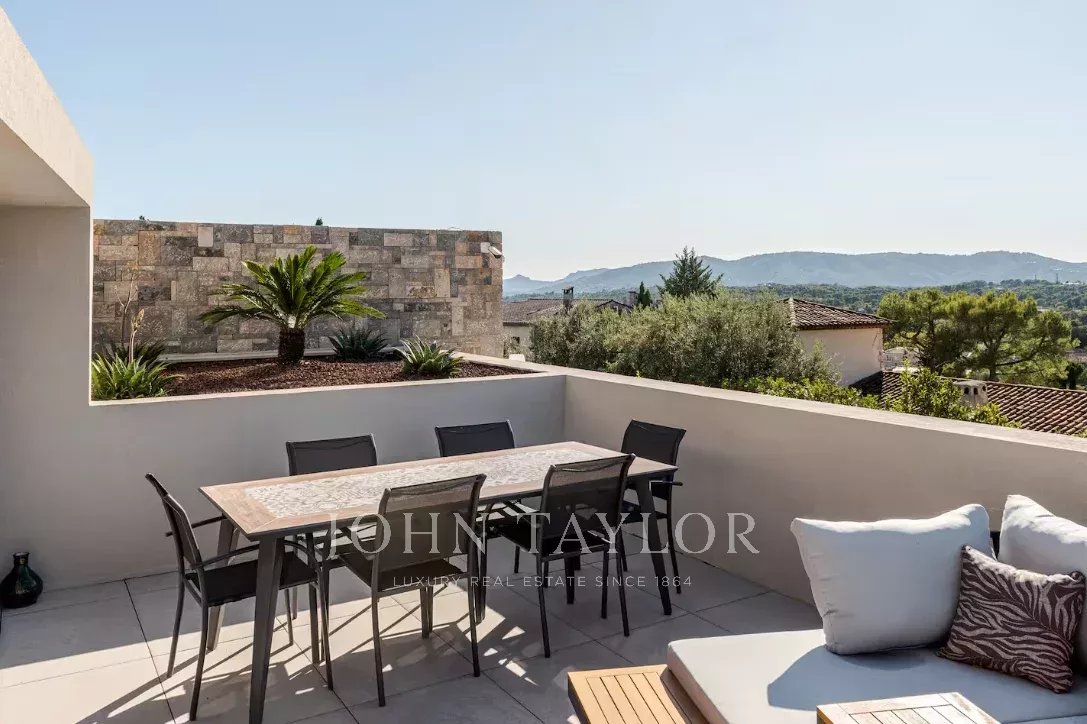 New contemporary 4-bed villa with pool and panoramic views between Mougins and Valbonne for rent