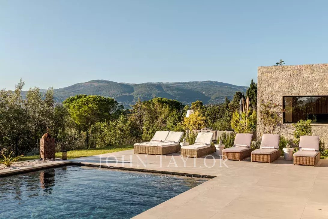 Discover this magnificent modern villa in Mouans-Sartoux, a true peaceful retreat on the French Riviera, perfect for an unforgettable holiday with family or friends.
